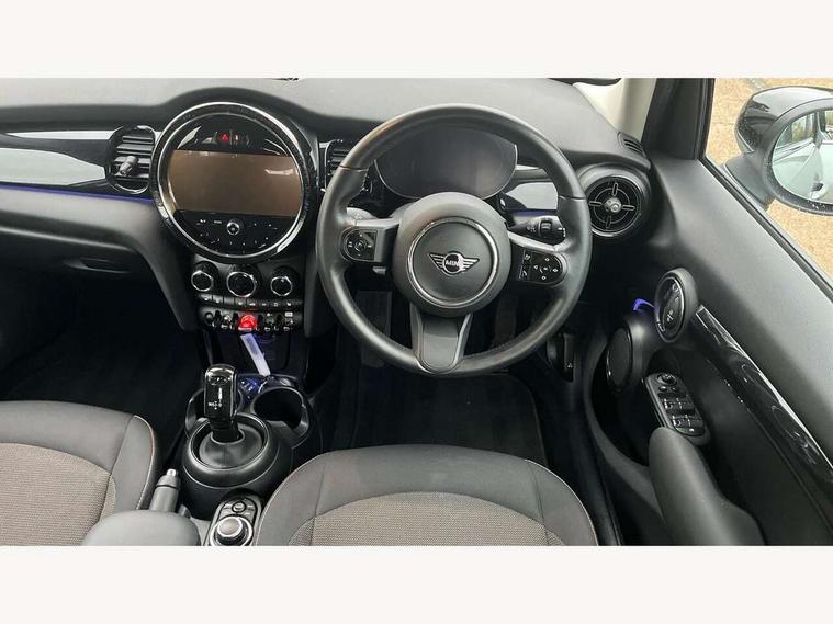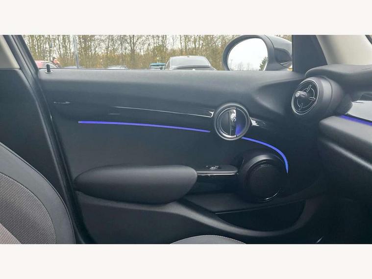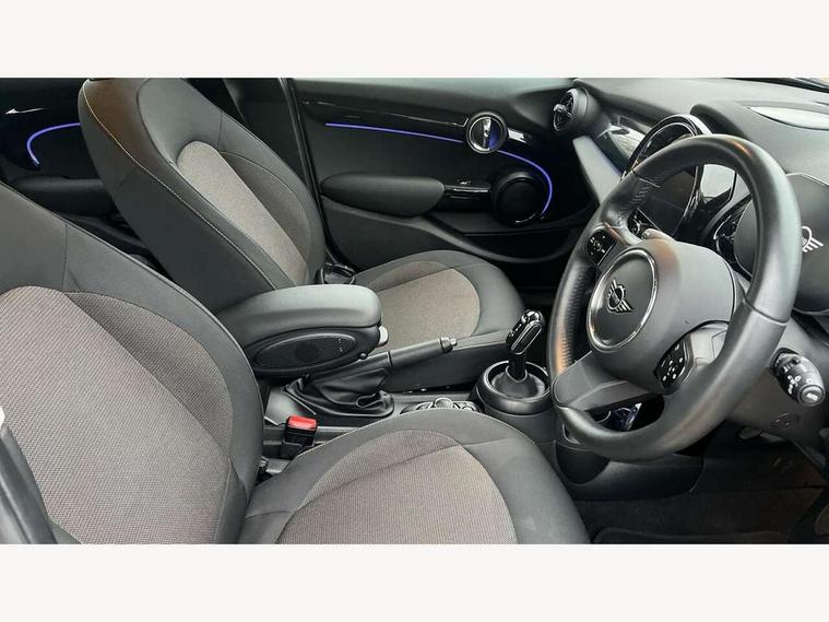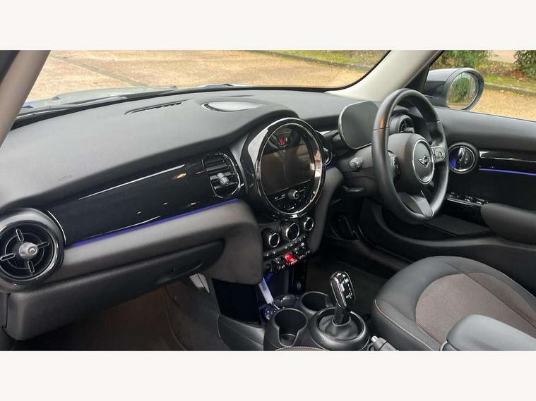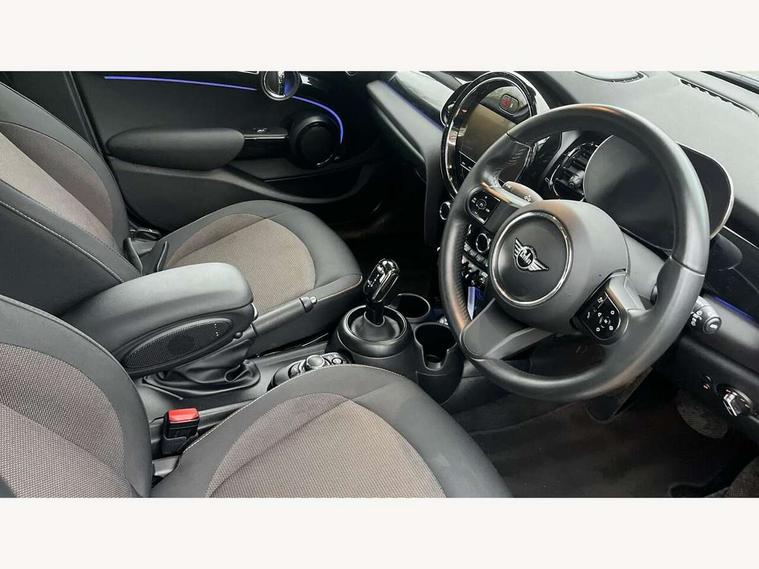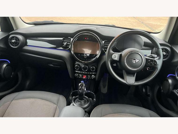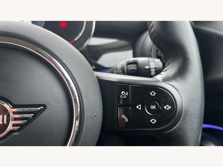 Apple CarPlay, Automatic start/stop function with brake energy recuperation, Compatible mobile phone bluetooth with audio streaming, Electro-mechanical speed dependant steering assistance, Flexible car sharing preparation, Mini E-call, MINI TeleServices, On board computer, Service interval indicator, Double Vanos system, Fully variable valve control, Gear change indicator display, High precision injection, Performance Control, Steptronic transmission with double clutch, 8.8" touchscreen with LED ring, FM tuner and DAB digital radio, 3rd brake light, Automatic headlight activation switch, Body colour fuel filler cap, Chrome border high gloss black slats radiator grille, Dynamic brake lights, Electric front+rear windows, Exhaust tailpipe on left with chrome finisher, Heated rear window, Heated windscreen washer jets, Metal door sill strips with MINI imprint, Model logo Cooper on right of tailgate, Rain sensor window wipers, Rear fog lights, Rear LED lights with union jack design, Rear side wing doors, Rear window wiper, Side scuttle panel with integrated indicator, Sun/heat protection glass, White indicator lenses, 12V Accessory socket in centre console, 3 seat bench in 2nd row, 4 lashing eyes in luggage compartment, 60/40 split folding rear seat, Ambient lighting, Carbon black colour line - Knee roll and door armrest, Chrome interior highlights, Cupholders, Front and rear head restraints, Front and rear isofix with front passenger airbag deactivation, Front and rear velour floor mats, Glove compartment, Height and length steering column adjustment, Interior lighting with 12 different colours across the dashboard, underneath door bezel with illuminated laser-engraved design on central display, Leatherette gearshift lever and handbrake gaiters, LED reading lights, vanity mirror lights, front foot well light and spotlight on front seats, Mechanical seat adjustment - forward/back & backrest for front seats and driver seat height adjust, Multifunction steering wheel, Satellite grey headlining including grab handles and clothes hooks, Single front passenger seat, Sport leather steering wheel with speed limiter and audio/communication controls, Storage compartments in doors, Sunvisors with vanity mirrors, 3 point seatbelts on all five seats, 6 Airbags - front, side, head and seat belt tensioners, Anti-lock braking system (ABS), Child locks on rear doors, DSC - Dynamic Stability Control, Front and rear disc brakes, Hill start assist, Single tone fanfare horn, Tyre pressure monitoring system, Alarm system with tilt sensor, monitoring doors, bonnet interior and tailgate, Electronic vehicle immobiliser, Start/stop toggle with keyless go, Piano black interior trim, Tool kit, Tyre repair kit,