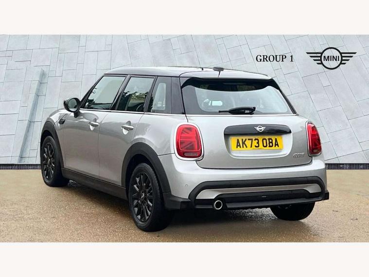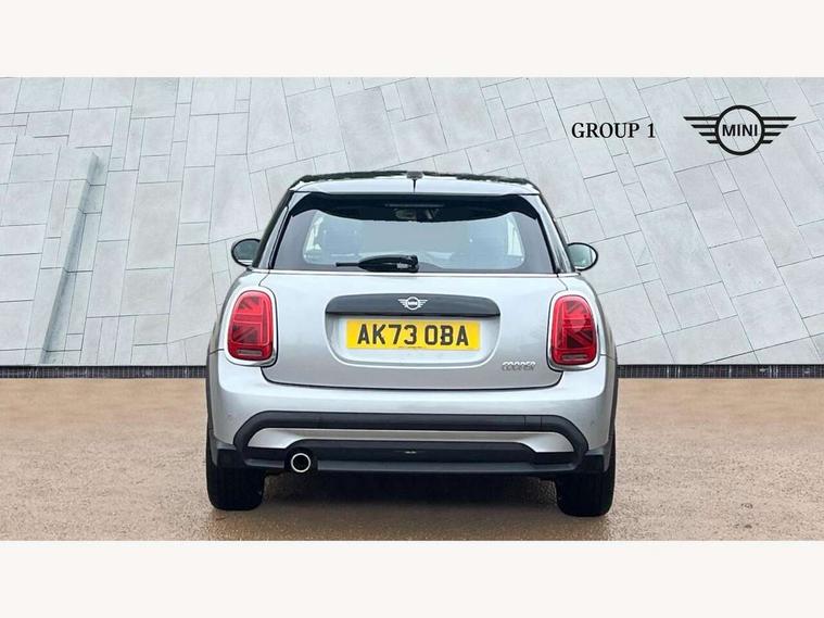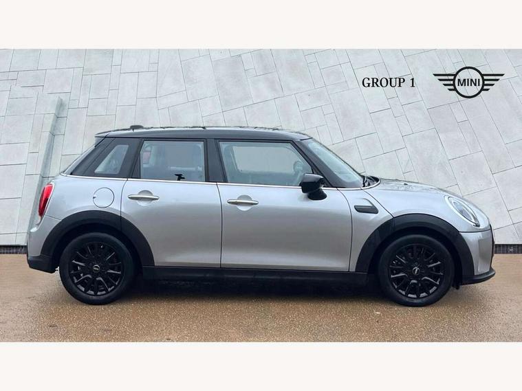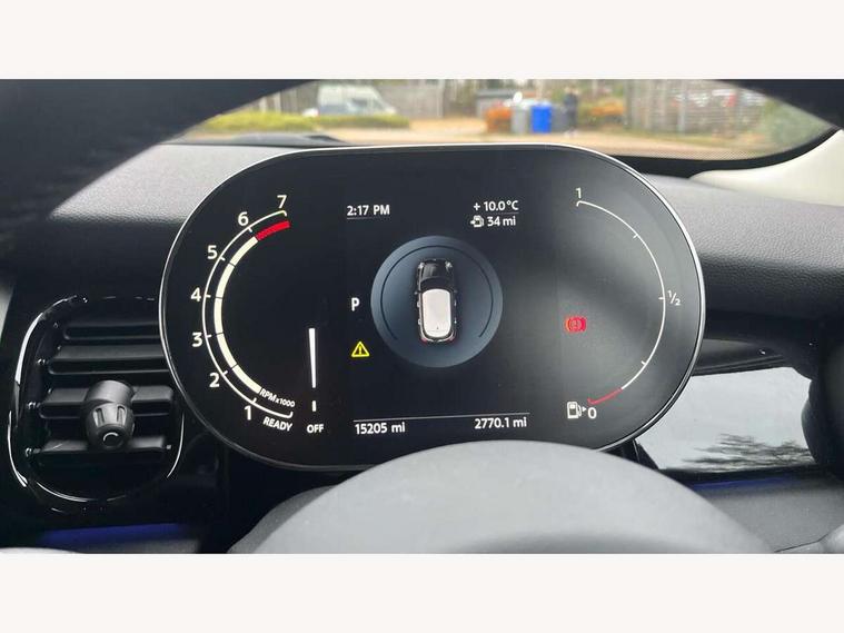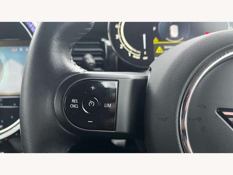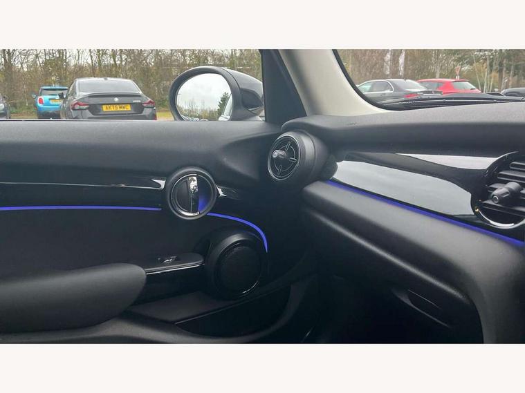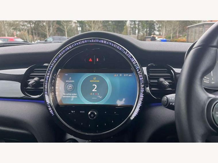 Apple CarPlay, Automatic start/stop function with brake energy recuperation, Compatible mobile phone bluetooth with audio streaming, Electro-mechanical speed dependant steering assistance, Flexible car sharing preparation, Mini E-call, MINI TeleServices, On board computer, Service interval indicator, Double Vanos system, Fully variable valve control, Gear change indicator display, High precision injection, Performance Control, Steptronic transmission with double clutch, 8.8" touchscreen with LED ring, FM tuner and DAB digital radio, 3rd brake light, Automatic headlight activation switch, Body colour fuel filler cap, Chrome border high gloss black slats radiator grille, Dynamic brake lights, Electric front+rear windows, Exhaust tailpipe on left with chrome finisher, Heated rear window, Heated windscreen washer jets, Metal door sill strips with MINI imprint, Model logo Cooper on right of tailgate, Rain sensor window wipers, Rear fog lights, Rear LED lights with union jack design, Rear side wing doors, Rear window wiper, Side scuttle panel with integrated indicator, Sun/heat protection glass, White indicator lenses, 12V Accessory socket in centre console, 3 seat bench in 2nd row, 4 lashing eyes in luggage compartment, 60/40 split folding rear seat, Ambient lighting, Carbon black colour line - Knee roll and door armrest, Chrome interior highlights, Cupholders, Front and rear head restraints, Front and rear isofix with front passenger airbag deactivation, Front and rear velour floor mats, Glove compartment, Height and length steering column adjustment, Interior lighting with 12 different colours across the dashboard, underneath door bezel with illuminated laser-engraved design on central display, Leatherette gearshift lever and handbrake gaiters, LED reading lights, vanity mirror lights, front foot well light and spotlight on front seats, Mechanical seat adjustment - forward/back & backrest for front seats and driver seat height adjust, Multifunction steering wheel, Satellite grey headlining including grab handles and clothes hooks, Single front passenger seat, Sport leather steering wheel with speed limiter and audio/communication controls, Storage compartments in doors, Sunvisors with vanity mirrors, 3 point seatbelts on all five seats, 6 Airbags - front, side, head and seat belt tensioners, Anti-lock braking system (ABS), Child locks on rear doors, DSC - Dynamic Stability Control, Front and rear disc brakes, Hill start assist, Single tone fanfare horn, Tyre pressure monitoring system, Alarm system with tilt sensor, monitoring doors, bonnet interior and tailgate, Electronic vehicle immobiliser, Start/stop toggle with keyless go, Piano black interior trim, Tool kit, Tyre repair kit,