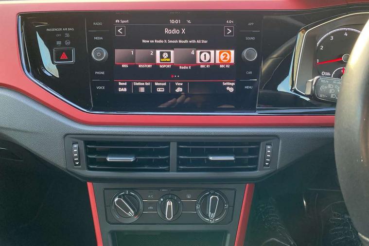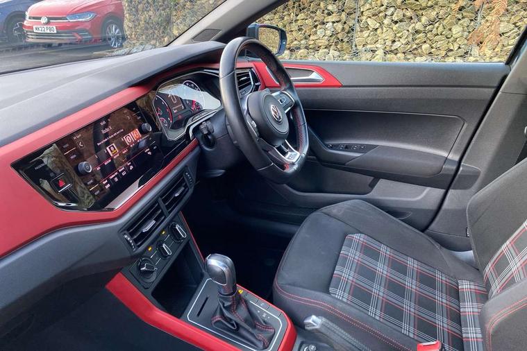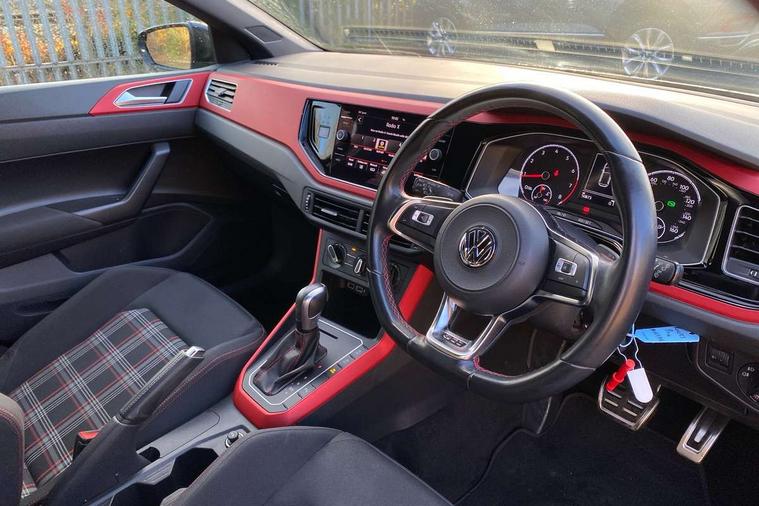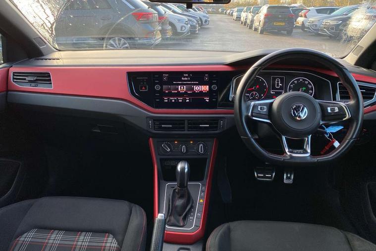 App-Connect, Digital clock, Driver alert system, Driving Mode Selection with four preset modes - Eco, normal, sport or individual modes, Multifunction computer plus, Power assisted speed sensitive steering, Speedo and rev counter, electronic odometer, trip, service interval display and fuel gauge, Start/stop system, Volkswagen connect, Warning buzzer and light for front seatbelts unfastened, Battery regeneration during braking, Galvanished body, Lowered sports suspension, XDS electronic differential lock, Black grille with chrome surround, Body colour door handles, Body coloured side sills, Electric front windows, Extended sill strips flared in black, Front fog lights including static cornering, Front windscreen washers and wipers with 4 speed intermittent delay, Gloss black rear spoiler (roof), Heat insulating tinted glass, Heated rear window with auto timer, High level 3rd brake light, LED darkened rear light clusters, LED daytime running lights, LED rear number plate lights, Manual coming/automatic leaving home lighting function, Rear electric windows, Rear windscreen washer and wiper with interval delay, reverse activated, Stainless steel door sill protections with GTI logo, Twin chrome exhaust tailpipes, Unique GTI badging, 2 bag hooks in luggage compartment, 2 front cupholders and 12 V socket with cover, 3 rear head restraints, 60/40 split folding rear seat, AlumInium look pedals, Ambient lighting in front foorwell, front/rear door and dashboard light strips, Black roof lining and sun visors, Centre console storage with open storage compartment, Chrome-plated electric mirror adjustment switch surround, Chrome-plated electric window button surround, Driver and front passenger sunvisors with illuminated vanity mirrors, Dust/pollen filter, Folding rear seat backrest, Front and rear carpet mats with red stitching, Front seat backrest storage pockets, Gear change selection via paddle shift on steering wheel, Gear lever gaiter in black trim surround, Glovebox, Handbrake grip button in chrome effect, Height/reach adjustable steering column, Instrument lighting, adjustable panel illumination, Interior light with delay, Isofix Preparation 2 Rear child seats, Jack and tool kit, Leather gear knob and handbrake grip, LED interior lighting - 2 reading lights front and rear with interior delay and dimming function, Luggage compartment cover, removable, Luggage compartment lighting, Storage compartment in front doors, Storage compartment in rear doors, Storage compartment under front seats, Three spoke leather trimmed multifunction steering wheel with GTI logo and red contrast stitching, GTI styling pack - Polo, 3 point height adj front seatbelts + pretensioners, 3x3 point rear seatbelts, ABS, Automatic post collision braking, Driver/front passenger airbag, Drivers and front passengers safety optimised head restraints, ESP with EDL + ASR, Front and rear passenger curtain airbags, Front passenger airbag deactivation, Front seat side impact airbags, Front/rear disc brakes, Hill hold control, Hydraulic Brake Assist (HBA), Red brake calipers, Single tone horn, Tyre pressure monitoring system, Alarm with interior protection and deactivation via infotainment system, Electronic engine immobiliser, Remote central locking with 2 remote folding keys, Chrome plated air vent surround, Gloss black instrument surrounds, Steel space saver spare wheel,