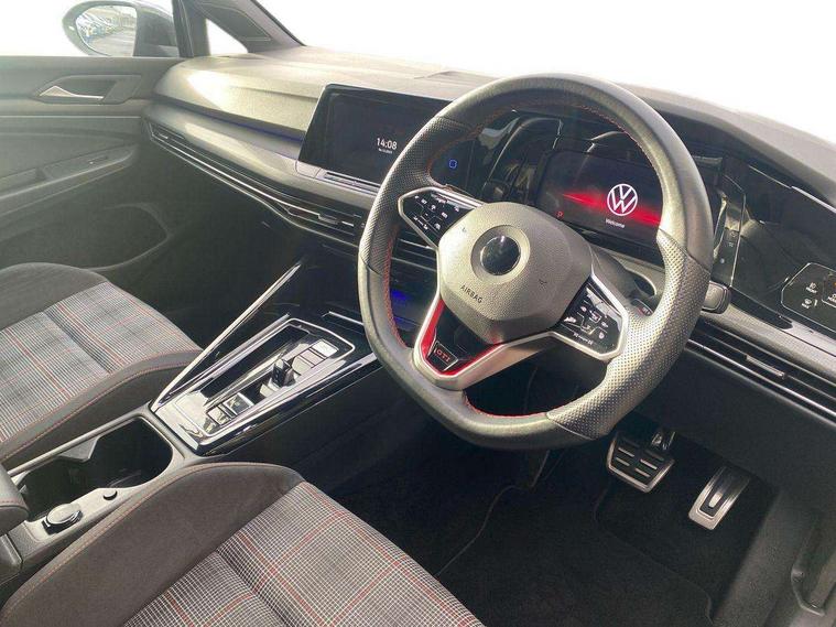 Adaptive cruise control (ACC) with speed limiter and front assist (reacting to vehicles pedestrians and cyclists), Car2X communication, Digital cockpit pro - 10.25" high resolution TFT dash display screen with customizable menus and information, Driver alert system, Dynamic road sign display, eCall - Emergency call service for SOS calls to emergency response, Lane assist, Lane change assistant, Mobile phone interface with wireless inductive charging function, PAS, Speedo, rev counter, electronic odometer, trip, service interval display, exterior temperature and fuel gauge, Start/Stop function, Travel assist with emergency side assist with electrically foldable door mirrors, USB-C ports in the front and rear centre console with increased charging performance, Warning buzzer and light for front seatbelts unfastened, Wireless app connect, Front differential lock, Petrol Particulate Filter, XDS electronic differential lock for improved traction and handling, Premium USB cable in choice of either Apple or Android smartphone compatibility, Ambient lighting, exterior illuminated styling elements at the sides, Auto dimming rear view mirror, Automatic headlamp activation with Coming home and Leaving home feature, Automatic headlights, Body colour bumpers, Body colour door handles, Body colour door mirrors with integrated indicators, Body colour rear roof spoiler, Chrome plated tailpipes (1 either side), Front and rear electric windows, GTI style bumpers, Heat insulating glass windscreen, Heated rear windscreen, High level 3rd brake light, Highway light, Illuminated front grille, IQ.Light - LED Matrix headlights, dynamic headlight control with advanced high beam control matrix dipped main beam + LED DRL + 22 LED lights, LED front fog lights with 5 honeycomb design, LED License plate illumination, LED rear combination lamp inlcuding dynamic turn signal, Rain sensor, Rear fog light on one side and reversing lights on both sides, Rear side wing doors, Rear tinted glass 65% light absorbing from B pillar backwards, Rear windscreen washer and wiper with interval delay, Remote electrically heated, adjustable and foldable door mirrors, including door mirror puddle lights and reverse activated kerb-view adjustment on pa, Welcome light, 12V socket in front centre console, 12V socket in luggage compartment, 3 rear head restraints, 3 seat bench in 2nd row, 3 zone climate with controls in the rear, Aluminium gear knob, Ambient lighting - Customisable 30 colour ambient lighting, Black roof lining, Brushed stainless steel pedals, Chrome plated surround to electric mirror button, window switch and air vent surrounds, Drivers and front passengers sun visors with vanity mirrors, Front + rear carpet mats, Front centre armrest with storage compartment, Front cupholders x 2, Front passenger seat, Front reading lights x 2 incorporating LED technology, Front seat lumbar support adjuster, Front sports seats, Glovebox, GTI logo on backrest, Height adjustable front seats, Height and reach adjustable steering wheel, Isofix child seat preparation for 2 rear child seats and front passenger seat, Leather wrapped multifunction sports heated steering wheel with red stitiching + paddle shift, Leatherette door armrests and centre armrest, Luggage compartment lighting, Removable luggage compartment cover, Split folding backrest with centre armrest and unsplit rear seat bench, Woven fabric storage compartments in front and rear doors, 3 point height adj front seatbelts + pretensioners, 3 rear three point seatbelts, ABS, Child locks on rear doors, Driver and front passenger airbag with front passenger airbag deactivation, Drivers and front passengers safety optimised head restraints, Electronic parking brake with auto hold, ESC (Electronic Stability Control), Extended pedestrian protection measures, Front and rear passengers curtain airbag system including front side airbags, Front disc brakes, Rear disc brakes, Two tone horn, Tyre pressure monitoring system, Alarm with interior protection and deactivation via infotainment system, Electronic engine immobiliser, Keyless entry with start/stop button on centre console, Black metal chrome decorative inserts in dash and front door trim panels, High gloss black centre console, Soul dashboard,