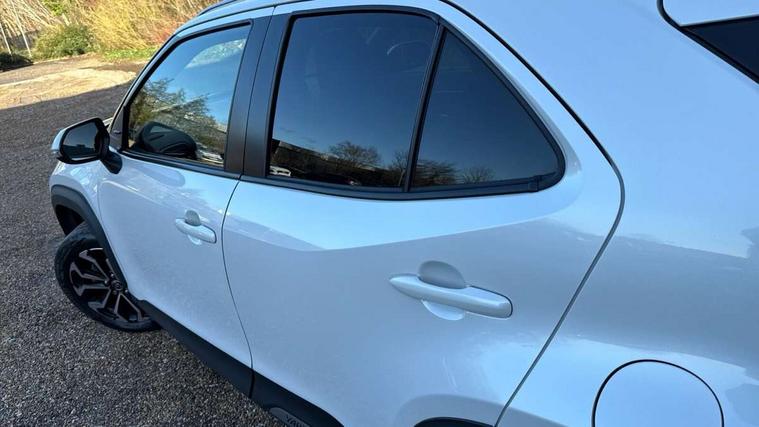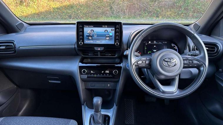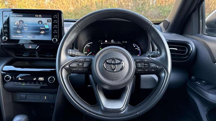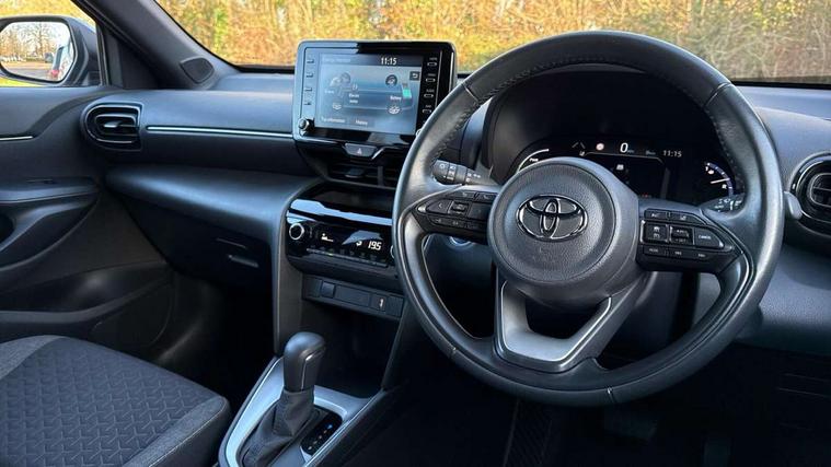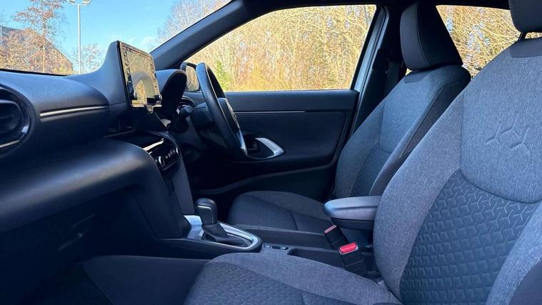 7" Multi information display screen, 8" Toyota touch 2 multimedia system with Smartphone integration with Apple CarPlay and Android auto, Adjustable speed limiter, Bluetooth connectivity, Driver attention alert system, eCall emergency system, Electric power steering, Full range intelligent adaptive cruise control, Hybrid system indicator, Key reminder warning, Lane trace assist, Multimedia, audio, telephone and voice recognition switches on steering wheel, My T Connected services, Pre-collision system enhanced with emergency steering assist, Reversing camera, Road sign assist - RSA, Steering assisted vehicle stability control, 6 speakers, DAB Digital radio, USB connection, 3rd brake light, Acoustic windscreen glass, Aluminium roof rails, Anti-jam protection on power windows, Auto high beam [AHB] with on/off switch, Automatic headlights, Black lower front grille, Black Shark-fin antenna, Black upper front grille, Black wheel arch mouldings, Body colour door handles, Body colour front bumper, Body colour rear bumper, Electric adjustable heated door mirrors, Follow me home headlights, Front and rear electric windows with auto up/down function, Front intermittent wipers, Headlight cut off reminder, Indicators integrated on door mirrors, Intermittent rear wiper, LED daytime running lights guide, LED front fog lights, LED front light guide, LED Indicators, LED projector headlights, LED rear light guide, Manual headlight levelling, Manually retractable door mirrors, Noise reduction layer on windscreen, Privacy glass, Rain sensor, Rear LED lights with sequential indicators, Rear side wing doors, Rear spoiler, Rear window defogger, 12v power outlet - front, 2x Rear coat hooks, 3 seat bench in 2nd row, 3 spoke leather steering wheel, 40:20:40 split folding rear bench seat, Adjustable speed limiter switch on steering wheel, Auto air conditioning, Black roof lining, Boot light, Central armrest, Centre console in light blue ambent lighting, Driver and front passenger personal lights, Fabric door trim, Fabric upholstery, Footwell in light blue ambient lighting, Front console box, Front cup holders, Front head restraints, Glovebox, Height adjustable driver's seat, Height adjustable front passenger seat, Hooks for luggage holding belts, ISOFIX child restraint system, Lane departure alert switch on steering control, Leather gearshift, Light blue ambient lighting on front doors, Manual telescopic and tilting steering wheel, Mirror on driver and passenger sun visor, Pollen air filter, Rear cup holders, Rear head restraints, Single front passenger seat, Soft tonneau cover, 3x3 point rear seat belts, ABS+EBD+Brake assist, Driver and passenger central airbags, Driver and passenger front airbags, Driver and passenger side airbags, Electronic parking brake, Emergency brake light system (EBS), Front seat belt reminder, Hill start assist control (HAC), Passenger airbag on/off switch, Pre-collision system with pedestrian and cyclist detection, Rear door child safety locks, Rear passenger side airbags, Rear seat belt reminder, Traction control, Tyre pressure warning system, Immobiliser, Intrusion alarm, Keyless smart entry with push button start, Power door locks, Power passenger window lock, Remote door lock, Tyre repair kit,