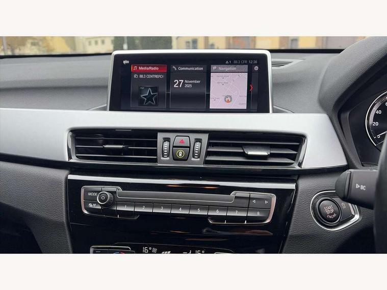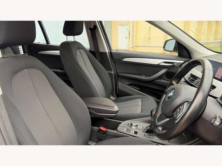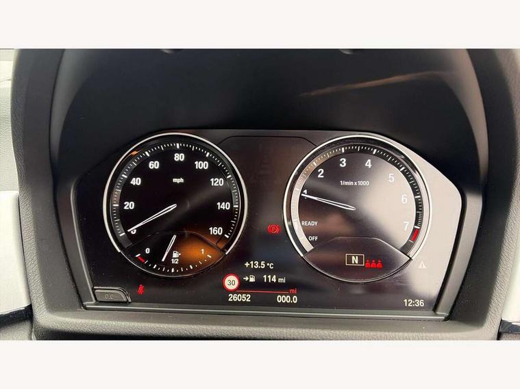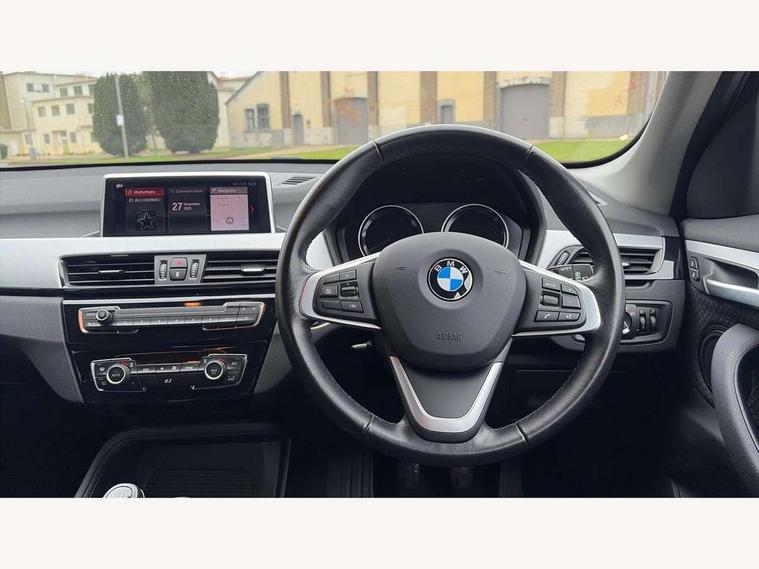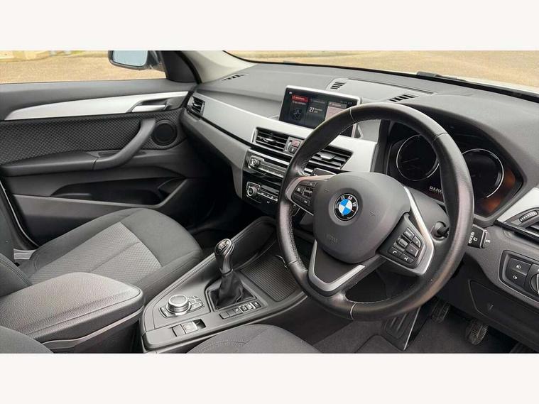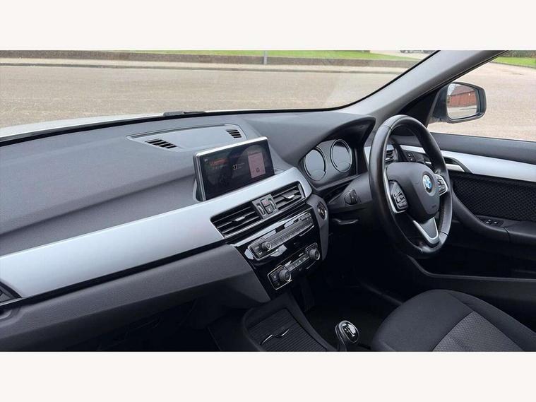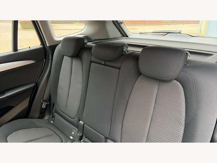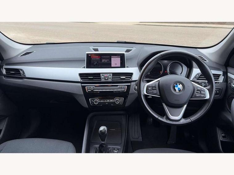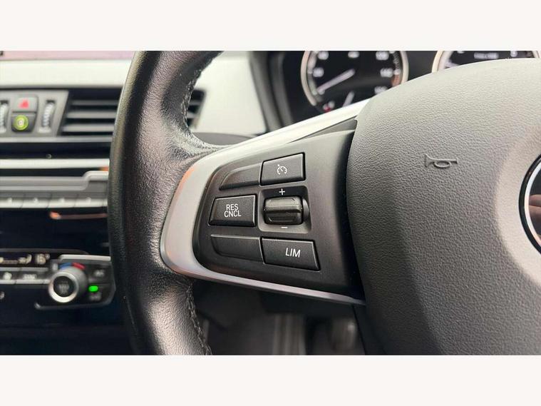 Active Guard incl speed limiting and lane departure functions with auto steering, and front collision warning with brake intervention, Ambient temperature display, Apple CarPlay, Arrow pointers, north up, direction of travel and perspective map displays, Attentiveness assist, Automatic tailgate opening, BMW ConnectedDrive, BMW Online services, BMW remote services, BMW Teleservices, Brake pad wear indicator in front and rear, Characteristic map controlled oil pump system, Cruise control with brake assist, Front axle single joint with specific axle kinematics to minimise drive influences on steering + provide increased rigidity agile driving behaviour, Front/rear park distance control (PDC), Instrument cluster with Black optic display featuring superimposed dials and 5.7" colour display, Instrument cluster with speedometer with miles per hour read out, tachometer and fuel gauge, Integrated hard drive with map data updates via USB interface, Lights on warning by audio warning signal when ignition is switched off, On board computer, Operation by iDrive with direct selection buttons and 8 programmable buttons, Optimum shift indicator, Outside temperature gauge, Park assist system, Personal Profile - automatic lock when driving away selectable, Real time traffic information, Rigidly mounted rear subframe - Multi link construction with separate spring / damper configuration and excellent driving characteristics, Service interval indicator, Servotronic PAS, Tyre puncture warning system, 12V compressor with integrated sealant injection bottle and hose, Aluminium lightweight construction including crankcase, Anti-roll bars, Balancer shaft, Double VANOS, Drive performance control with ECO PRO comfort + sport mode, High precision injection, Performance Control, Standard suspension, Stop/start function, Turbocharger with Valvetronic, Twin tube gas filled shock absorbers with degressive characteristic curve, BMW professional radio includes amplifier power 100w, Two mide range speakers in door trims and two woofers as central bass speaker under front seats, DAB Digital radio, Adjustable headlights, Aero curtain, Automatically dimming rear view mirror, Black roof rails, BMW Icon design LED daytime driving lights, Body colour bumpers, Body colour door handles, Body colour door mirrors, Direction indicator side lights integrated exterior mirrors, Dynamic brake lights, Electric windows - front and rear, with open/close fingertip control, anti-trap facility and comfort closing, Electrically adjustable door mirrors with aspheric on driver side, convex on passenger side with integrated indicators, Follow me home headlights, Front air guide finished in black silver, Front and rear bumper system, Green tinted heat protection glazing glass, Headlight beam throw control, Heated door mirrors, Heated windscreen washer jets, High level third brake light, Kidney grille with 14 chrome black vertical bars, LED direction indicator lights in headlight eyebrow, LED front fog lights, Lightweight engineering, Model designation, Rain sensor including auto headlights activation, Rear fog lights, Rear window aerial, Rear window wash/wipe, Reversing light in rear light cluster, Roof mouldings in matt black, Shark fin antenna, Sill cover finished matt black, Single chrome exhaust tailpipe, Two eye face design on light, Visible VIN plate, Welcome lighting, 12v power point in centre console, 2 cup holders in front, 3 rear headrests, 3 spoke sport leather steering wheel, 40:20:40 split folding rear bench seat, Black door sill finishers with BMW designation, Boot light, Centre armrest in 20 degree part rear seat backrest, Child seat ISOFIX attachment for two outer rear seats and front passenger seat with anchorage points, Conditioned based service, Driver/front passenger seat backrest back with luggage net, Dual zone automatic air conditioning, Four grab handles integrated in roof linings, Front and rear side armrests integrated into door trim, Front centre armrest/sliding cover, Front centre interior light over interior mirror and rear centre automatic interior light when door is opened/ignition switched off or via remote key, Front standard seats, Front/rear adjustable head restraints, Illuminated glovebox, Leather gearknob/gaiter/handbrake grip, Luggage area underfloor compartment, Luggage compartment access via recessed handle below tailgate, Luggage compartment lighting, Manually adjustment steering wheel column, Multifunction steering wheel, Rear coded belt buckles, Standing free front adjustable armrest and fixed in different positions, Velour floor carpets, Extended storage package - X1, ABS/EBD, Audio/visual collision warning system, Automatic Stability Control (ASC), Battery safety cut-off, BMW emergency call, Brake drying, Brake energy regeneration, Braking readiness, Collision mitigation braking system, Cornering brake control (CBC), Crash Sensor - activates hazard/interior lighting + unlocks doors, Driver/Front Passenger airbags, Driver/front passenger side airbags, Dynamic brake control, Dynamic stability control + (DSC+), Dynamic Traction Control - DTC, Electronic differential lock control (EDLC), Electronic parking brake, Front and rear head airbags, Front passenger airbag deactivation, Front seatbelt force limiters, Front ventilated disc brakes, Hill start assist, Pyrotechnically pre-tensioned front seatbelts, Rear disc brakes, Rear door child safety locks, Seatbelt security check for driver and front passenger, Side impact protection, Three point seat belts in all seats, Twin horns, Tyre pressure monitor, Warning triangle and first aid kit, Central locking switch for all doors, fuel filler cap and luggage compartment, Check control system for monitoring of lights and door/luggage compartment open warning, Engine immobiliser, Locking wheel bolts, Remote control Thatcham category 1 alarm, Remote control with integrated two key, Start/stop button with comfort go keyless engine start and auto start stop deactivation bu