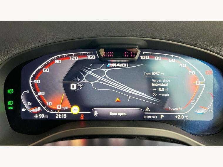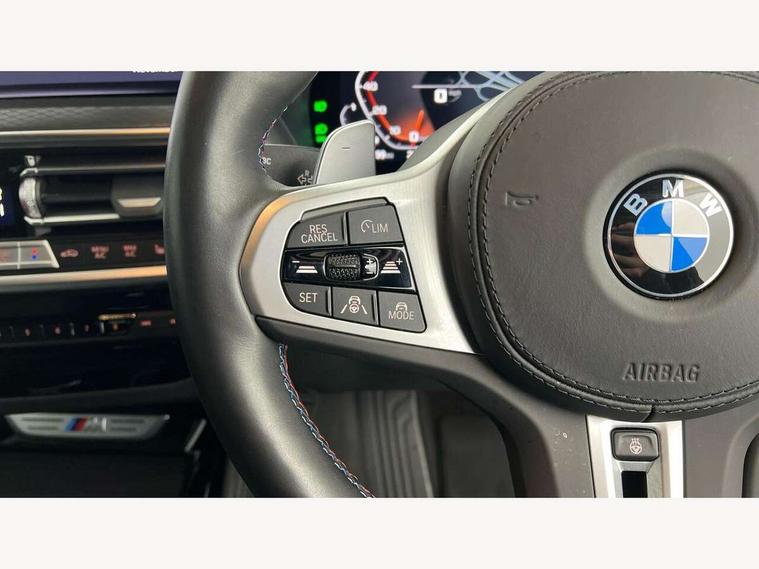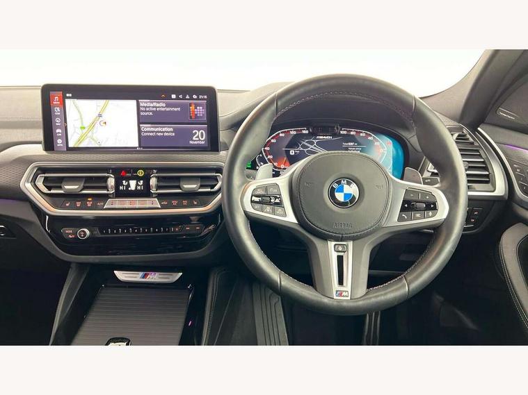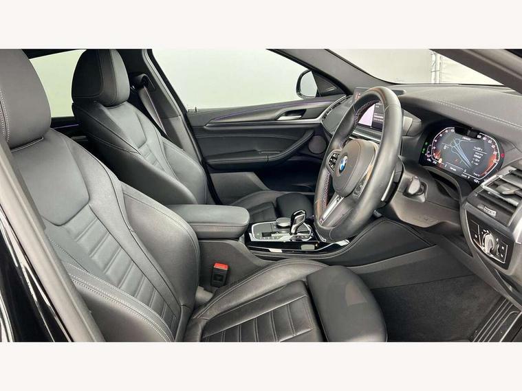 Active Guard Plus incl front collision warning with brake intervention, Attentiveness assist, Automatic operation of tailgate, BMW ConnectedDrive online services, BMW Live Cockpit Professional with 12.3" instrument display with Intelligent Voice Assistant, BMW Teleservices, Brake pad wear indicator in front and rear, Check Control warning system for monitoring of lights and door/luggage compartment open warning, Condition based service - BMW service history, electronic service booklet, integrated owner's handbook, Driving experience switch, Electric bootlid, iDrive touch controller with turn and press function, Instrument cluster with speedometer with mph readout, tachometer, fuel gauge and oil temperature gauge, Language version English, Lights on warning by audio warning signal when ignition is switched off, Oil sensor for level and grade, warning by check control system, On board computer - average speed+fuel consumption, service interval, clock/date, odometer/trip meter, outside temperature display and ice warning, Optimum shift indicator, Park distance control (PDC), Personal Profile - automatic lock when driving away selectable, Servotronic system, Variable sports power steering, Double joint spring strut front axle, Double VANOS, Drive performance control - ECO PRO, comfort and sport modes, EU6 emissions management, Five link rear suspension, High precision injection, M Adaptive suspension, M Sport differential, Multiple control arm rear axle, Performance Control, Sport automatic transmission with gearshift paddles, Twin scroll turbocharger with Valvetronic, 2x USB Type C ports in front centre console for charging and data transfer, 2x USB Type C ports in rear centre console for charging, BMW professional radio/CD/MP3, DAB tuner, Acoustic glass, Automatic parking function on passenger's side exterior mirror, Automatic windscreen wipers and automatic headlight, Black chrome tailpipe finishers, Black finish on B pillars, Black kidney frame and nuggets painted in high-gloss black, BMW emblem base at rear in high-gloss black, Body colour door handles, Body colour roof mouldings, Body colour roof spoiler, Body coloured bumpers, Chrome exhaust tailpipes in split left and right, Direction indicator, side repeaters, integrated in exterior mirrors, Door sill strips, Dynamic brake lights, Electric folding wing mirrors with auto dimming, Electric front and rear windows with fingertip open/close + anti-trap facility and comfort closing function, Electrically adjustable and heated door mirrors, Electro-chrome auto-dimming rear view mirror, Electrochromic driver side exterior mirror, Energy absorbing foam within the front bumper, Extended high gloss shadow line exterior trim, Follow me home headlight function, Front and rear bumper system with replaceable deformation elements, Full LED L shape 3D tailights, Glacier silver metallic matt in side sills, Green tinted heat insulating glass, Headlight beam throw control, Heated windscreen washer jets, High gloss black front door sill finishers with BMW designation, LED High level third brake light, LED rear lights, Lightweight engineering, M black mirror caps, M designation side exterior badges, Model designation, Rain sensor + automatic driving lights control, Rear side wing doors, Rear wiper, Reversing lights, Shark fin antenna, Sun protection glass, Tinted passenger side exterior mirror, Visible VIN plate, Windscreen wipers with adjustable interval, 12V power socket in front centre console, 12V power socket in front storage compartment, 3 seat bench in 2nd row, 3 zone automatic air conditioning, 40/20/40 split folding rear seats with backrest, Anthracite headlining, Electric adjustable front seats with memory function for driver seat, Foldable storage floor with compartment, Front and rear bottle holders integrated into door trim storage compartments, Front and rear door exit lights, Front and rear footwell lighting, Front and rear side armrests integrated into door trim, Front centre armrest with storage compartment, Front passenger seat, Front/rear reading lights, Heated front seats, Height adjustable front/rear head restraints, Leather gear knob, Lockable glove compartment, Luggage compartment lighting, M Sport multifunction leather steering wheel, Make-up mirror lights, Microfilter and active carbon filter, Parcel shelf removable and storable under boot floor, Reach + rake adjustable steering column, Rear centre armrest with 2 cupholders, Storage compartment in rear centre console and front/rear door trims, Storage compartment lighting in front center armrest, Storage tray and compartment with cover in centre console, Sunvisors with vanity mirrors and ticket pocket, Synthetic leather door trims, Three rear headrests, Through loading system, Toolkit located in luggage compartment, Two front cupholders with removable oddments tray/lid, Two lashing eyes in luggage compartment, Velour floor mats, Visual exit area and front and rear door recognition, Welcome light (no extra light) with illumination in the colour white, Ambient lighting pack - X4, Connected package pro - X4, M Aerodynamic pack - X4, Non Smokers pack, 3 point seatbelts on all seats, Active protection, ADB - Automatic Differential Brake, Anti-lock braking system (ABS) with brake assist, Automatic Stability Control (ASC), Battery safety cut-off, BMW emergency call, Brake drying, Brake energy regeneration, Braking pre-tensioning, Child proof locking system in rear door, Child seat ISOFIX attachment rear outer seats, Cornering brake control (CBC), Crash Sensor - activation of central locking release, hazard warning light and interior lighting, safety battery terminal clamp and trigger e-Call, Deactivation of fuel pump in the event of a crash, Driver and front passenger knee airbag, Driver and passenger side airbags, body protection at side and airbags deploy from seat backrests, Driver/front passenger airbag, Dynamic brake control, Dynamic stability control + (DSC+), Dynamic Traction Con