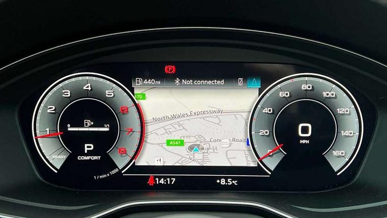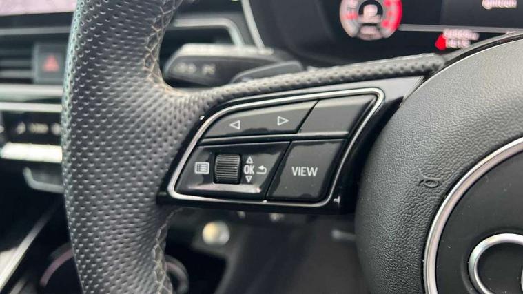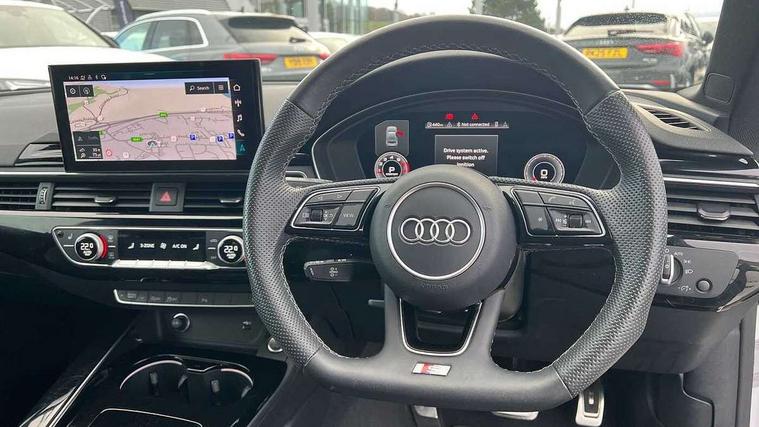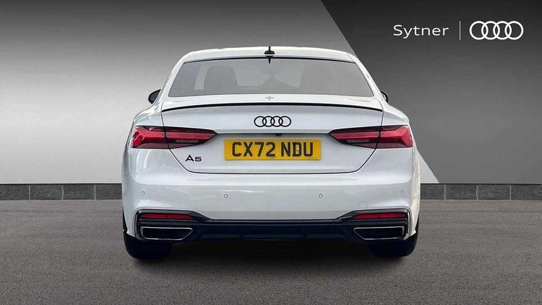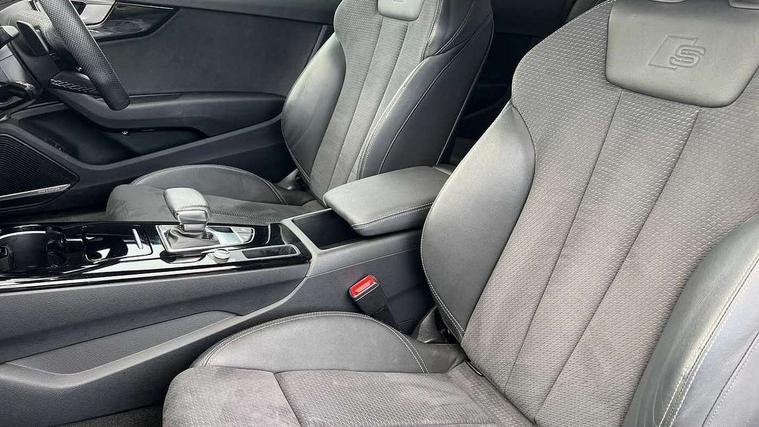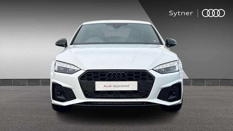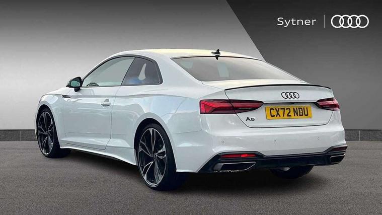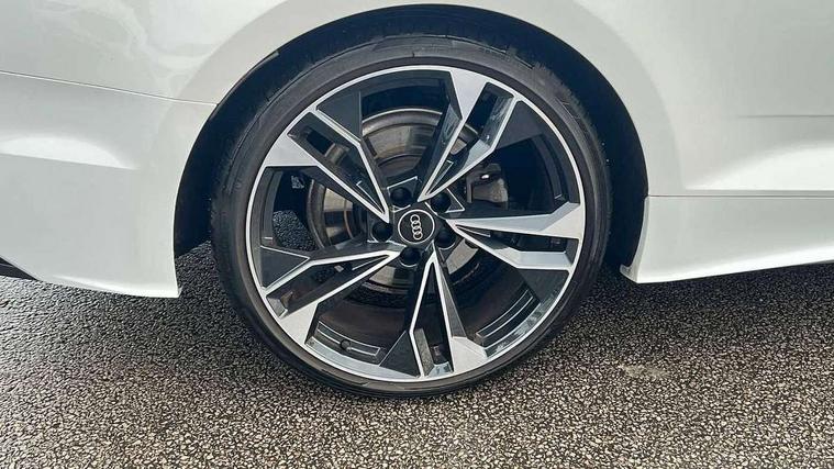 Audi connect safety and service (e-call), Audi connect with Amazon Alexa Integration, Audi drive select (Auto, Comfort, Dynamic, Efficiency and Individual), Audi parking system plus with front and rear sensors, Audi smartphone interface, Audi virtual cockpit - 12.3" full colour digital instrument cluster, vehicle/engine speed, Radio/media information+Driver assistance systems, Automatic start-stop system with coasting functionality and efficiency programme, Bluetooth interface, Electric boot lid release, Electro-mechanical power steering, Email, calendar and text messages displayed via MMI, MMI nav+ with MMI touch - 10.1" high resolution MMI display, touch sensitive, 3D map, route/country info, dynamic route guide, personal route assist, Rear view camera, Service interval indicator, Voice control system, Sports suspension lowered by 23mm, 8 passive loudspeakers, CD player, DAB digital radio reception, Two additional USB ports for rear passenger in rear centre console, Two SDXC card slots, Audi matrix LED headlights with LED rear lights + dynamic front and rear indicators, Auto dimming door mirrors, Auto dimming rear view mirror, Black door mirror housings, Body colour door handles, Body colour front spoiler lip, Body colour side sill trim, Electric adjustable heated door mirrors, Electric folding door mirrors, Electric front windows, Front and rear bumpers with side skirts, Front fog lights, Honeycomb structure radiator grille in grained matt black, Kerb-view function for passenger side, LED daytime running lights, LED side indicator lights integrated into door mirrors, LED third brake light, Matt aluminium silver tailpipe trim, Privacy glass, Rain and light sensors, Rear boot, Rear diffuser in matt titanium black with trim strip in matt aluminium silver, Rear side wing doors, S model rear spoiler in black, Side air inlets in grained matt black with matt aluminium silver inlay, Variable front intermittent wipers, Windscreen with acoustic glazing, 2 seat bench in 2nd row, 4 way electric lumbar support for driver and front passenger, 40/20/40 split folding 2 seater rear seat bench with rear centre armrest, Adjustable steering column, Black cloth headlining, Black perforated leather gearknob, Contrast stitching on seats, steering wheel and gear lever gaiter, Deluxe 3 zone electronic climate control, Front centre armrest, Front head restraints, Front/rear floor mats, Heated front seats, Illuminated door sill trim with S logo, ISOFIX child seat mounting and top tether, Luggage compartment mat, Manual seat adjustment, Rear headrests, Single front passenger seat, Stainless steel pedals, Sunvisors with vanity mirrors, Black styling pack - A5 Coupe/Sportback, LED interior light pack - A5/RS5, 2 x 3-point rear seatbelts, 6 airbags - Driver, front passenger, curtain and side airbags, Electromechanical parking brake, Electronic Stabilisation Control (ESC) including ABS, ASR and EDL, Front passenger airbag deactivation, Height adjustable front seatbelts, Hill hold assist, Multi collision brake assist, Pop-up bonnet for pedestrian protection, Pre sense city, Seatbelt monitoring, Tyre pressure warning, Variable restraint system, Warning triangle and first aid kit, Anti theft alarm system, Anti theft wheel bolts, Immobiliser, Keyless Go, Remote central locking, Piano black finish inlay, 20" 5 twin spoke polygon design alloy wheels in gloss anthracite black and gloss turned finish, Tool kit, Tyre repair kit,