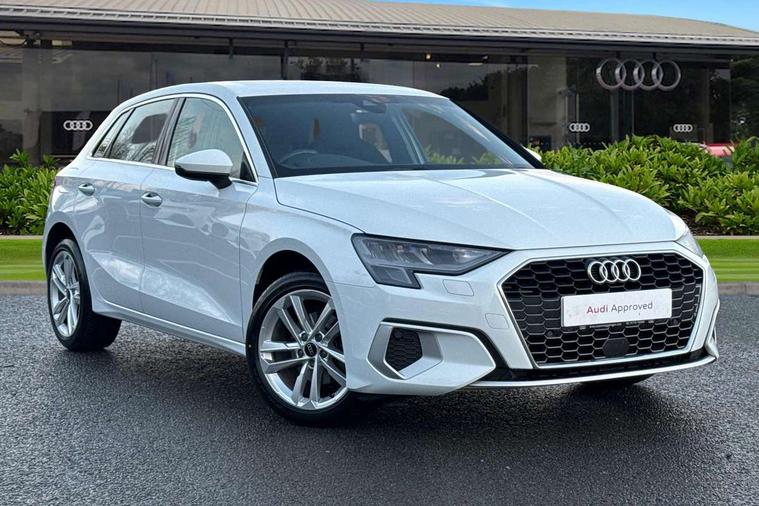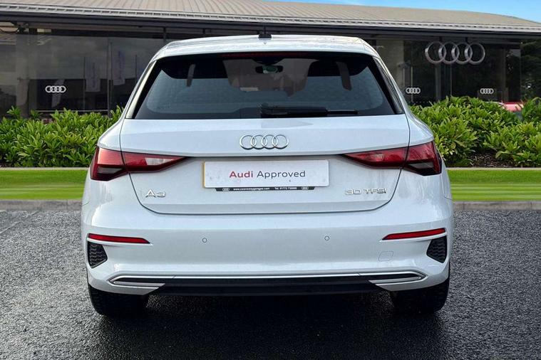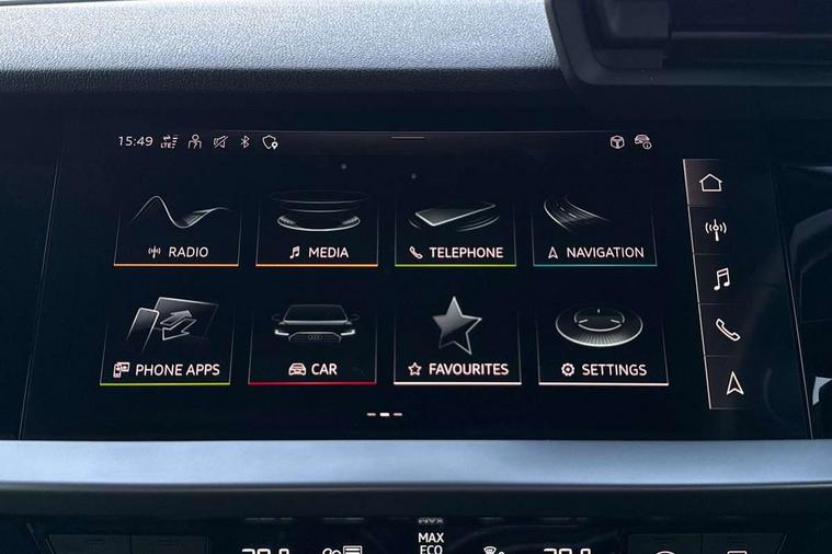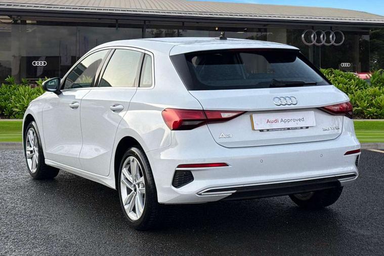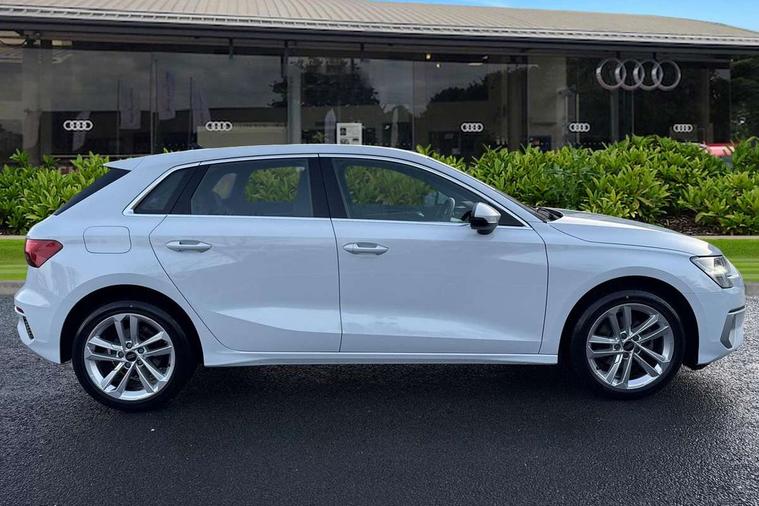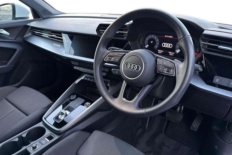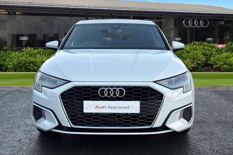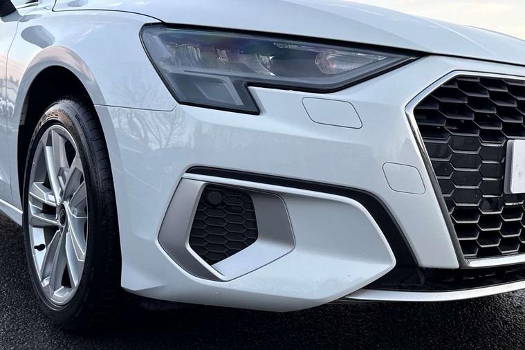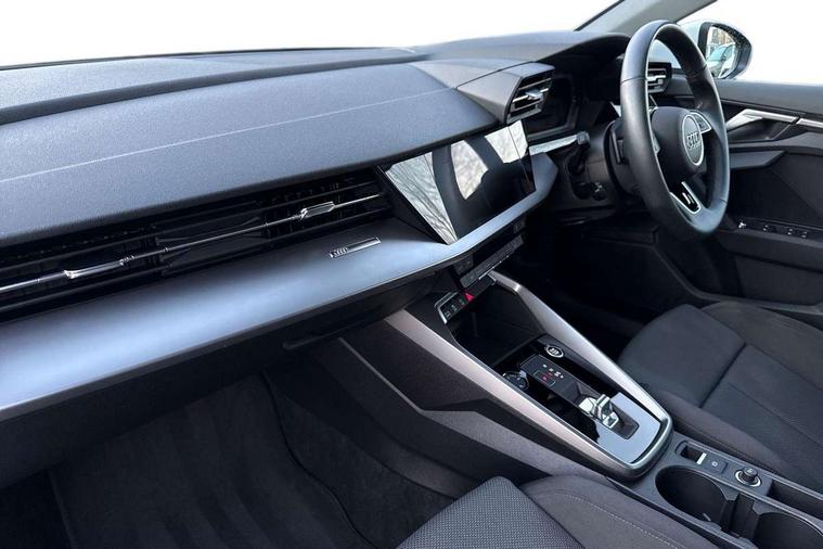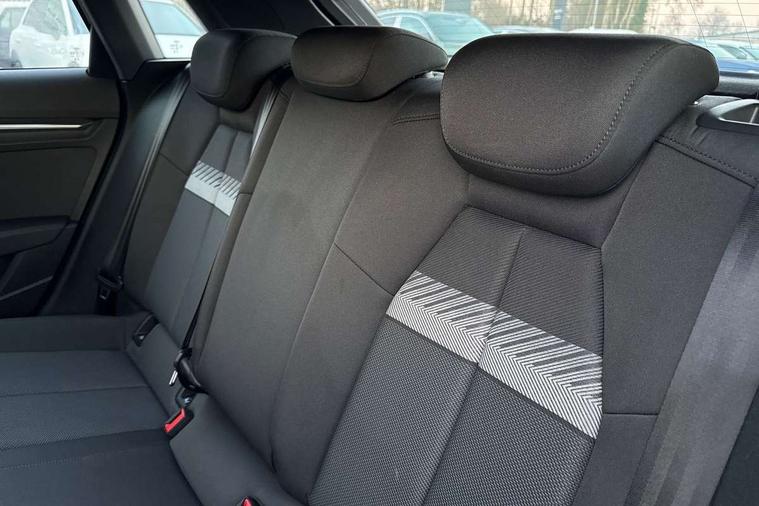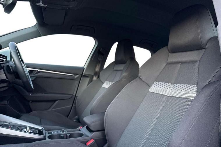 Audi drive select (Auto, Comfort, Dynamic and Individual), Audi smartphone interface, Audi Virtual Cockpit - 10.25" digital and colour instrument cluster, Automatic start/stop system with recuperation, Bluetooth interface, Camera based traffic sign recognition, Collision avoidance assistant, e-Call (emergency call), Electromechanical power speed sensitive steering, Lane departure warning system, MMI Navigation Plus with high resolution 10.1" colour touch screen display, Service indicator, Trip computer, Voice control system with natural language interaction, Standard suspension, 2xUSB-C connection with data and charging functions, 6 passive loudspeakers, DAB Digital radio, 3rd brake light, Acoustic glass windscreen, Aluminium window trim, Auto dimming frameless rear view mirror, Body colour exterior mirrors, Body colour roof spoiler, Electrically adjustable/heated/folding/auto dimming door mirrors with integrated LED indications + kerb view function for passenger side, Front electric windows, LED daytime running lights, LED headlights and halogen rear lights, Light and rain sensors, Rear electric windows, Rear side wing doors, Rear window, rear door windows and rear side windows in clear glass, Rear wiper, 12V socket and storage compartment in front centre console, 3 seat bench in 2nd row, 3 spoke leather multifunction steering wheel with paddle shift, 4 way electrically adjustable lumbar support for driver and front passenger, 60/40 split folding rear seat bench, Dual zone electronic climate control, Front and rear headrests, Front centre armrest, Front door sill trims with aluminium inlay, Front/rear floor mats, Height and reach adjustable steering wheel, Interior lighting - Front and rear roof module including reading lights, glove compartment light and right hand side, Interior lighting - glove compartment light and right hand side, Luggage compartment floor covering, Manual boot compartment lid, Manually adjustable front seats, Routine cloth upholstery with front sports seats, Seat side bolsters, Single front passenger seat, Steel grey cloth headlining, Aluminium interior elements pack - A3 Sportback, LED interior lighting pack - A3 Sportback, Sport styling pack - A3 Sportback, 3x3 point rear seat belts, Driver and front passenger airbag with passenger airbag deactivation, Electronic Stabilisation Control (ESC) including ABS, ASR and EDL, First aid kit with warning triangle and 2 safety vests, Front side airbags with head airbags and interaction airbag, Pre-sense front with pedestrian and cyclist detection, Seatbelt monitoring, Tyre pressure loss indicator, Anti theft alarm, Anti-theft wheel bolts, Electronically operated child locks, Immobiliser, Remote control central locking, Inlays with silk effect paint in platinum grey,