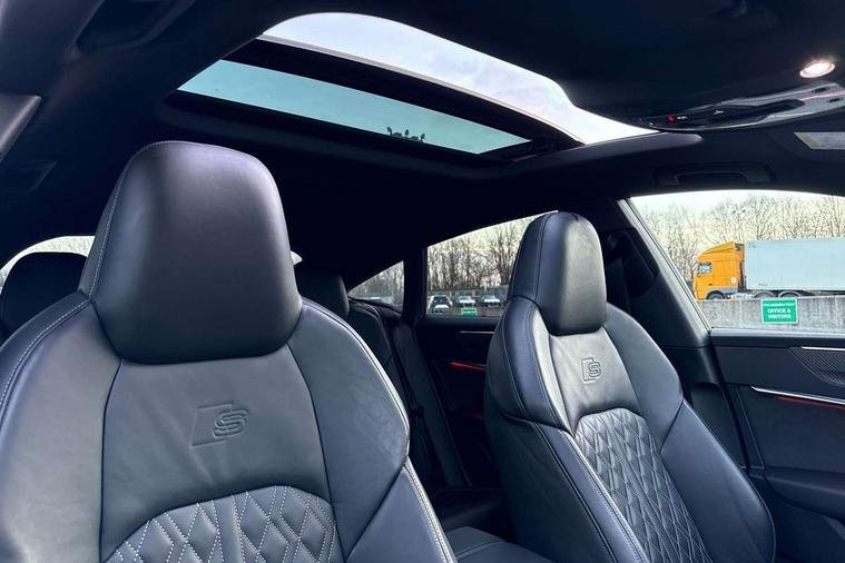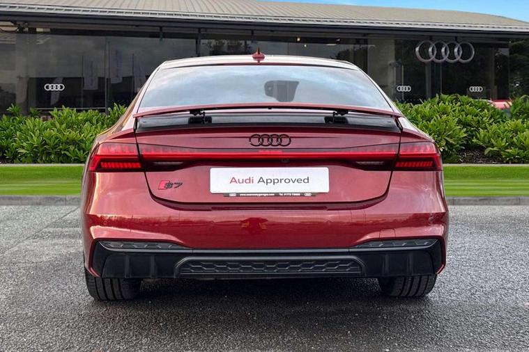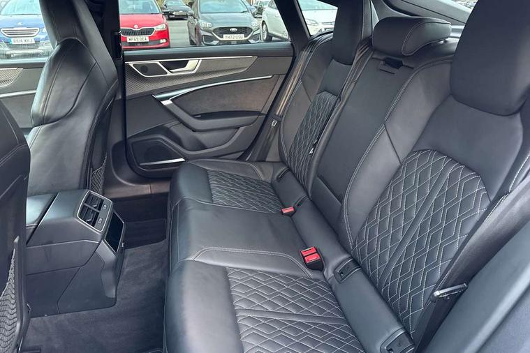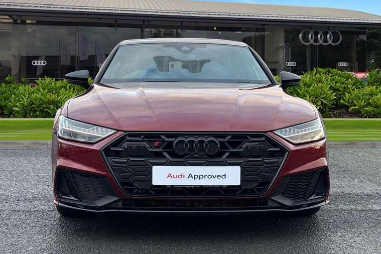 360 degree parking camera, Audi connect safety and service (e-call), Audi connect with Amazon Alexa Integration, Audi drive select, Audi virtual cockpit, Automatic start/stop system with coasting functionality, Bluetooth interface, Camera based traffic sign recognition, Colour driver's information system display, Head up Display, Lane departure warning system, MMI nav plus with MMI touch + 10.1" and 8.6" HD haptic touch screen/3D city models/country information/online map/route info and personal route assist, Operating buttons in black, glass look with haptic feedback, Progressive steering, Service indicator, Smartphone interface includes wireless Apple carplay/Android Auto, Voice control system, 22 litre AdBlue tank, 73 litre fuel tank, Diesel particulate filter, Quattro all wheel drive with self locking centre differential, Quattro on demand, S sport suspension with damper control, Audi music interface, Auxiliary input socket, Bang + Olufsen premium sound system, DAB digital radio module, Audi beam, Audi rings, front and rear as well S7 at the rear in black, Audi S badging on front grill with red rhombus and without model numbering, Body colour S specific rear diffuser, Electrically adjustable heated and folding + automatically dimming exterior mirrors with memory function, Frameless auto dimming interior rear view mirror, Front and rear electric windows, Gloss black highlights on the exterior area of the Audi Single frame, Gloss black highlights on the front and rear bumpers, Gloss black highlights on the radiator grille, Gloss black highlights on the side windows trim strips, HD Matrix LED headlights, Heat insulating darkened glass in side and rear windows, LED 3rd brake light, LED rear lights with dynamic indicators, Omission of output/technology badging, Privacy glass with side and rear windows, Rain and light sensors, Rear side wing doors, Rear wiper, Retractable rear boot spoiler, S air inlet in titanium anthracite black, S front and rear bumpers, S Line side skirts, Signature LED daytime running lights, Towbar preparation, Windscreen with heat-insulating glass, 4 zone climate control, 4-way electric lumbar support, 40/20/40 split folding 3 seater rear seat bench with rear centre armrest, Audi phone box light, Black cloth headlining, Electrically adjustable front seats - driver seat with memory, Front and rear headrests, Front centre armrest, Heated front seats, Height/reach adjust steering wheel, Illuminated sun visors with vanity mirrors, ISOFIX child seat mounting and top tether in front and outer rear seats with front passenger airbag deactivation, Leather gear knob, Leatherette upper instrument panel and door shoulders, Luggage compartment lid, electrically opening and closing, S line front and rear floor mats with contrast stitching, Single front passenger seat, Stainless steel pedals and foot rest, Valcona leather upholstery with super sport seats and S embossed logo, Extended LED Interior multi coloured light pack - A7, Non smoking pack - A7, Park assistance plus pack - A7, Storage pack - A7, 19" Disc brakes in front and brake calipers painted in black with "S" lettering (ECE), 3 point seatbelts on all seats, Audi pre-sense front, Driver and passenger airbags, Electromechanical parking brake, Electronic stabilisation control including ABS, ASR and EDL, Extended pedestrian protection measures, Hill hold assist, Manual child lock in rear doors, Seatbelt monitoring, Tyre pressure warning light, Warning triangle and first aid kit, Anti theft alarm with tow away protection, Anti-theft wheel bolts and wheel loosening detection, Immobiliser, Keyless Go, Preparation for tracking system, Remote central locking, Carbon twill inlays, 21" 5 V spoke trapezoid anthracite black, gloss turned alloy wheels, Tool kit,