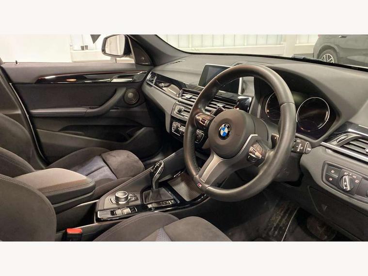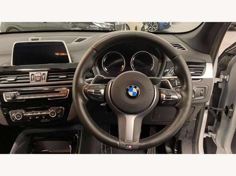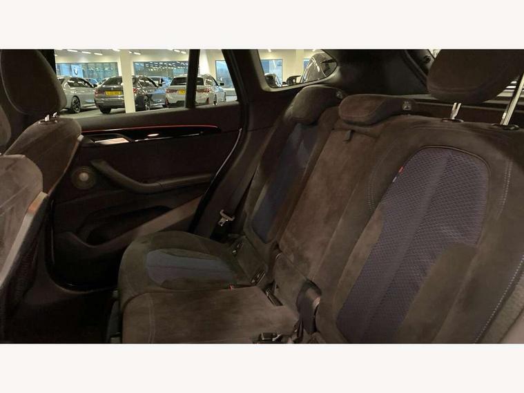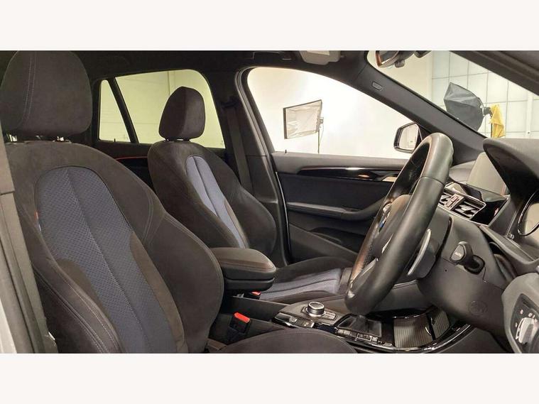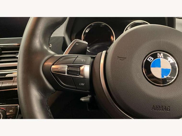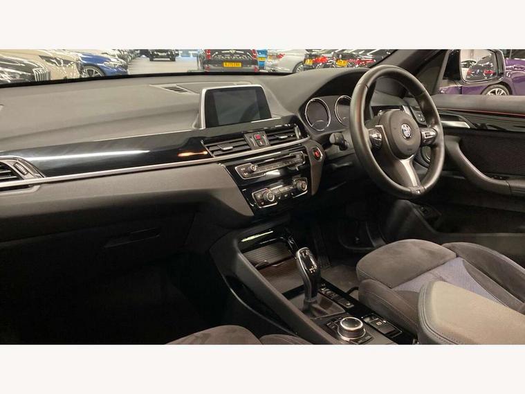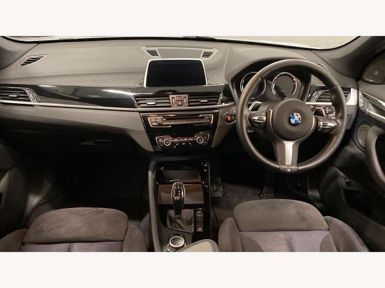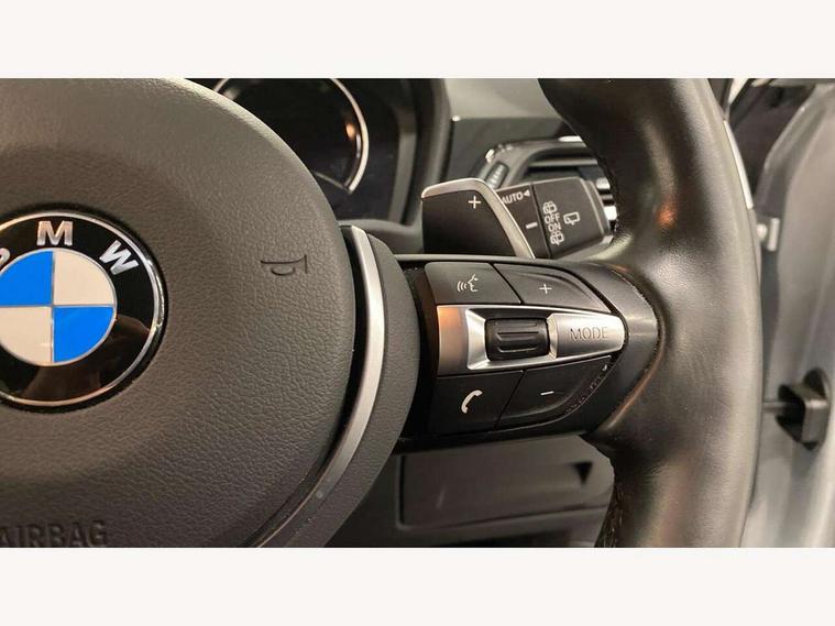 Active Guard incl speed limiting and lane departure functions with auto steering, and front collision warning with brake intervention, Ambient temperature display, Attentiveness assist, Automatic tailgate opening, BMW Online services, BMW remote services, BMW Teleservices, Brake pad wear indicator in front and rear, Instrument cluster with speedometer with miles per hour read out, tachometer and fuel gauge, Lights on warning by audio warning signal when ignition is switched off, On board computer, Outside temperature gauge, Personal Profile - automatic lock when driving away selectable, Real time traffic information, Service interval indicator, Speed limiter, Stop/start button, Tyre puncture warning system, 12V compressor with integrated sealant injection bottle and hose, Drive performance control with ECO PRO comfort + sport mode, Electronic differential lock, High precision injection, Performance Control, 2 USB Power socket for rear seat, BMW professional radio with CD player, DAB Digital radio, USB connection located in centre console, USB/audio interface, Adaptive LED Headlights, Adjustable headlights, Body colour bumpers, Body colour door handles, Body colour door mirrors, Clear lenses direction indicator lights, Direction indicator side lights integrated exterior mirrors, Dynamic brake lights, Electrically adjustable and heated door mirrors, Fingertip control / anti-trap function on electric window, Follow me home headlights, Front air inlets with black matt finisher and silver matt highlight, Front and rear electric windows, Front fog lights, Halogen headlights, Headlight beam throw control, Heat insulating tinted glass, Heated windscreen washer jets, High level third brake light, kidney grille with high gloss black vertical slats, LED daytime running lights, Lightweight engineering, M aerodynamic body styling, M door entry sills, M logo designation in side chrome, Rain sensor including auto headlights activation, Rear fog lights, Rear window aerial, Rear window wash/wipe, Reversing light in rear light cluster, Shark fin antenna, Sill cover in silver matt insert, Twin chrome exhaust tailpipes x2, Visible VIN plate, Welcome home function, 12v power point in centre console, 3 rear headrests, 3 spoke sport nappa leather steering wheel, 4 grab handles, Anthracite headlining, Boot light, Centre console with cupholders, Child seat ISOFIX attachment for two outer rear seats and front passenger seat with anchorage points, Driver and front passenger heated seats, Driver/passenger sunvisors with ticket holders, Drivers folding storage compartment, Dual zone automatic air conditioning, Extended storage, Front and rear door armrests, Front centre armrest/sliding cover, Front sports seats, Front/rear adjustable head restraints, Gearshift lever with M designation, Illuminated glovebox, Leather gearknob/gaiter/handbrake grip, LED ambient lighting in door trim, Luggage area underfloor compartment, Luggage compartment lighting, Luggage compartment loading edge with stainless steel insert, Multifunction steering wheel, Rake/reach adjustable steering wheel, Rear coded belt buckles, Sliding/split/reclining 40/20/40 rear seat with 60/40 split rear seat base, Steering wheel gearshift paddles, Velour floor carpets, Extended storage package - X1, 3 rear 3 point seatbelts, ABS/EBD, Audio/visual collision warning system, Automatic Stability Control (ASC), Battery safety cut-off, BMW emergency call, Brake drying, Brake energy regeneration, Braking readiness, Collision mitigation braking system, Cornering brake control (CBC), Crash Sensor - activates hazard/interior lighting + unlocks doors, Driver/Front Passenger airbags, Driver/front passenger side airbags, Dynamic brake control, Dynamic stability control + (DSC+), Dynamic Traction Control - DTC, Electronic parking brake, Front and rear head airbags, Front passenger airbag deactivation, Front seatbelt force limiters, Front ventilated disc brakes, Hill start assist, Pyrotechnically pre-tensioned front seatbelts, Rear disc brakes, Rear door child safety locks, Seatbelt warning, Side impact protection, Twin horns, Tyre pressure monitor, Warning triangle and first aid kit, Auto door lock when driving, Central locking including boot and fuel flap with deadlocks, Engine immobiliser, Locking wheel nuts, Remote control Thatcham category 1 alarm, Remote control with integrated key with M specific highlight, High gloss black centre console, Low rolling resistance tyres,