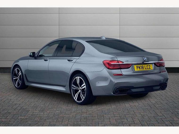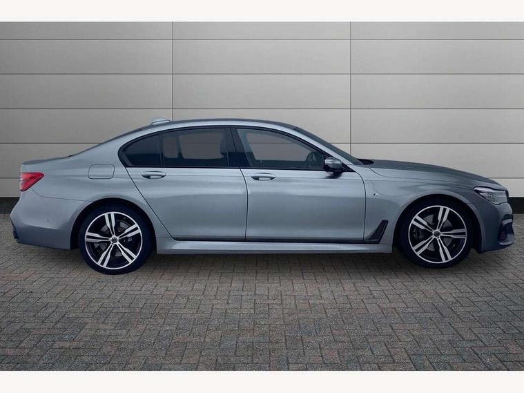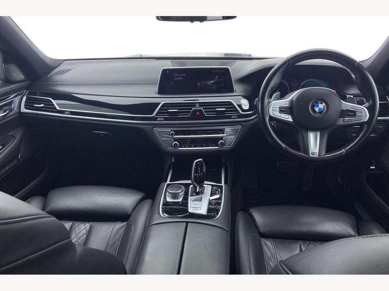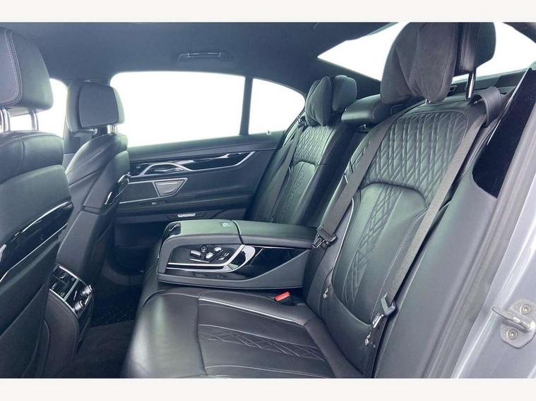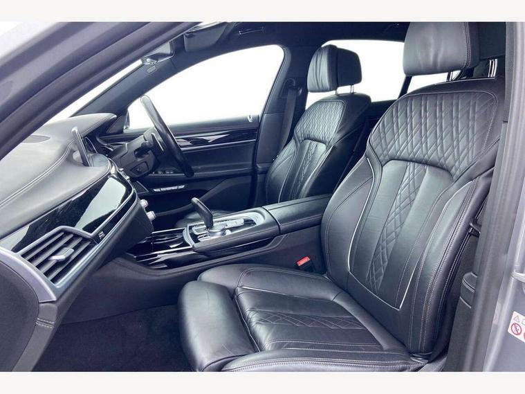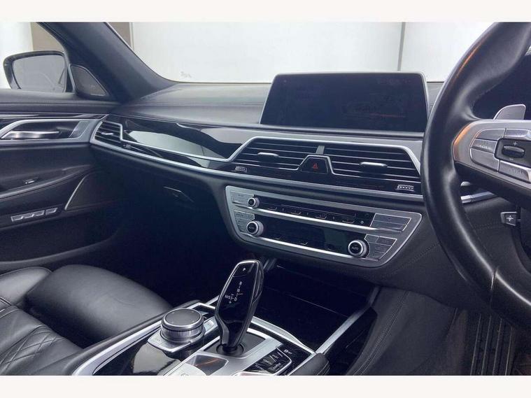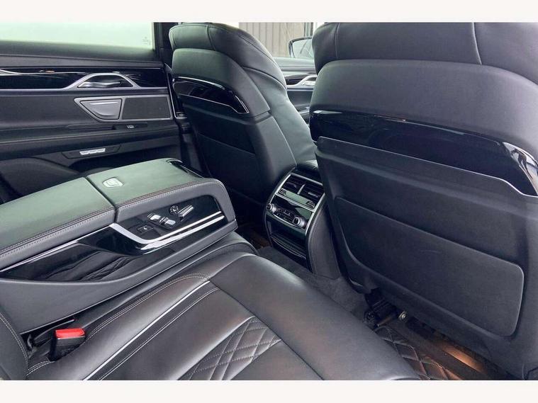 Automatic bootlid operation, BMW display key, BMW information plus, BMW online + Apps interface, BMW remote services, BMW Teleservices, Colour information display, Comfort access system with smart opener, Digital cockpit, Enhanced bluetooth telephone functionality with telematics, USB audio interface + voice control, EPAS, Multi function trip computer, Navigation System Professional Multimedia, Outside temperature gauge, Real time traffic information, Service indicator, Smartphone wireless charging plate, Speed limit display, Variable Damper Control, Wifi hotspot preparation, Diesel particulate filter, Self levelling twin axle air suspension, Sports function on gearbox with steering wheel mounted gearshift paddles, DAB Digital radio, Gesture control for infotainment system, Radio/CD/DVD/MP3 player, Wi-Fi hot spot, Auto dimming rear view mirror, Automatic headlights, Body colour bumpers, Body colour door mirrors, Electric front and rear windows with fingertip open/close + anti-trap all round, Exterior mirrors - electrically folding with anti-dazzle, Follow me home headlights, Heated windscreen washer jets, High beam assistant, High gloss shadow line, LED daytime running lights, M aerodynamic bodystyling, Outer door handle illumination, Rain sensor, Soft close automatic (SCA) for doors, 12V socket in front and rear, 4 zone control automatic air conditioning, Ambient interior lighting, Centre console with armrest, Driver + front passenger electric lumbar support, Footwell courtesy lights front and rear, Front and rear cupholders, Front comfort multi adjustable electric seats with memory for driver/front passenger + seat width adjustment, Front comfort seats, Front reading lights, Heated front seats, Heated rear seats, Illuminated door sill finishers, Isofix child seat attachment, Lockable glovebox, M sports leather steering wheel, Massage function for front seats, Multifunction steering wheel, Reach and rake adjustable steering column, Rear armrest, Rear comfort seats, Rear headrests, Velour floormats, Smokers pack - 7 Series, ABS+EBD+Brake assist, Anti-whiplash front headrests, Automatic Stability Control (ASC), BMW emergency call, Cornering brake control, Crash Sensor - activates hazard/interior lighting + unlocks doors, Driver and passenger airbags, DSC - Dynamic Stability Control, Dynamic brake control, Dynamic safety, Dynamic Traction Control - DTC, Electromechanical parking brake + auto hold function, Front passenger airbag deactivation, Front seatbelt pretensioners with force limiters, Rear airbags, Side airbags, Tyre pressure monitor, Warning triangle and first aid kit, Immobiliser, Locking wheel bolts, Remote central locking, Individual leather instrument panel, Run flat tyres,