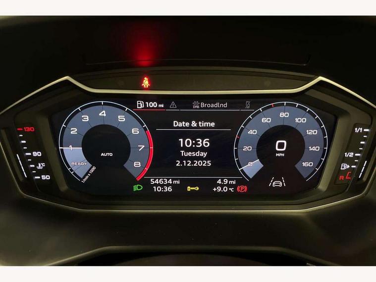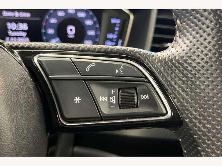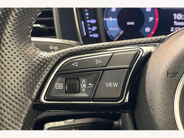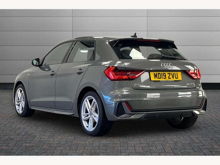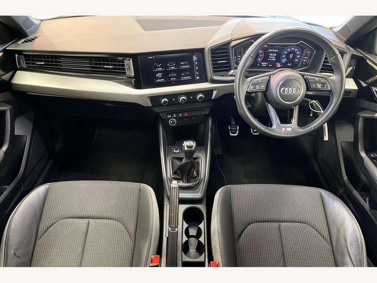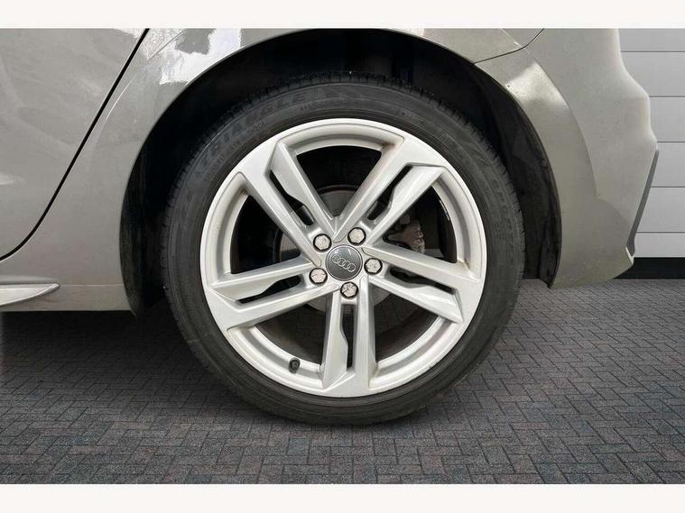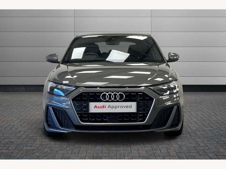 10.25" Digital instrument cluster display screen, Audi connect safety emergency and service including E-call, Audi drive select, Audi smartphone interface, Automatic start/stop system, Bluetooth interface, Driver's information system, Electromechanical power steering, Lane departure warning system, Service interval indicator, Speed limiter, Voice control system, Washer fluid level indicator, Sports suspension, 1 x SDXC card reader, 1 x USB type C and 1 USB type A charging points, Audi music interface, Bluetooth audio streaming, DAB Digital radio, MMI radio plus with 8.8" colour MMI display screen and MMI touch, Auto dimming rear view mirror, Body colour side sill mouldings, Body coloured bumpers, Body coloured door mirrors, Door sills with aluminium inlays and S Line logo, Electric front and rear windows, Front side air inlets in grained matt black and C frame in titanium black, Heat insulating glass windscreen and side windows, Heated rear windscreen, LED headlights with LED rear lights + dynamic rear indicators, Matt aluminium silver tailpipe trim, Matt black radiator grille frame, Matt platinum grey in front spoiler clip and rear diffuser clip, Rain and light sensors, Rear fog lights, Rear wiper, S line badges on front wings, S line exterior bumpers, S line roof spoiler, Side air inlet frames titanium black, Side front spoiler lips in grained matt black, 12V socket in centre console with two cup holders, 3 rear seats, Black cloth headlining, Driver and passenger seat with manual height adjust with forward and backwards adjustment, Front and rear black floor mats with contrast stitching in fine silver, Front head restraints, Height and reach adjustable steering wheel, ISOFIX child seat mounting in front passenger and rear outer seats, Leather gear knob with aluminium trim, Leatherette handbrake grip, Luggage compartment light with front and rear reading lights, Lumbar adjustment for front seats, Rear head restraints, Split folding rear seats, Stainless steel pedals, 3x3 point rear seatbelts, Audi pre-sense front with pedestrain and cyclist recognition, Brake assist function, Driver and front passenger airbag with front side and head airbags, Electronic Stability Control including ABS, EBD, ASR and EDL, Front and rear seatbelt reminder, Front passenger airbag deactivation switch, Hill hold assist, Seatbelt height adjustment for front seats, Seatbelt monitoring, Tyre pressure warning light, Warning triangle and first aid kit, Anti theft alarm, Anti theft wheel bolts and loose wheel warning, Immobiliser, Remote central locking with 2 remote folding keys, Aluminium trim for control switches, air vents and digital instrument cluster, Silver grey inlays polygon structure in diamond paint finish, Structured grey accent areas including air vents, door handle recesses and centre console in quartz paint finish,