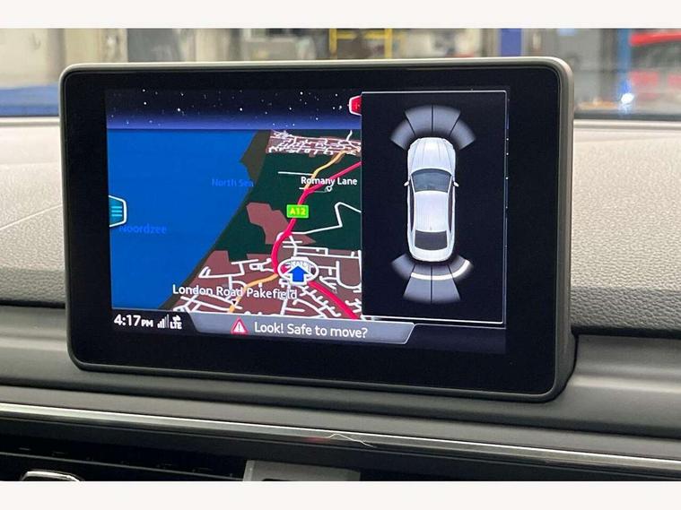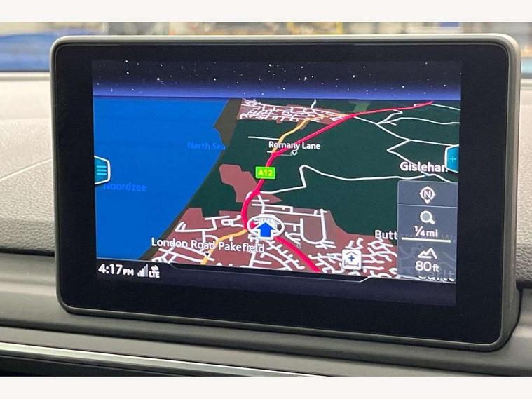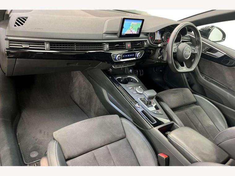 7" Colour driver information system, Audi connect, Audi drive select, Audi parking system plus with front and rear sensors, Audi smartphone interface, Automatic start-stop system with coasting functionality and efficiency programme, Bluetooth interface, Electric boot release, Electro-mechanical power steering, MMI Navigation, Service interval indicator, Voice control system, 2 x USB charging port with aux input socket, CD player, DAB Digital radio, Two SDXC card slots, Air inlets in titanium black with matt aluminium inlay, Auto dimming rear view mirror, Body colour bumpers, Chrome plated exhaust pipe, Electric adjustable heated door mirrors, Electric front windows, Front fog lights, High beam assistant, High gloss black door mirrors, Rain and light sensors, Rear diffuser in Twilight grey matt with honeycomb grille, S Line body styling, S line sill plates, S style high gloss black rear spoiler, Side and rear windows privacy glass, Titanium black frame and radiator grille, Titanium black front and rear air intakes, Titanium black window surround, Windscreen with acoustic glazing, 3 spoke flat bottom high multi-function leather steering wheel, 40/20/40 split folding 2 seater rear seat bench with rear centre armrest, Adjustable steering column, Black headlining, Black perforated leather gearknob, Centre console with cupholders, Contrast stitching on seats, steering wheel and gear lever gaiter, Deluxe 3 zone electronic climate control, Front centre armrest, Front head restraints, Front/rear floor mats, Gearshift paddles, Illuminated door sills, ISOFIX child seat mounting and top tether, Jack and tool kit, Luggage compartment mat, Rear headrests, S embossed logo on front sport seats, Stainless steel pedals and foot rest, Non Smokers pack, 6 airbags - Driver, front passenger, curtain and side airbags, Electromechanical parking brake, Electronic Stabilisation Control (ESC) including ABS, ASR and EDL, Front passenger airbag deactivation, Height adjustable front seatbelts, Hill hold function, Multi-Collision braking, Pop-up bonnet for pedestrian protection, Pre sense city, Seatbelt monitoring, Tyre pressure warning, Variable restraint system, Warning triangle and first aid kit, Anti theft alarm system, Anti theft wheel bolts, Immobiliser, Keyless Go, Remote central locking, Piano black finish inlay, 20" 5 arm rotor alloy design wheels with matt titanium finish, Tyre repair kit,