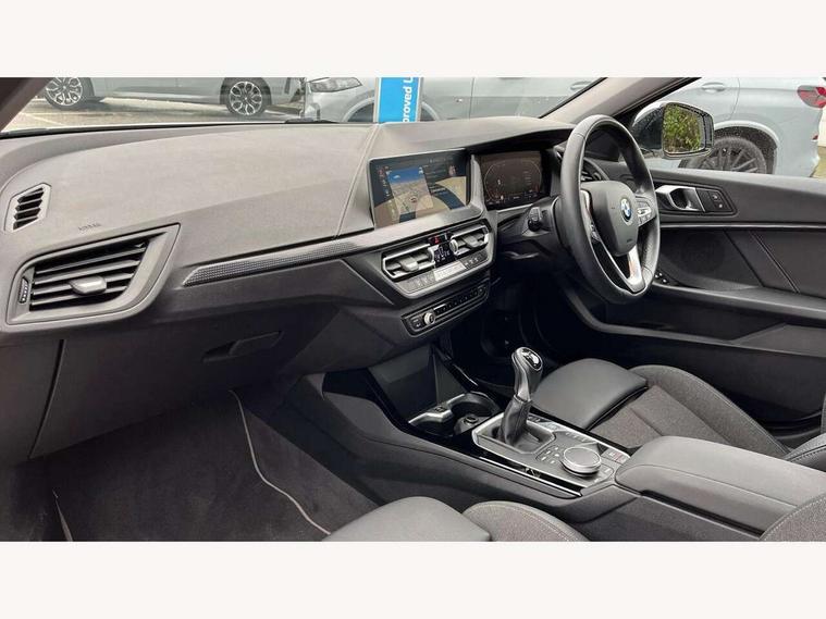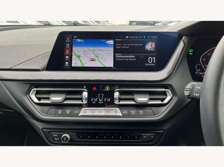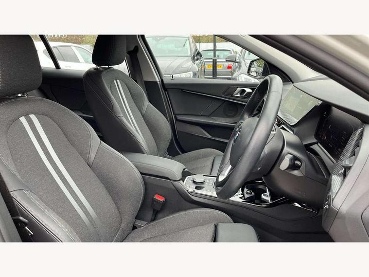 Active guard plus, Attentiveness assist, BMW ConnectedDrive online services, BMW Teleservices, Check Control warning system for monitoring of lights and door/luggage compartment open warning, Cruise control with speed limiter, Eco pro mode, Electric power steering with Servotronic steering optimised at all speed ranges, Front axle single joint with specific axle kinematics to minimise drive influences on steering + provide increased rigidity agile driving behaviour, Integrated owners handbook, Lane departure warning system, Oil sensor for level and grade, On board computer, Optimum shift indicator, Personal Profile, Pull away assistant, Rigidly mounted rear subframe - Multi link construction with separate spring / damper configuration and excellent driving characteristics, Speed limit Info including no-overtaking indicator, Aluminium lightweight construction, Anti roll bar front and rear, Balancer shaft, Double VANOS twin scroll turbocharging system, Drive Performance Control, Electronic differential lock, High precision injection, Petrol Particulate Filter, Suspension with twin tube gas filled shock absorbers with degressive characteristic curve, VALVETRONIC engine management, DAB Digital radio, Auto dimming rear view mirror, Automatic windscreen wipers and automatic headlight, Body colour door handles, Body colour mirror caps, Body colour roof trims, Chrome exhaust twin tailpipes round 90mm in left, Direction indicator side lights in exterior mirrors, Electrically adjustable exterior mirror with mirror adjustment switch on drivers armrest and aspheric on driver side, convex on passenger side, Fading support, Follow me home headlights, Front and rear bumper system with replaceable deformation elements, Front and rear electric windows with open and close fingertip control, anti trap facility and comfort closing, Front bumper in Body colour with exclusive Sport air inlets finished in High gloss Black, Front door sill finishers in black plastic with BMW designation in metallic look, Green tinted heat protection glazing, High gloss shadowline window frame, Recess cover mirror frames and B/C pillar embelisher trim, High level third brake light, Integrated front windscreen with washer jets, Kidney grille in chrome frame with highgloss black struts, LED daytime running lights, LED eyebrow turn indicators, LED front fog lights, Lightweight engineering, Manual headlight beam throw control, Manual headlight levelling, Matt black air guide grilles, Matt black wheel arch trim, Model designation on electric bootlid, Nearside reverse light in rear light cluster, Preparation for high beam assistant, Rear bumper in Body colour with exclusive Sport design elements finished in High gloss Black, Rear fog lights, Rear side wing doors, Rear window wiper, Shark fin antenna, Trailer stabilisation logic, Visible VIN plate, Welcome lighting, 12V power socket in front centre console with blanking plug, 3 rear seat head restraints, 3 seat bench in 2nd row, 3 spoke sports leather steering wheel in black leather with black stitching and decorative finisher in pearl chrome + gearshift lever knob in leather, Black boot net with lashing eyes, Cargo function on 2nd seat row, Child seat ISOFIX attachment for two outer rear seats and front passenger seat with anchorage points, Conditioned based service, Driver and front passenger backrest net on rear, Driver side folding compartment in instrument panel, Folding rear clothes hook, Four grab handles integrated in roof lining, Front and rear door pockets with bottle holders, Front and rear side armrest integrated into door trim, Front armrest, Front sports seats, Glove compartment, Height adjustable front head restraints, Luggage compartment for bag hooks on left and right, foldable luggage compartment liner and four lashing eyelets, Manual adjust steering wheel, Multi-function controls for steering wheel, Single front passenger seat, Storage compartment in centre console, Storage compartment in luggage compartment, Stowage of the parcel shelf in luggage compartment trim, Sun visors with vanity mirrors and insert tab, Two front centre console cupholders, Two zone automatic air conditioning, Type C two USB ports in rear centre console, Velour floor mats, BMW live cockpit professional pack- 1 Series, Connected pack professional - 1 Series, Interior lights pack - 1 Series, 2 tone horn, 3 point seatbelts on all seats, front pyrotechnic belt tensioners, stopper and belt force limiters, rear coded belt buckles, Airbags - Front driver/passenger, front and rear curtain head protection, front side, manual deactivation of front passenger airbag, Anti lock braking system (ABS) with brake assist, BMW emergency call, Brake drying, Braking readiness, Child proof locking system in rear door, City braking function, Comfort modes, Cornering brake control, Crash sensor activating of airbags, Unlocking doors, hazard warning lights, interior light, safety battery terminal, Driver and front passenger seat belt security check, Dynamic stability control + (DSC+), Dynamic Traction Control - DTC, Electrically operated hand brake, Front and rear disc brakes, Seatbelt warning, Side impact protection, Tyre pressure monitoring system, Warning triangle and first aid kit, Central locking switch for all doors, fuel filler cap and luggage compartment, Deadlocking function system to all doors, Drive away locking system on all doors and luggage compartment with de-activated in iDrive settings, Locking wheel bolts, Remote central locking with two Integrate key, one button for opening and closing all lock, open and close window, button for open luggage compartment, Start/stop button illuminated in centre console with keyless engine start and auto start stop deactivation button, Thatcham Cat.1 alarm and immobiliser, Wheel slip limitation close to the actuator (ARB), Contrast stitching on instrument panel, Illuminated Berlin interior trim, Electrically powered 12V compressor, Reduced rolling resistance tyres,