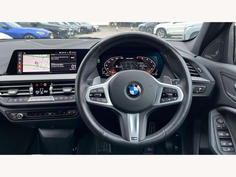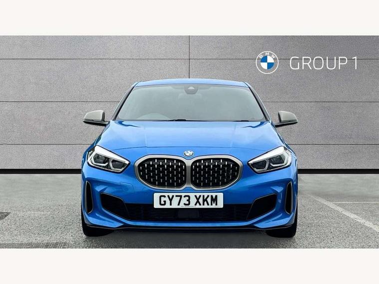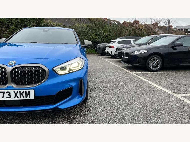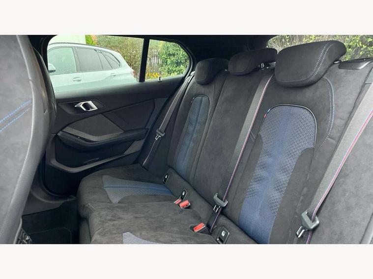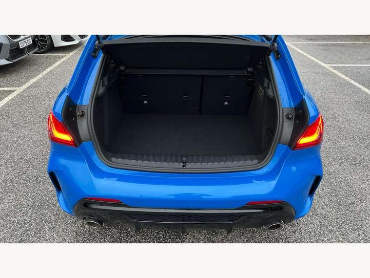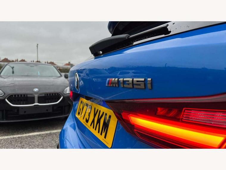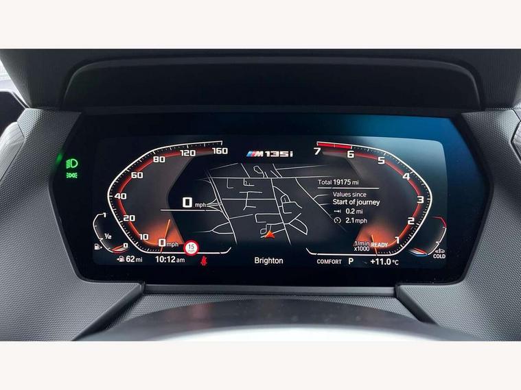Active guard plus, Attentiveness assist, BMW ConnectedDrive online services, BMW Teleservices, Check Control warning system for monitoring of lights and door/luggage compartment open warning, Cruise control with speed limiter, Eco pro mode, Electric power steering, Electro hydraulically controlled multi-plate clutch transfers drive to rear axle and with power take-off device located on the front differential., Energy efficient operating strategy, Front axle single joint with specific axle kinematics to minimise drive influences on steering + provide increased rigidity agile driving behaviour, Gearshift time display in manual mode, Integrated owners handbook, Lane departure warning system, M Sports steering with M135i xDrive specific settings, Oil sensor for level and grade, On board computer, Optimum shift indicator, Personal Profile, Pull away assistant, Rigidly mounted rear subframe - Multi link construction with separate spring / damper configuration and excellent driving characteristics, Speed limit Info including no-overtaking indicator, Sporty fast gear shifting in sport mode, Aluminium lightweight construction, Anti roll bar front and rear, Balancer shaft, Double VANOS, Drive Performance Control, Eight speed sport automatic transmission with gearshift paddle switches, Electronic differential lock, Electronic selector lever, Engine cover with M performance designation, High precision injection, Larger fuel tank capacity (50 litres), Launch control, M135i specific heavily de-throttled engine intake air guide, M135i specific high-performance cooling package, M135i specific larger turbocharger with integrated divert-air valve, Petrol Particulate Filter, Twin tube gas filled shock absorbers with degressive characteristic curve, VALVETRONIC engine management, Variable, stepless and infinitely adjustable distribution of drive torque between the front and rear axles, xDrive intelligent all wheel drive with M135i specific reinforced components, DAB Digital radio, Auto dimming rear view mirror, Automatic headlight beam throw control, Automatic windscreen wipers and automatic headlight, Body colour door handles, Body colour roof trims, Cerium grey exterior mirror caps, Direction indicator side lights in exterior mirrors, Electrically adjustable exterior mirror with mirror adjustment switch on drivers armrest and aspheric on driver side, convex on passenger side, Exhaust tailpipe, Cerium Grey with bevelled finish - twin, round 100mm, left and right split, Fading support, Folding side mirrors with auto dimming/folding wing mirrors with auto dimming, Follow me home headlights, Front and rear bumper system with replaceable deformation elements, Front and rear electric windows with open and close fingertip control, anti trap facility and comfort closing, Front door sill finishers with M135i designation, Green tinted heat protection glazing, High gloss shadowline window frame, Recess cover mirror frames and B/C pillar embelisher trim, High level third brake light, Integrated front windscreen with washer jets, Kidney grille frame in Cerium Grey with Mesh design, LED daytime running lights, LED eyebrow turn indicators, Lightweight engineering, M logo designation side in cerium grey, M Performance exhaust system with valve control and minimised exhaust back pressure, M Performance specific setup, M Sport spoiler, Matt black air guide grilles, Matt black wheel arch trim, Model designation on electric bootlid includes xDrive designation for M135i xDrive, Nearside reverse light in rear light cluster, Preparation for high beam assistant, Rear fog lights, Rear side wing doors, Rear window wiper, Reinforced crank drive, new pistons and adapted con rods, Shark fin antenna, Trailer stabilisation logic, Visible VIN plate, Welcome lighting, 12V power socket in front centre console with blanking plug, 3 rear seat head restraints, 3 seat bench in 2nd row, 3 spoke sports leather steering wheel with black leather and stitching, pearl chrome decorative finish, specific M Badge, Anthracite headlining, Black boot net with lashing eyes, Cargo function on 2nd seat row, Child seat ISOFIX attachment for two outer rear seats and front passenger seat with anchorage points, Conditioned based service, Driver and front passenger backrest net on rear, Driver and front passenger seat heating, Driver side folding compartment in instrument panel, Folding rear clothes hook, Four grab handles integrated in roof lining, Front and rear door pockets with bottle holders, Front and rear side armrest integrated into door trim, Front armrest, Front M sports seats, Glove compartment, Height adjustable front head restraints, Luggage compartment for bag hooks on left and right, foldable luggage compartment liner and four lashing eyelets, Manual adjust steering wheel, Multi-function controls for steering wheel, Single front passenger seat, Storage compartment in centre console, Storage compartment in luggage compartment, Stowage of the parcel shelf in luggage compartment trim, Sun visors with vanity mirrors and insert tab, Two front centre console cupholders, Two zone automatic air conditioning, Type C two USB ports in rear centre console, Velour floor mats, Additional interior lighting pack - 1 Series M135i, BMW live cockpit professional pack- 1 Series, Connected pack professional - 1 Series, Interior lights pack - 1 Series, M Sport exterior styling aerodynamics pack - 1 Series 135i, 2 tone horn, 3 point seatbelts on all seats, front pyrotechnic belt tensioners, stopper and belt force limiters, rear coded belt buckles, Airbags - Front driver/passenger, front and rear curtain head protection, front side, manual deactivation of front passenger airbag, Anti lock braking system (ABS) with brake assist, BMW emergency call, Brake drying, Braking readiness, Child proof locking system in rear door, City braking function, Comfort modes, Cornering brake control, Crash sensor activating of airbags, Unlocking doors, hazard warning lights, interior light