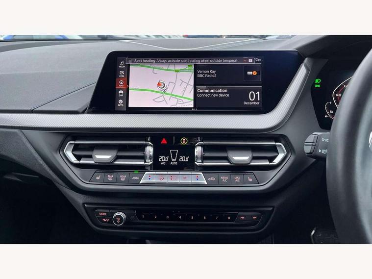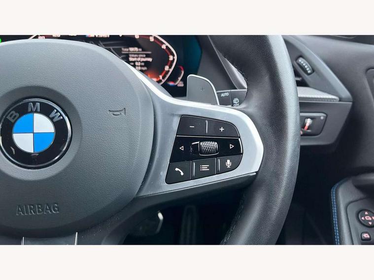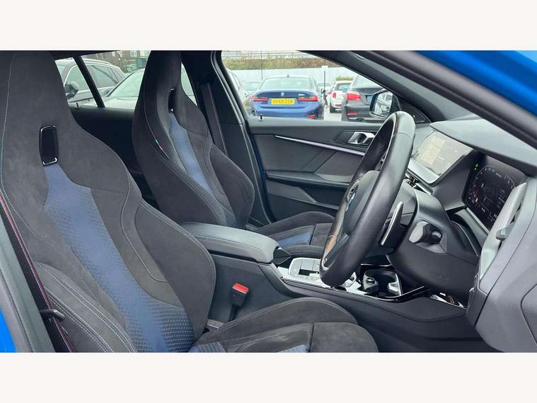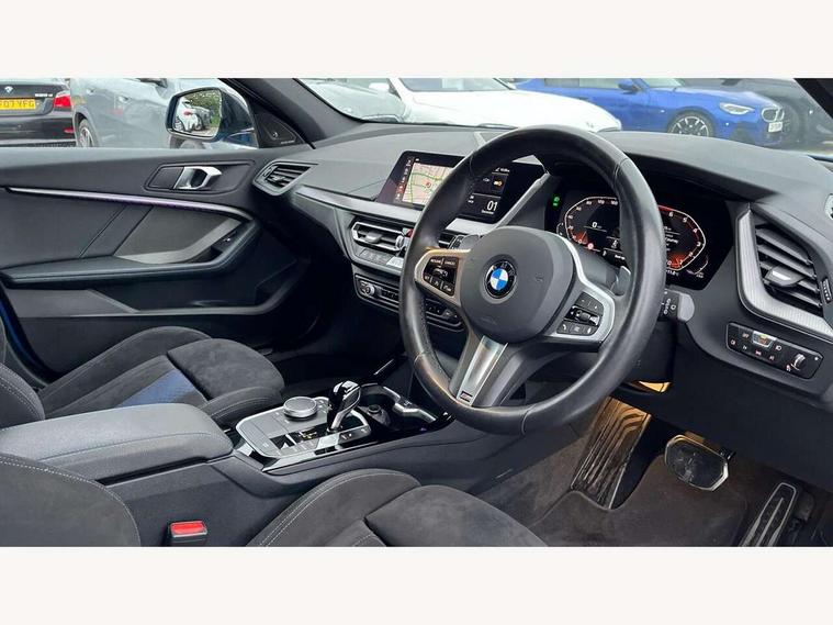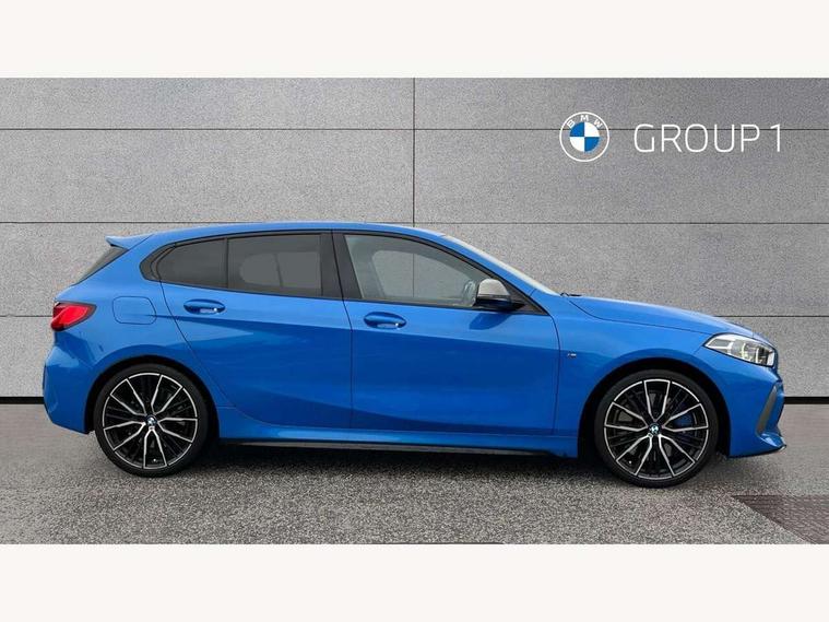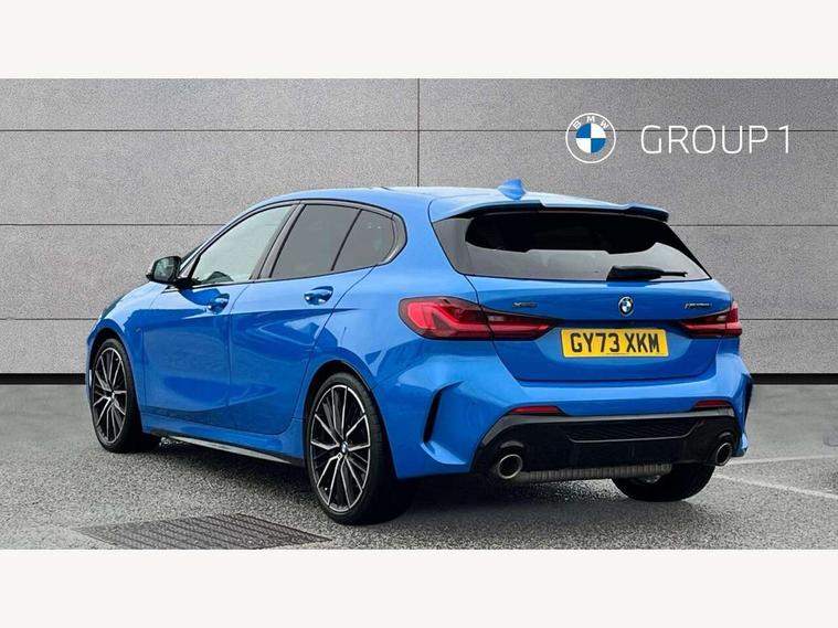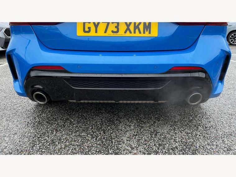 Active guard plus, Attentiveness assist, BMW ConnectedDrive online services, BMW Teleservices, Check Control warning system for monitoring of lights and door/luggage compartment open warning, Cruise control with speed limiter, Eco pro mode, Electric power steering, Electro hydraulically controlled multi-plate clutch transfers drive to rear axle and with power take-off device located on the front differential., Energy efficient operating strategy, Front axle single joint with specific axle kinematics to minimise drive influences on steering + provide increased rigidity agile driving behaviour, Gearshift time display in manual mode, Integrated owners handbook, Lane departure warning system, M Sports steering with M135i xDrive specific settings, Oil sensor for level and grade, On board computer, Optimum shift indicator, Personal Profile, Pull away assistant, Rigidly mounted rear subframe - Multi link construction with separate spring / damper configuration and excellent driving characteristics, Speed limit Info including no-overtaking indicator, Sporty fast gear shifting in sport mode, Aluminium lightweight construction, Anti roll bar front and rear, Balancer shaft, Double VANOS, Drive Performance Control, Eight speed sport automatic transmission with gearshift paddle switches, Electronic differential lock, Electronic selector lever, Engine cover with M performance designation, High precision injection, Larger fuel tank capacity (50 litres), Launch control, M135i specific heavily de-throttled engine intake air guide, M135i specific high-performance cooling package, M135i specific larger turbocharger with integrated divert-air valve, Petrol Particulate Filter, Twin tube gas filled shock absorbers with degressive characteristic curve, VALVETRONIC engine management, Variable, stepless and infinitely adjustable distribution of drive torque between the front and rear axles, xDrive intelligent all wheel drive with M135i specific reinforced components, DAB Digital radio, Auto dimming rear view mirror, Automatic headlight beam throw control, Automatic windscreen wipers and automatic headlight, Body colour door handles, Body colour roof trims, Cerium grey exterior mirror caps, Direction indicator side lights in exterior mirrors, Electrically adjustable exterior mirror with mirror adjustment switch on drivers armrest and aspheric on driver side, convex on passenger side, Exhaust tailpipe, Cerium Grey with bevelled finish - twin, round 100mm, left and right split, Fading support, Folding side mirrors with auto dimming/folding wing mirrors with auto dimming, Follow me home headlights, Front and rear bumper system with replaceable deformation elements, Front and rear electric windows with open and close fingertip control, anti trap facility and comfort closing, Front door sill finishers with M135i designation, Green tinted heat protection glazing, High gloss shadowline window frame, Recess cover mirror frames and B/C pillar embelisher trim, High level third brake light, Integrated front windscreen with washer jets, Kidney grille frame in Cerium Grey with Mesh design, LED daytime running lights, LED eyebrow turn indicators, Lightweight engineering, M logo designation side in cerium grey, M Performance exhaust system with valve control and minimised exhaust back pressure, M Performance specific setup, M Sport spoiler, Matt black air guide grilles, Matt black wheel arch trim, Model designation on electric bootlid includes xDrive designation for M135i xDrive, Nearside reverse light in rear light cluster, Preparation for high beam assistant, Rear fog lights, Rear side wing doors, Rear window wiper, Reinforced crank drive, new pistons and adapted con rods, Shark fin antenna, Trailer stabilisation logic, Visible VIN plate, Welcome lighting, 12V power socket in front centre console with blanking plug, 3 rear seat head restraints, 3 seat bench in 2nd row, 3 spoke sports leather steering wheel with black leather and stitching, pearl chrome decorative finish, specific M Badge, Anthracite headlining, Black boot net with lashing eyes, Cargo function on 2nd seat row, Child seat ISOFIX attachment for two outer rear seats and front passenger seat with anchorage points, Conditioned based service, Driver and front passenger backrest net on rear, Driver and front passenger seat heating, Driver side folding compartment in instrument panel, Folding rear clothes hook, Four grab handles integrated in roof lining, Front and rear door pockets with bottle holders, Front and rear side armrest integrated into door trim, Front armrest, Front M sports seats, Glove compartment, Height adjustable front head restraints, Luggage compartment for bag hooks on left and right, foldable luggage compartment liner and four lashing eyelets, Manual adjust steering wheel, Multi-function controls for steering wheel, Single front passenger seat, Storage compartment in centre console, Storage compartment in luggage compartment, Stowage of the parcel shelf in luggage compartment trim, Sun visors with vanity mirrors and insert tab, Two front centre console cupholders, Two zone automatic air conditioning, Type C two USB ports in rear centre console, Velour floor mats, Additional interior lighting pack - 1 Series M135i, BMW live cockpit professional pack- 1 Series, Connected pack professional - 1 Series, Interior lights pack - 1 Series, M Sport exterior styling aerodynamics pack - 1 Series 135i, 2 tone horn, 3 point seatbelts on all seats, front pyrotechnic belt tensioners, stopper and belt force limiters, rear coded belt buckles, Airbags - Front driver/passenger, front and rear curtain head protection, front side, manual deactivation of front passenger airbag, Anti lock braking system (ABS) with brake assist, BMW emergency call, Brake drying, Braking readiness, Child proof locking system in rear door, City braking function, Comfort modes, Cornering brake control, Crash sensor activating of airbags, Unlocking doors, hazard warning lights, interior light