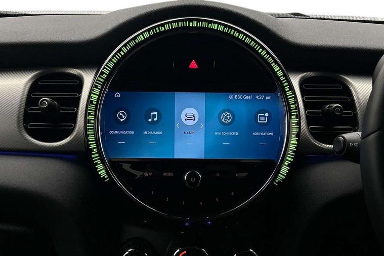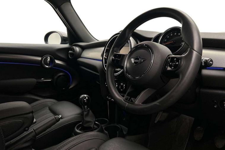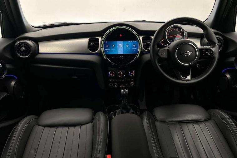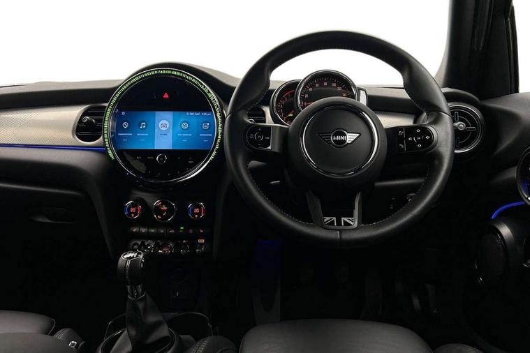 Apple CarPlay, Automatic start/stop function with brake energy recuperation, Compatible mobile phone bluetooth with audio streaming, Cruise control with brake assist, Electro-mechanical speed dependant steering assistance, Flexible car sharing preparation, Instrument cluster, MINI Driving Modes - centre toggle switch to control driving setting (sport, mid and green), Mini E-call, MINI TeleServices, On board computer, Rear park distance control, Service interval indicator, 6 Speed manual transmission including gear change indicator display, Double Vanos system, Fully variable valve control, High precision injection, Performance Control, 8.8" touchscreen with LED ring, FM tuner and DAB digital radio, 3rd brake light, Automatic headlight activation switch, Body colour fuel filler cap, Chrome line exterior - radiator grille bars, tailgate handle, lower front grille grating and rear central fog-light, Dynamic brake lights, Electric front+rear windows, Heated rear window, Heated windscreen washer jets, Metal door sill strips with MINI imprint, Model logo Cooper on right of tailgate, Rain sensor window wipers, Rear fog lights, Rear LED lights with union jack design, Rear side wing doors, Rear window wiper, Side scuttle panel with integrated indicator, Sun/heat protection glass, White indicator lenses, 12V Accessory socket in centre console, 3 seat bench in 2nd row, 4 lashing eyes in luggage compartment, 60/40 split folding rear seat, Anthracite headliner including grab handles and clothes hooks, Carbon black colour line - Knee roll and door armrest, Chrome interior highlights, Chrome line interior - air vents, gear lever base, door handles and speakers in doors, Cupholders, Front and rear head restraints, Front and rear isofix with front passenger airbag deactivation, Front and rear velour floor mats, Glove compartment, Height and length steering column adjustment, Interior lighting with 12 different colours across the dashboard, underneath door bezel with illuminated laser-engraved design on central display, Leatherette gearshift lever and handbrake gaiters, LED reading lights, vanity mirror lights, front foot well light and spotlight on front seats, Mechanical seat adjustment - forward/back & backrest for front seats and driver seat height adjust, MINI yours badge on exterior pillar, Multifunction steering wheel, Single front passenger seat, Storage compartments in doors, Sunvisors with vanity mirrors, Walknappa leather steering wheel with grey seam and MINI Yours badge on Piano Black lower steering wheel spoke, 3 point seatbelts on all five seats, 6 Airbags - front, side, head and seat belt tensioners, Anti-lock braking system (ABS), Child locks on rear doors, DSC - Dynamic Stability Control, Front and rear disc brakes, Hill start assist, Single tone fanfare horn, Tyre pressure monitoring system, Alarm system with tilt sensor, monitoring doors, bonnet interior and tailgate, Electronic vehicle immobiliser, Start/stop toggle with keyless go, Tool kit,