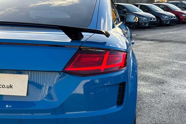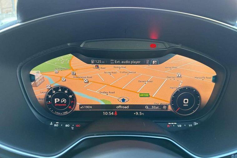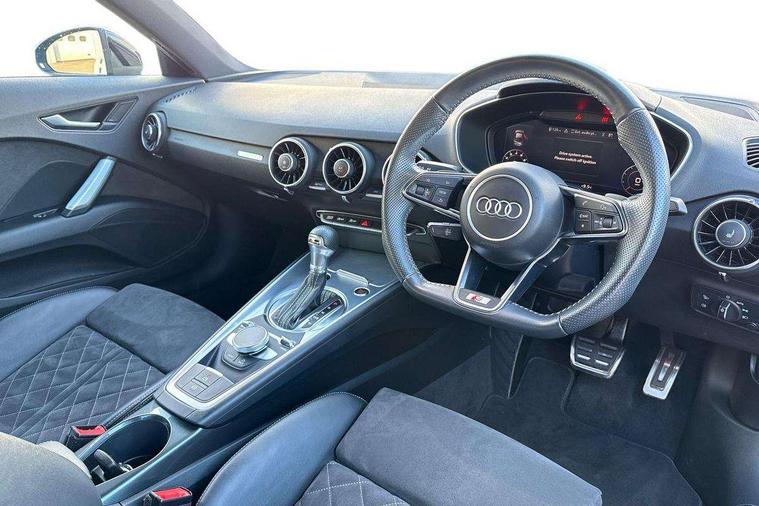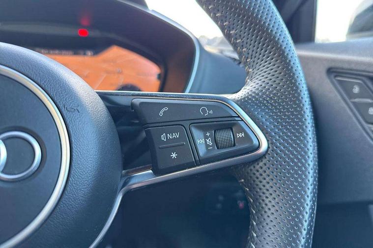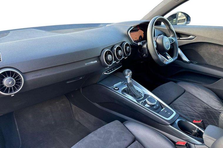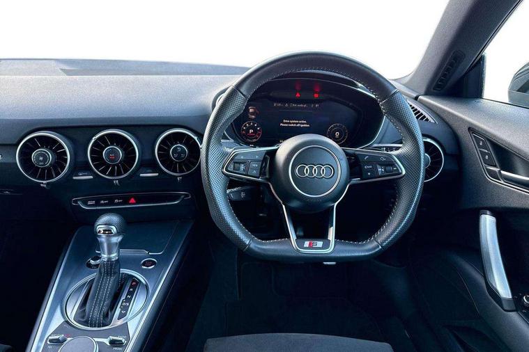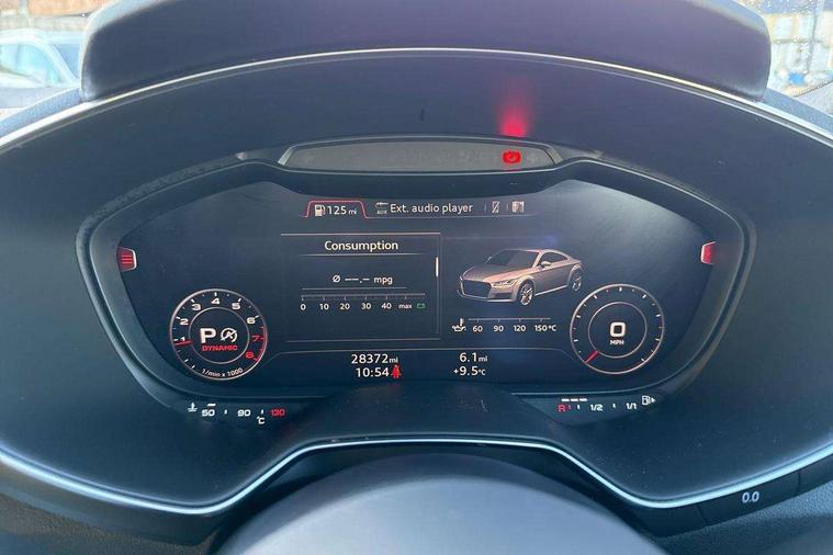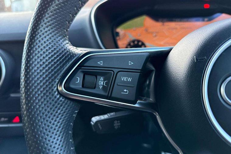 Audi drive select with 4 Pre configured modes, Audi smartphone interface, Audi virtual cockpit - 12.3" high-resolution LCD display with fully customisable instrument cluster, Cruise control + speed limiter, Emergency call service, MMI touch panel, Mobile phone preparation with bluetooth interface, Progressive power assisted steering, Service interval indicator, Start/Stop system with energy recuperation, TP memo, Sports suspension, AM/FM radio, Bluetooth audio streaming, DAB Digital radio, MMI Radio with CD player and SD/XC card slot, 3rd brake light, Auto dimming rear view mirror, Auto headlight range control, Black chrome tailpipe, Dark privacy glass from B-pillar backwards, Electric folding door mirrors, Electric front windows, Electrically adjustable and heated door mirrors with integrated LED side indicators, Front fog lights, Green tinted heat insulating glass, LED daytime running lights, LED headlights with LED rear lights + dynamic rear indicators, Light and rain sensors, Rear boot, Sunband for windscreen, 12V socket, 2 rear seats, 3 spoke flat bottomed high multi-function leather sport steering wheel with gearshift paddles, 4 way electric lumbar support for driver and front passenger, Black headlining, Contrasting silver stitching in steering wheel, Door sill trims, Extended aluminium look with stainless steel pedals, Front centre armrest, Front passenger seat, Front super sports seats, Heated front seats, Height adjustable driver's seat, Height adjustable front head restraints, Height/reach adjust steering wheel, ISOFIX child seat mounting for front passenger seat with airbag deactivation, Manual adjustment of seat height, fore/aft position, seat angle, seat depth and backrest angle, Perforated leather gearknob in black, Rear head restraints, Rear top tether child seat ISOFIX attachment, Split folding rear seat, Black styling pack - TT, Non smoking pack - TT/TT RS, 3 point front seat belts, ABS, ASR traction control, Curtain airbags, Driver and front passenger airbag with front passenger airbag deactivation, EDL traction control, Electromechanical parking brake, ESP, First aid kit, Front side airbags, Head airbags, Hill hold assist, Seatbelt warning, Tyre pressure loss indicator, Warning triangle, Anti theft alarm, Anti theft wheel bolts, Immobiliser, Keyless Go, Remote central locking, Matt brushed aluminium inlays, Tool kit, Tyre repair kit,
