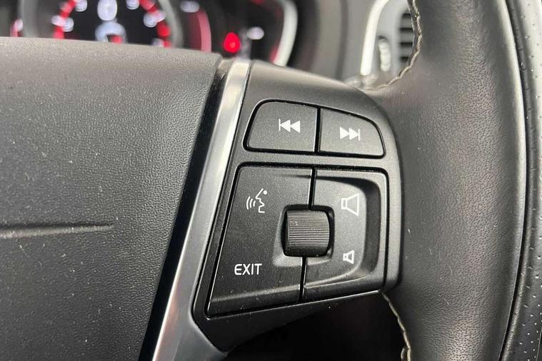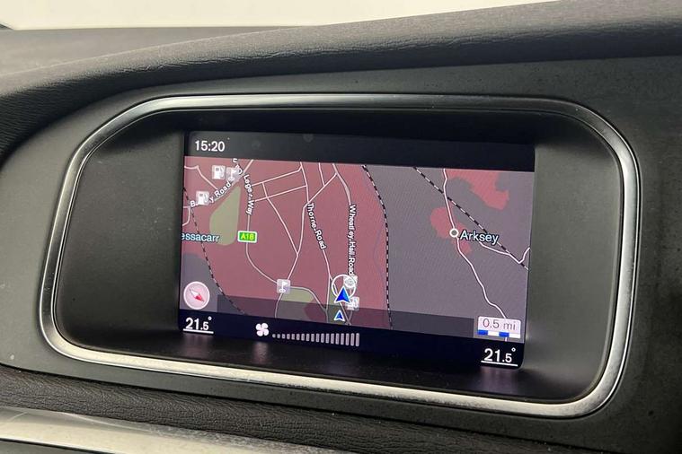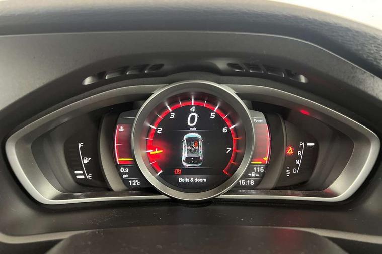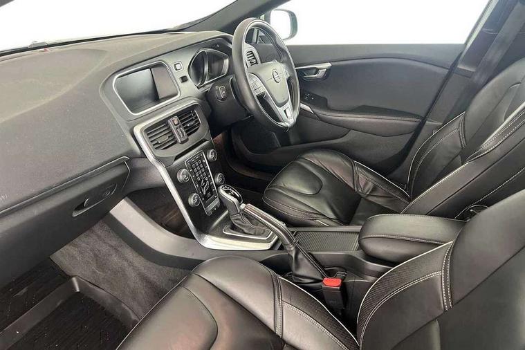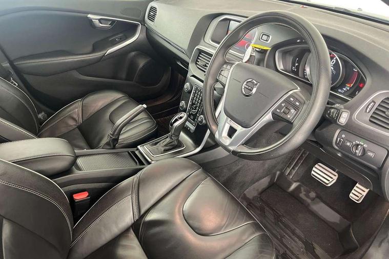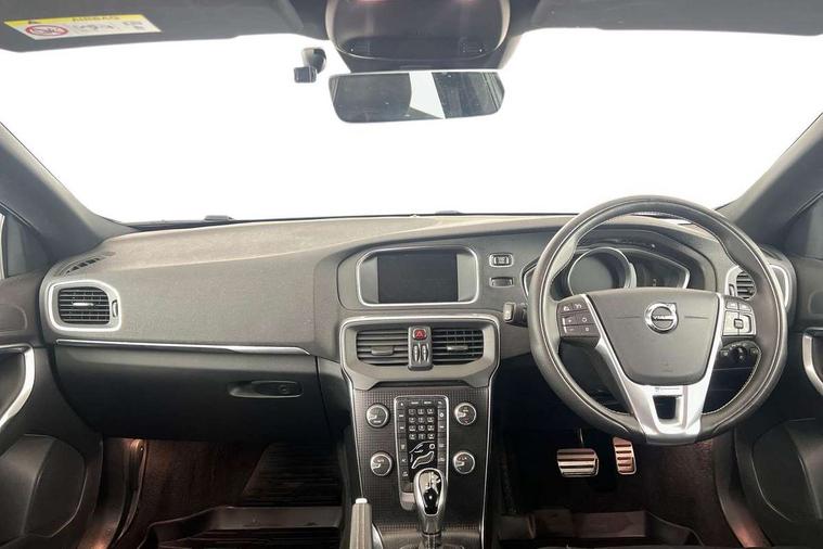 Active TFT crystal driver's instrument display, Front park assist, Information centre, Intelligent driver information system (IDIS), Rear park assist, Rear parking camera, Sensus navigation system, Service interval indicator, Speed limiter, Speed sensitive steering, Dynamic chassis, DAB Digital radio, Steering wheel audio controls, Active bending LED headlights, Adaptive brake lights, Auto dimming rear view mirror, Automatic folding door mirrors with ground lights, Automatic headlights, Body colour bumpers, Body colour door handles, Dark tinted rear side windows, Dual exhaust pipes, Electrically adjustable and heated door mirrors, Frameless rear view mirror, Front and rear electric windows, Headlamp levelling, Headlight cleaning system, High level LED brake light, Home safe and approach lighting, LED daytime running lights, LED Headlights, Matt silver finish door mirrors, R Design front grille, R Design lower front nose, Rain sensor windscreen wipers, Rear diffuser, Rear tailgate emblem, Rear wiper, Roof spoiler, Silk metal window trim surround, Visible VIN plate, 12V socket in front + rear tunnel console, 3 spoke leather steering wheel with chrome trim and R design logo, 5 headrests, 60/40 split folding rear seat, A-pillar parking ticket holder, Adjustable front centre armrest, Charcoal headlining, Door sill tread plates, Electronic climate control (ECC), Flexible load floor and grocery bag holder, Folding front passenger seat with height/lumbar adjust, Footwell lights, Front cupholders, Front door step lamp, Front reading lights, Front sports seats, Front storage box, Height adjustable drivers seat with lumbar support, Height/reach adjustable steering column, Illuminated driver/passenger vanity mirrors, Illuminated gear knob, Isofix attachments on outer rear seats, Load cover, Lockable glovebox, Pollen filter, R Design leather sports upholstery, Rear armrest with cupholder, Rear reading lights, Rear theatre lighting, Sports floor mats, Sports pedals, WHIPS - Whiplash Protection System, 5 x 3 point seatbelts, ABS+EBA, City safety braking system, Drivers knee airbag, DSTC-Dynamic Stability and Traction Control, Dual stage driver's airbag, Dual stage passenger airbag, Front/rear seatbelt pre-tensioners, Hill start assist, Inflatable curtain, Manual rear child locks, Passenger airbag cut-off device, Pedestrian airbag system, Side airbags, Side curtain airbags, Side impact protection, Tyre pressure monitor, Warning triangle, Anti-theft alarm including immobiliser/volume sensor + level sensor, Deadlocking system, Key integrated remote control central locking, Locking wheel nuts, Stealth aluminium trim,