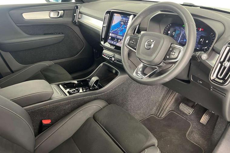 12.3" Progressive Driver Display, 9" centre console portrait touch screen, Adjustable steering wheel force, Android auto (Wired), Apple carplay (wired), Bluetooth handsfree system, Driver alert control, Driver assistance (pilot assist and adaptive cruise control), Driver awareness - Blind spot information system with steer assist, cross traffic alert with autobrake and rear collision warning and mitigation, E-call, Front and rear parking sensors, Front park assist, Google automotive services - Enabled entertainment apps, navigation with google maps, voice recognition with google assistant, Hands free power tailgate, Intelligent speed assistance, Lane keeping aid, Oncoming Lane Mitigation, Speed sensitive steering, Volvo cars services with app - Driving journal, emergency and breakdown call, engine remote start, remote door locking/unlocking and vehicle dashboard, Wireless/Inductive Mobile Phone Charging, Automatic transmission with start/stop and manual change functions, Dynamic chassis, DAB Digital radio, Steering wheel mounted remote controls, Adaptive brake lights with high level LED brake lights, Auto dimming feature for exterior door mirrors, Auto dimming interior mirror, Auto folding and heated power door mirrors, Automatic headlamp levelling, Automatic LED Headlights + Active high beam incorporating daytime running lights, Front aluminium tread plates, Front and rear electric windows, High gloss black front and rear skid plate, High gloss black front bumper deco, High gloss black mesh front grille with high gloss black surround, High gloss black window trim, Home safe and approach lighting, Integrated roof rails in high gloss black, LED front fog lights, Puddle lights, Rain sensor with automatic windscreen wiper activation, Rear side wing doors, Rear wiper, Roof antenna, Roof spoiler, Visible VIN plate, 12V socket in front tunnel console and luggage compartment, 2-Zone electronic climate control with CleanZone air quality system and pollen filter, 3 seat bench in 2nd row, 3 Spoke tailored steering wheel with chrome trim, 60/40 versatile split folding rear seat, Centre console cupholders and storage, Charcoal carpet and floor mats, Charcoal headlining, Connect suede textile/microtech upholstery, Flexible load floor and grocery bag holder, Front headrests, Front seat cushion extensions, Glovebox bag hook, Heated front seats, Height adjustable passenger seat, Height/reach adjustable steering column, High gloss centre tunnel deco, High level illumination - Front door pocket, front side step (under door), tailgate, instrument panel, front door inlay, rear courtesy&reading lights, Integrated waste bin, Isofix attachments on outer rear seats, Load cover, Load protection net, Mid level illumination - Front footwell, luggage & glovebox compartment, front cabin courtesy & reading lights, illuminated vanity mirrors+ticket holder, Multi directional lumbar support for driver and passenger seat, Power driver seat with memory + exterior mirrors memory, Rear armrest with cupholders, Rear headrests, Single front passenger seat, Underfloor luggage compartment storage, Climate pack without heated front seats - XC40, 3x3 point rear seatbelts, City safety with steering support with Pedestrian + cyclist + front collision warning with full auto brake and rear auto brake, Driver and passenger airbags, Drivers knee airbag, Electronic parking brake with auto hold, First aid kit, Front and outer rear seatbelt reminder and pretensioners, Front seats SIPS airbags, Hill descent control - Off-road drive mode, Hill start assist, IC (Inflatable Curtains) - Full Length, Passenger airbag cut-off device, Power child locks on rear doors, Road sign information display, Run off Road Protection, SIPS (Side Impact Protection System), Slippery road and hazard light alert, Stability and Traction Control with Spin control, Engine Drag Control and Corner Traction Control, Tyre pressure monitoring system, Vehicle deceleration control with Anti-lock Brake System, Electronic Brake Distribution and Emergency Brake Assist, Warning triangle, WHIPS whiplash protection system - front, 2 x Key integrated remote control central locking including with deadlocking system and auto open/close windows, Anti-theft alarm including immobiliser/volume sensor + level sensor, Keyless drive includes keyless entry and keyless start, Locking wheel nuts,