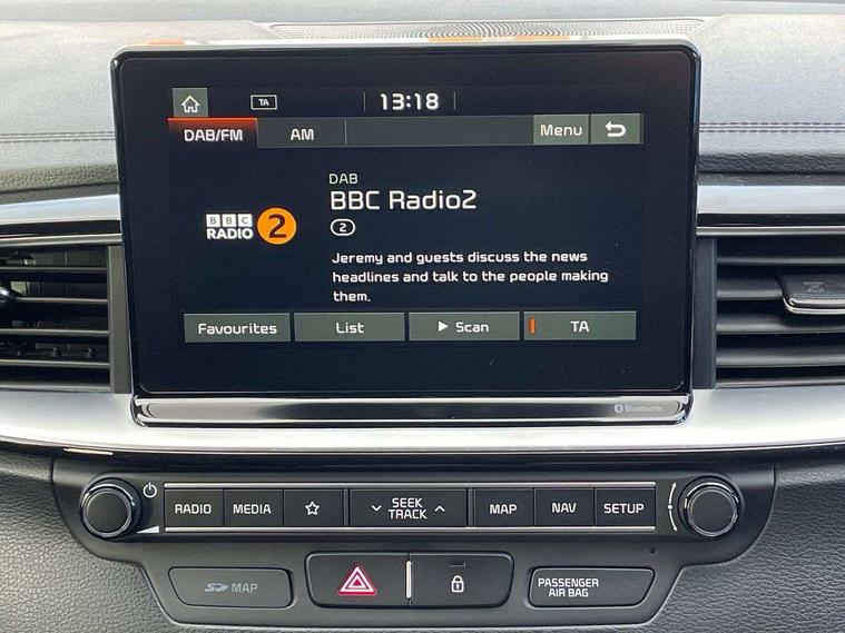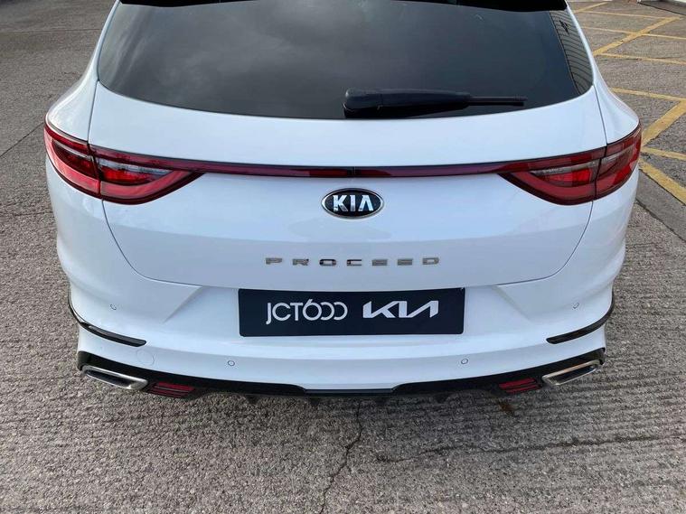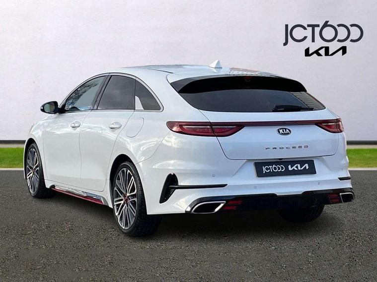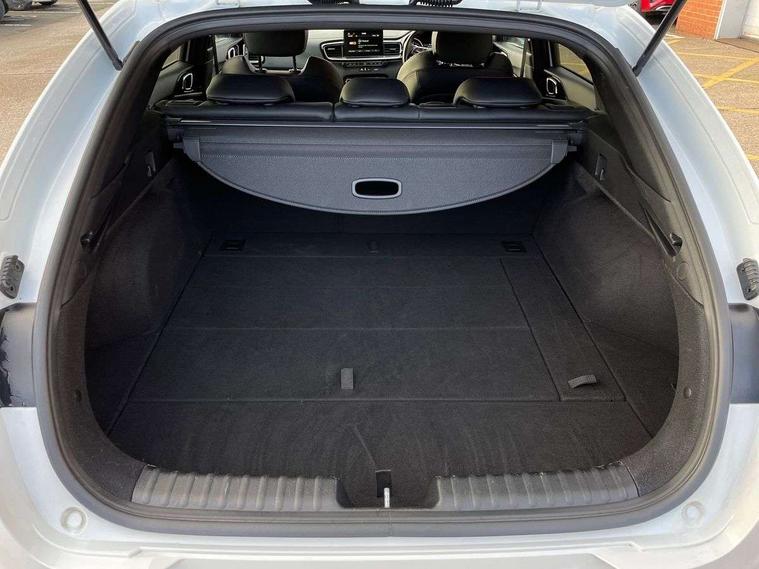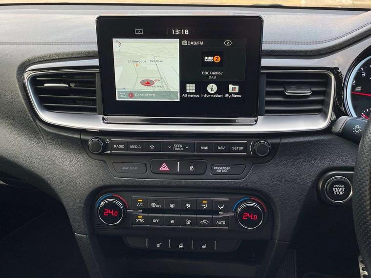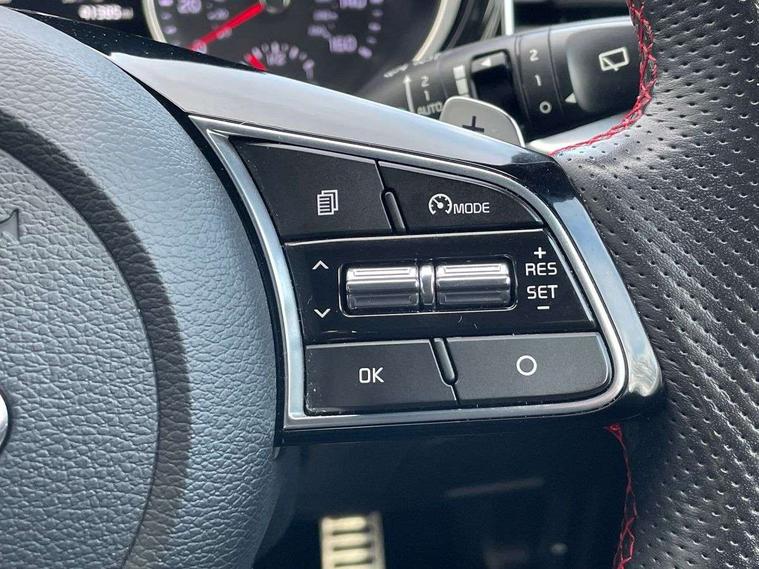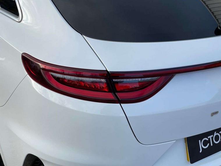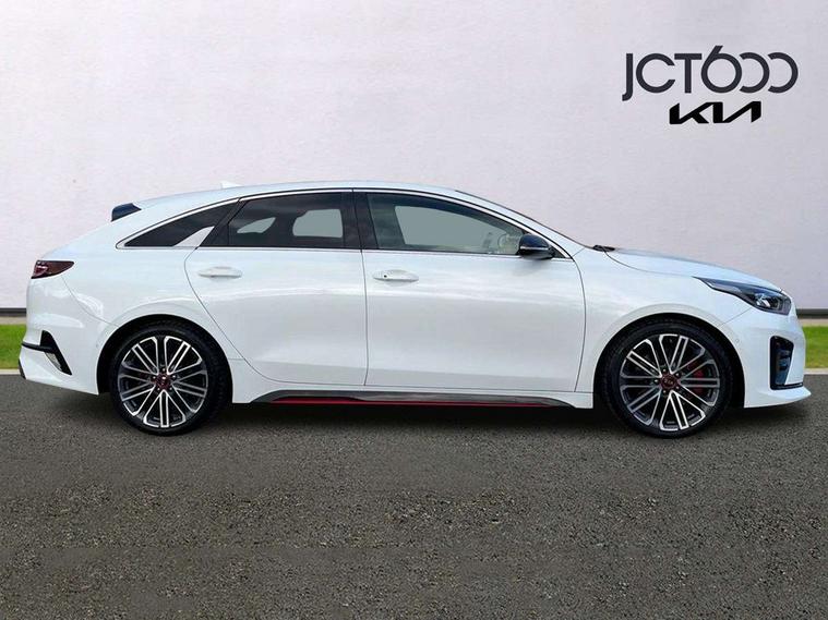 4.2" supervision cluster colour display with GT performance mode, 8" touchscreen satellite navigation with European mapping and traffic messaging channel, Apple car play/Android Auto, Bluetooth with Voice Recognition & Music Streaming, Cruise control + speed limiter, Drive mode selector, Driver attention warning, Emergency stop signalling system, Kia connected services featuring TomTom live, Lane keep assist, Motor driven power steering, Rear parking sensor, Reversing camera with dynamic guide lines, Smart park assist system (SPAS) with parallel/perpendicular/reverse with front/rear parking sensors, Trip computer, Intelligent Stop and Go, 6 speaker audio system, DAB Radio with MP3, Illuminated USB & aux ports, Steering wheel mounted controls, USB & AUX Ports for Connection of a Media Device, USB Fast Charger in Front Centre Console, Air intake with red accent lower lip, All-round Electric Windows with Front Auto Up & Down Function, Auto dimming rear view mirror, Automatic defog system, Automatic headlights, Body colour bumpers, Body colour exterior door handles, Body coloured rear roof spoiler with high gloss black trim, Chrome window surround, Electric adjustable/heated/folding door mirrors with LED Indicators and Kerbside Lights, Exterior front door handle illumination, Front fog lights, Front wiper de-icer, Headlamp levelling, Heated rear window with timer, High beam assistant, High gloss black and chrome with red insert radiator grille, High gloss black door mirrors, High gloss red side sill mouldings, LED Bi-Function headlights, LED daytime running lights, LED High-mounted Brake Light, LED rear fog light, LED rear lights, Privacy glass (rear side windows and rear screen), Projection headlights, Puddle lights, Rain sensing front wipers, Rear bumper with diffuser trim and dual exhaust, Rear wash/wipe, Wide view drivers door mirror, Windscreen Washer Level Warning, 2 x 12V Power sockets (Front centre console), 3 x passenger assist grips, 60/40 split folding rear seat, All-round height adjustable headrests, Black headlining, Centre console storage and sliding armrest, Cupholders in centre console, Cupholders in rear armrest, Dash illumination dimmer switch, Driver & Front Passenger Sunvisors with Vanity Mirror Illumination & Ticket Holder, Driver + front passenger electric lumbar support, Driver's seat height adjuster, Dual Height Luggage Area Floor, Dual zone automatic air conditioning, Faux leather door centre trim with red stitching, Front and rear door storage, Front map light with sunglasses case, Front Passenger Seat Height Adjuster, Front seat and rear pockets, Gear shift indicator, Heated front seats, Heated steering wheel, Illuminated ignition key hole, Interior door lock/unlock function, ISOFIX Child seat top tethers and anchor fixings, Leather D-Cut steering wheel with red stitching, Leather gearshift, Load area cover, Luggage area light, Luggage area parcel shelf, Luggage hooks, Paddle shifter, Part leather/faux suede upholstery, Premium centre console with sliding cupholder cover, Rear Air Ventilation, Rear centre armrest, Rear coat hooks, Satin chrome interior door handles, Stainless steel pedals, Tilt/telescopic adjustable steering wheel, ABS with Electronic Brakeforce Distribution (EBD) and Brake Assist System (BAS), All round 3-point seatbelts, Dual front side airbags, Dual horn, Electric parking brake, Electronic stability control (ESC) and vehicle stability management (VSM), Front passenger airbag deactivation, Height adjustable front seatbelts, Hill start assist control (HAC), Impact sensing auto door unlocking, Rear door child safety locks, Seatbelt reminder warning, Traction control, Twin curtain airbags, Twin front airbags, Tyre pressure monitoring system, Alarm system, Engine Immobiliser & Deadlocks, Engine Start/Stop Button with Smart Entry System, Locking wheel nuts, Speed sensitive auto door locking, Black high gloss front console tray garnish & door trim, Satin Chrome Fascia Trim, 18" Alloy wheels with red centre cap, Tyre mobility system,