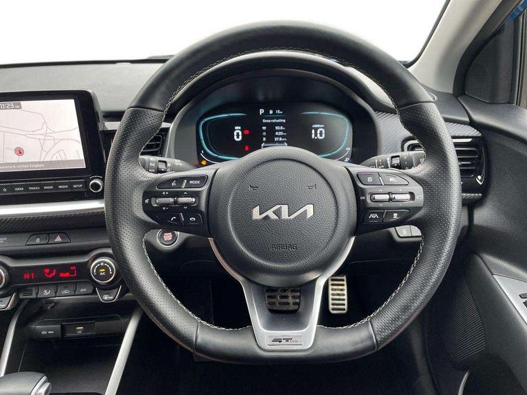 4.2" supervision colour cluster display, 8" touchscreen navigation, Apple car play/Android Auto with voice control, Blind spot collision avoidance assist, Blind spot collision warning, Drive mode selector, Electric power steering, Emergency call service, Emergency stop signalling system, External temperature display, Forward Collision-Avoidance Assist (FCA) - City/Pedestrian/Cyclist/Junction, Front parking sensors, Intelligent speed limit assist, Intelligent speed limit warning, Lane follow assist, Lane keeping assist system (LKAS), Driver attention warning (DAW) and High beam assist (HBA), Rear parking sensor, Reversing camera system, Smart cruise control with stop and go functionality, Speed limiter, Trip computer, Intelligent Stop and Go, Audio system with 6 speakers, Bluetooth with music streaming, Front USB port, Steering wheel mounted controls, All round electric windows with drivers auto up/down function, Auto dimming rear view mirror, Automatic defog system, Automatic headlights control, Black rear roof spoiler with high mounted LED braking light, Black side sill, door garnish and wheel arch trims, Black/body colour bumpers, Body coloured exterior door handles, Chrome side window trim, Electrically adjustable/heated/folding door mirrors with LED indicators, Front and rear silver skid plates, Gloss black door mirrors with matt black lower housing, GT-Line body kit, Headlight levelling device, Heated rear window, High gloss black radiator grille, LED Bi-function projection headlights with static bending, LED daytime running lights, LED front fog lights, LED position light, LED rear combination lights, Privacy glass - Rear windows and tailgate, Rain sensing front wipers, Rear fog lights, Rear side wing doors, Rear wash/wipe, Roof rails, Shark fin antenna, Solar windshield glass, Speed variable front wipers, Tinted glass, Welcome and follow-me home light functionality, Windscreen Washer Level Warning, 12V power point front, 3 seat bench in 2nd row, 60/40 split folding rear seat, Air filter, All-round height adjustable headrests, Alloy pedals, Aluminium pedals, Automatic air conditioning, Centre armrest storage box, Centre console with cupholders, Cloth and artificial leather upholstery, D-Cut perforated leather trimmed steering wheel, Dash illumination dimmer switch, Driver's seat height adjuster, Front and centre cabin lights, Front and rear door map pockets with bottle holder, Front and rear door storage, Gear shift indicator, Glovebox illumination, GT-Line Interior Styling, Heated front seats, Heated steering wheel, ISOFIX Child seat top tethers and anchor fixings outer rear seats, Leather trimmed gearshift, Luggage area light, Luggage area parcel shelf, Luggage net with hooks, Overhead console lamp, Overhead console with sunglasses cases, Passenger front seatback pockets, Passenger seat height adjuster, Rear USB charging port, Satin chrome interior door handles, Single front passenger seat, Sunvisors with vanity mirror illumination (Driver and front passenger), Tilt/telescopic adjustable steering wheel, ABS with Electronic Brakeforce Distribution (EBD) and Brake Assist System (BAS), All round 3-point seatbelts, Electronic stability control (ESC) and vehicle stability management (VSM), Front passenger airbag cut-off switch, Front seatbelt pretensioners + load limiters, Height adjustable front seatbelts, Hill start assist control (HAC), Impact sensing auto door unlocking, Manual child lock in rear doors, Rear airbags, Rear seat Occupancy alert, Seatbelt reminder warning, Twin curtain airbags, Twin front airbags, Twin front side airbags, Tyre pressure monitoring system, Alarm system, Customisable automatic door unlocking, Door deadlocks, Engine immobiliser, Locking wheel nuts, Smart key with engine start/stop button, Speed sensitive auto door locking, Visible vehicle identification number, High gloss black centre fascia, 17" GT-Line alloy wheels, Tyre mobility kit,