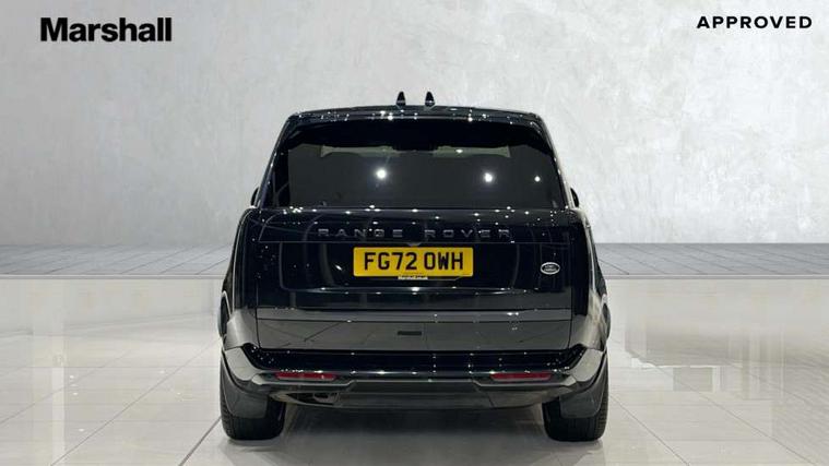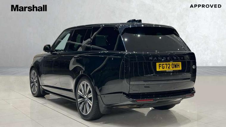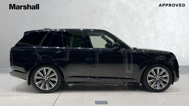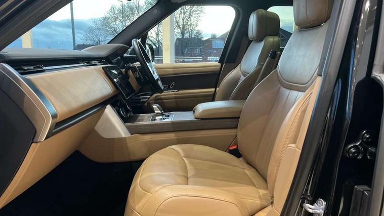 13.1" Touchscreen, 3D surround camera inc frwd traffic detection, vehicle clearance guidance, 3D view, clearsight ground view, manoevure light, 360 parking aid, wade sensing, Adaptive cruise control with steering assist, All Terrain Info Centre, All wheel steering, Android Auto, Apple car play, Blind spot assist, Bluetooth connectivity streaming, Driver condition response, Eco mode, Electric power assisted steering (EPAS), Emergency call service, Front and rear parking aid, Interactive driver display, Lane keep assist, Powered gesture tailgate/boot lid, Rear collision monitor, Rear traffic monitor, Remote, Traffic sign recognition with adaptive speed limiter, Wi-Fi Enabled with data plan, Wireless device charging with phone signal booster, 8 speed automatic transmission, Active damper technology system, Adaptive dynamics, All terrain progress control, All Wheel Drive (AWD), Automatic access height, Electronic active differential with torque vectoring by braking, Electronic air suspension with dynamic response, Terrain Response 2 Auto, Twin speed transfer box, Digital Audio Broadcast radio-DAB, Pivi pro including smart settings, Connected navigation pro, nuance speech, USB socket, Acoustic laminated windscreen, Animated directional indicators, Automatic headlights, Automatic levelling headlights, Centre high mounted stop light, Electric windows with one touch open/close and anti trap, Flush deployable exterior door handles, Front and rear recovery eyes, Front fog lights, Headlamp power wash, Heated rear window, Heated washer jets, LED tail lights, Power fold, auto-dimming, heated door mirrors with approach lights, Rain sensing windscreen wipers, Range rover badge, Rear boot, Rear fog lights, Rear side wing doors, Rear wash/wipe, Side repeater indicators in mirror, Trailer stability assist, Winter wiper park position, 12V power sockets, 3 seat bench in 2nd row, Air quality sensor, Bright metal pedals, Cabin lighting, Customer configurable single point entry, Driver and passenger front seat armrests, Easy boot loading, Ebony Carpet, Front and rear cupholders, Front and rear grab handles, Front head restraints, Gearshift paddles, Heated steering wheel, Hook in load space, Loadspace light, Luggage tie down in loadspace, Multifunction steering wheel, Rear centre armrest, Rear head restraints, Rear ISOFIX, Single front passenger seat, Soft close doors, Twin blade sunvisors with Illuminated vanity mirrors, Upper and lower glovebox, Online pack with data plan - Range Rover, 3x3 point rear seat belts, Anti-lock braking system (ABS), Brake hold function, Cornering brake control (CBC), Customer configurable autolock, DSC - Dynamic Stability Control, Electronic brake force distribution, Electronic parking brake, Electronic traction control, Emergency brake assist, Emergency braking, Front airbags with passenger seat occupant detector, Front side airbags, Hill descent control, Hill launch assist, Low traction launch, Occupant protection assist, Power operated child locks, Roll stability control, Tyre pressure monitoring system (TPMS), Immobiliser, Intrusion sensor and alarm, Keyless entry, Locking wheel nuts, Remote central locking, Noble chrome controls,