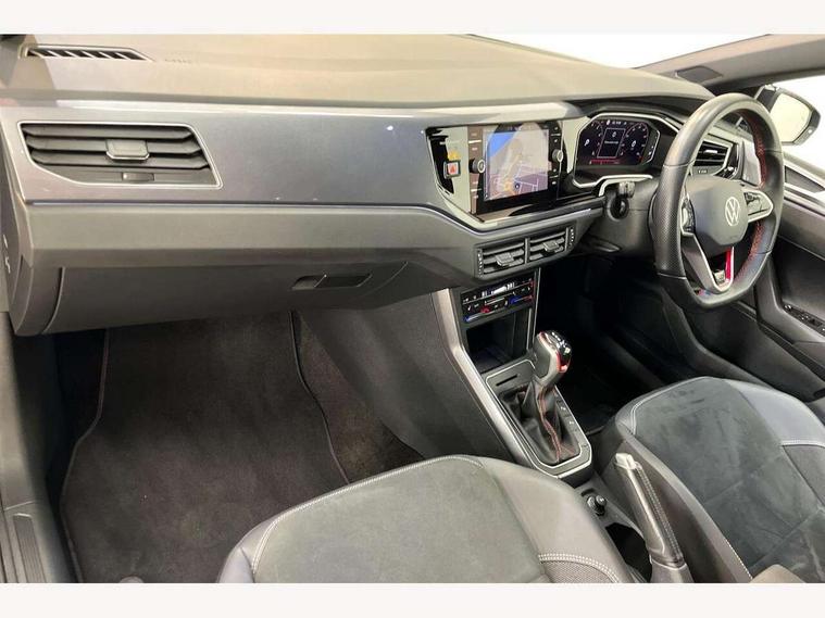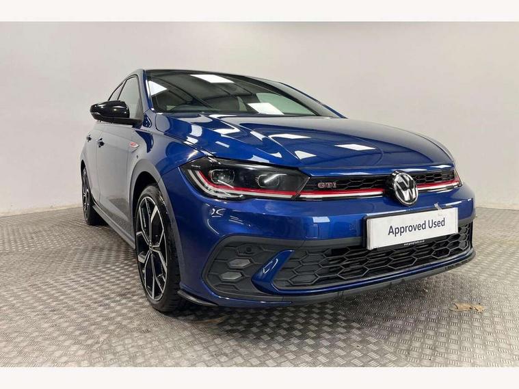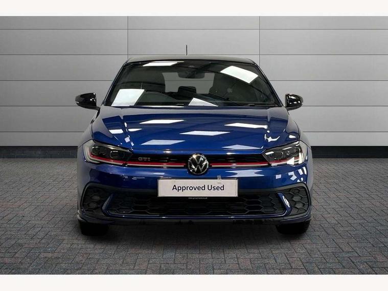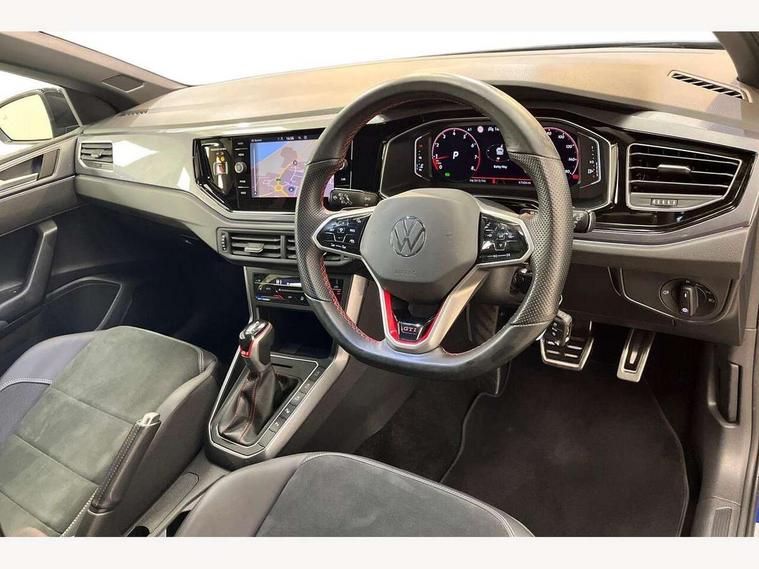 Adaptive cruise control with follow-to-stop and speed limiter, Bluetooth mobile phone interface, Digital Cockpit Pro with 10.25" Display, Driver alert system, Dynamic road sign display, Eco mode, Emergency call service, Power assisted speed sensitive steering, Preparation for We connect and We connect plus, Speedo and rev counter, electronic odometer, trip, service interval display and fuel gauge, Travel Assist - Lane keeping system and traffic jam assist, Travel assist including emergency assist, Trip computer, Warning signal and warning light for front and rear seatbelts not fastened, Washer fluid level indicator, Wireless app connect, Adaptive chassis control, Front wheel drive, Heavy duty rear axle, Rear shock absorpion sports version, Sports select suspension lowered by 15mm, Start-stop system with battery regeneration (recuperation - energy recovery during braking), DAB Digital radio, Diversity antenna for FM reception, Front and rear 6 speakers, Body colour bumpers, Body colour door handles, Electric front windows, Front scuff plates in aluminium with GTI logo, Heat insulating darkened glass in side and rear windows, Heat insulating glass windscreen, Power folding adjustable/heated exterior mirrors and front passenger exterior mirror lowering function, Rear electric windows, Rear fog light, Rear side wing doors, Rear windscreen washer and wiper with interval delay, Sport bumpers with air intakes with honeycomb structure, Third brake light, Twin chrome exhaust tailpipes, 12V power socket in centre console, 2 USB-C ports in the front, 2 USB-C charging sockets on the center console in the rear, 3 rear head restraints, 60/40 split folding rear seat and rear seat bench not split, Air care climatronic air conditoning system with active combination filter and 2-zone temperature control, Black roof lining, Ceramique headliner, Chrome plated radiator grille inserts, air vent surrounds and light switch surrounds, Door and side trim panel, Driver and front passenger seat height adjustment, Driver/passenger sunvisors with illuminated vanity mirrors, Front + rear carpet mats, Front centre armrest, Front footwell illumination, Front seat backrest storage pockets, GTI sports gearshift knob in aluminium leather, Handbrake lever handle in leather, Isofix child seat preparation easy-fit (for two outer rear seats, and front passenger seat) compatible with I-size, LED interior light with switch off delay and dimmer, 2 reading lights front and rear, Luggage compartment cover, Luggage compartment floor, Luggage compartment lighting, Single front passenger seat, Stainless steel pedals, Standard pedal cluster, Three spoke leather wrapped multifunction sports steering wheel with shifting paddles, IQ LED matrix headlights pack - Polo, Light and sight pack - Polo GTI, Sports suspension pack - Polo, 3 point height adj front seatbelts + pretensioners, 3x3 point rear seatbelts, ABS, Driver and front passenger airbag with front passenger airbag deactivation, Drivers and front passengers safety optimised head restraints, ESC (Electronic stability control) + EDL (Electronic Differntial lock) and ASR (Traction control), Extended and predictive pedestrian/ cyclist protection, Front and rear disc brakes with red brake calipers, Front curtain and side airbags with center airbag, Hill hold control, Manual child lock in rear doors, Two tone horn, Tyre pressure loss indicator, Alarm with interior protection, Anti-theft alarm system with interior monitoring, backup horn, and towing protection, Anti-theft wheel bolts, Electronic engine immobiliser, Chrome applications on rotary light, mirror adjustment, window regulator switches, outlet with frame in black, Low rolling resistance tyres,