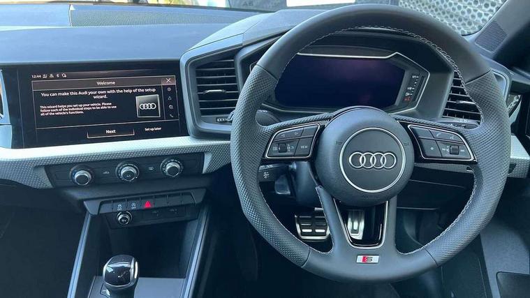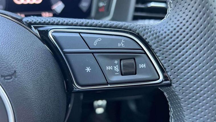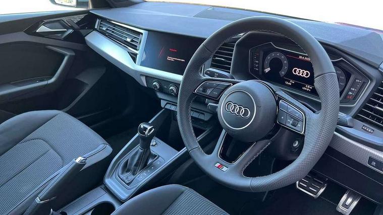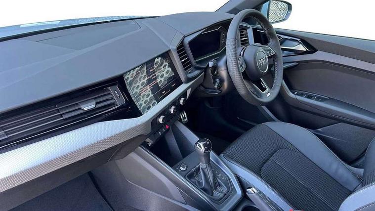 10.25" Digital instrument cluster display classis style instrument dials + speed, odometer, time, outside temperature, telephone menu + fuel level warning, Advanced driver attention and drowsiness monitor, Audi connect emergency call and service, Audi remote connect and control, Audi smartphone interface, Bluetooth interface, Camera based traffic sign recognition, Cruise control, Driver's information system, Electromechanical power steering, Lane departure warning system, Rear parking sensor, Service interval indicator, Speed limiter, Start stop system with recuperation, Voice control system, Washer fluid level indicator, Sports suspension, 2 x USB type C connection points, 6 loudspeakers, DAB Digital radio, MMI radio plus with 10.1" colour MMI display screen and MMI touch, Auto dimming rear view mirror, Body coloured door mirrors, Door sill trims with aluminium inlays and S line logo in front, Electric front and rear windows, Electrically adjustable, heated, folding door mirrors with integrated LED side indicator, Front side air inlets in grained matt black and C frame in anthracite black, Headlight cleaning system, Heat insulating glass windscreen and side windows, Heated rear windscreen, High level LED brake light, LED daytime running lights, LED headlights with range control LED rear lights + dynamic rear indicators, Privacy glass, Radiator grille and rear diffuser in matt anthracite black, Radiator protective grille frame in matt aluminium silver, Rain and light sensors, Rear fog lights, Rear side wing doors, Rear wiper, S line badges on front wings, Side front spoiler lips in grained matt black, 12V socket in centre console with two cup holders, 3 rear seats with headrests, 3 seat bench in 2nd row, 3 spoke leather multi-function plus steering wheel features S badging and grips in perforated leather with contrast stitching, 40:60 Split folding rear seat or fully collapsed, Black cloth headlining, Front and rear velour black floor mats with contrast stitching in fine silver, Front head restraints, Front passenger seat, Height and reach adjustable steering wheel, Interior lighting includes roof module, front and rear reading lights and right luggage compartment lighting, ISOFIX child seat mounting for front passenger and outer rear seats including top tether attachment point of outer rear seats, Leather gear knob with aluminium trim, Leather handbrake grip, Manual air conditioning, Manual height adjustable for driver and front passenger seat, Manually adjustable lumbar support in front seats, Stainless steel pedals, Ambient lighting package - A1, Luggage compartment pack - A1, S line exterior styling pack - A1 Sportback, 3x3 point rear seatbelts, Audi pre-sense front with pedestrain and cyclist recognition, Brake assist function, Driver and front passenger airbag with front side and head airbags, Electronic Stability Control including ABS, EBD, ASR and EDL, Front passenger airbag deactivation switch, Hill hold assist, Manual rear child locks, Seatbelt height adjustment for front seats, Seatbelt monitoring, Tyre pressure loss indicator, Warning triangle and first aid kit, Anti theft alarm, Anti theft wheel bolts, Immobiliser, Remote control key with safelock, Aluminium trim for control switches, air vents and digital instrument cluster, Black dashboard, Silver grey inlays polygon structure in diamond paint finish, Structured grey accent surfaces insert of air vents, interior door handle recesses and centre console in quartz paint finish,
