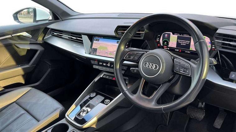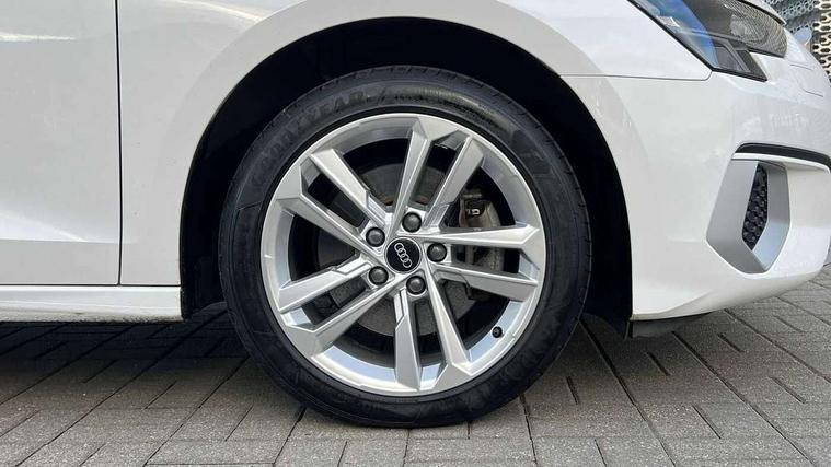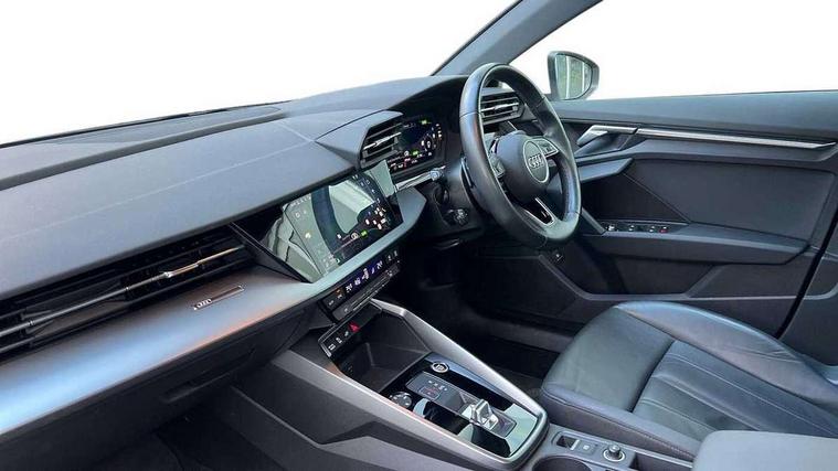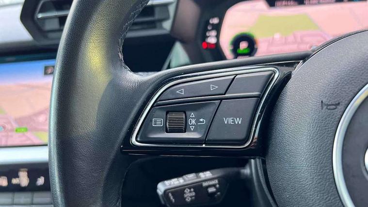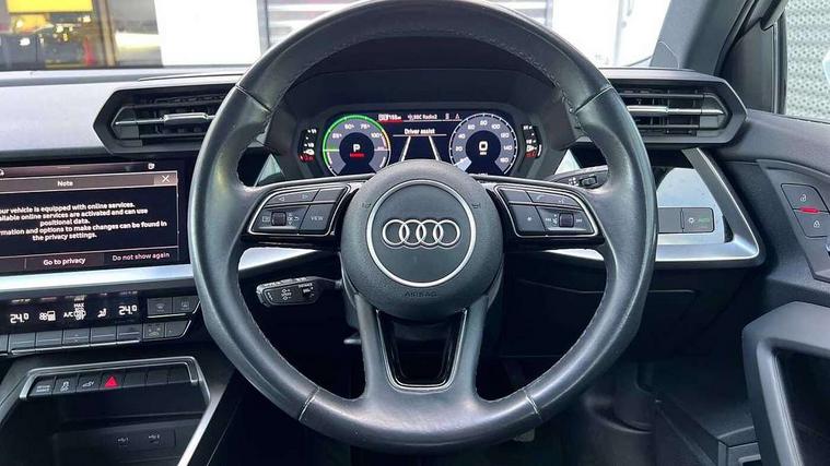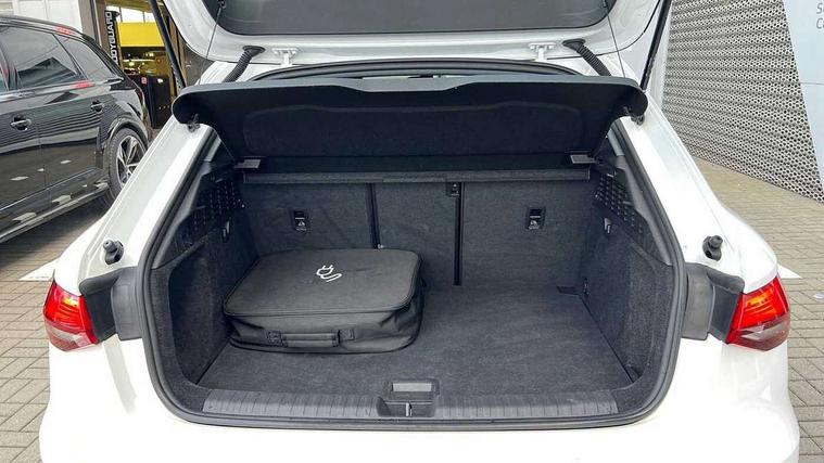 Audi drive select (Auto, Comfort, Dynamic, Efficiency and Individual), Audi smartphone interface, Audi Virtual Cockpit - 10.25" digital and colour instrument cluster, Automatic start/stop system with recuperation, Bluetooth interface, Collision avoidance assistant, e-Call (emergency call), Electromechanical power speed sensitive steering, Lane departure warning system, MMI Navigation Plus with high resolution 10.1" colour touch screen display, Service indicator, Trip computer, Voice control system with natural language interaction, 3 pin 10 amp domestic charging cable, 3.6 kw On-board charger, Standard suspension, Type 2 mode 3 32 amp charging cable, Type 2 socket for AC charging, 2xUSB-C connection with data and charging functions, 6 passive loudspeakers, DAB Digital radio, 3rd brake light, Acoustic glass windscreen, Aluminium window trim, Auto dimming frameless rear view mirror, Body colour exterior mirrors, Body colour roof spoiler, Electrically adjustable/heated/folding/dimming door mirrors with kerb view includes integrated LED indications + kerb view function for passenger side, Front electric windows, LED daytime running lights, LED headlights and halogen rear lights, Light and rain sensors, Rear electric windows, Rear side wing doors, Rear window, rear door windows and rear side windows in clear glass, Rear wiper, 12V socket and storage compartment in front centre console, 3 seat bench in 2nd row, 40/20/40 split folding rear seat bench with cupholder, Dual zone electronic climate control, Front and rear centre armrest, Front and rear headrests, Front door sill trims with aluminium inlay, Front/rear floor mats, Height and reach adjustable steering wheel, Interior lighting - Front and rear roof module including reading lights, glove compartment light and right hand side, Luggage compartment floor covering, Manual boot compartment lid, Manually adjustable front seats, Seat side bolsters, Single front passenger seat, Steel grey cloth headlining, Tool kit, Twin leather upholstery, Aluminium interior elements pack - A3 Sportback, Sport styling pack - A3 Sportback, 3x3 point rear seat belts, Audi pre sense front, Driver and front passenger airbag with passenger airbag deactivation, Electronic Stabilisation Control (ESC) including ABS, ASR and EDL, First aid kit with warning triangle and 2 safety vests, Front side airbags with head airbags and interaction airbag, Pre-sense front with pedestrian and cyclist detection, Seatbelt monitoring, Tyre pressure loss indicator, Anti theft alarm, Anti-theft wheel bolts, Immobiliser, Manual child locks, Remote control central locking, Inlays with silk effect paint in platinum grey, Tyre repair kit,