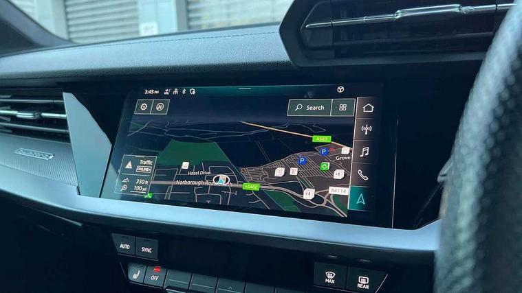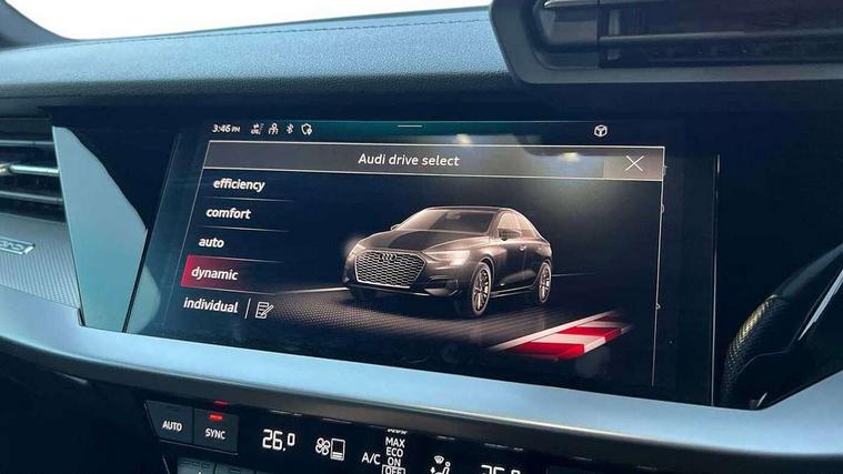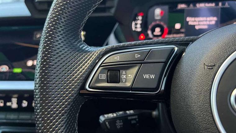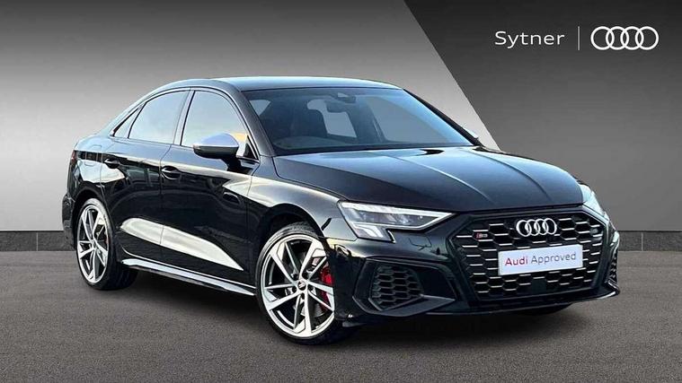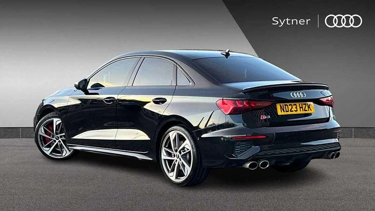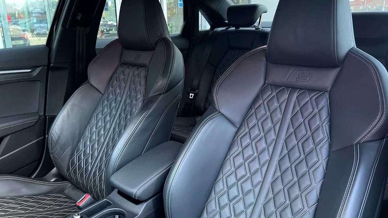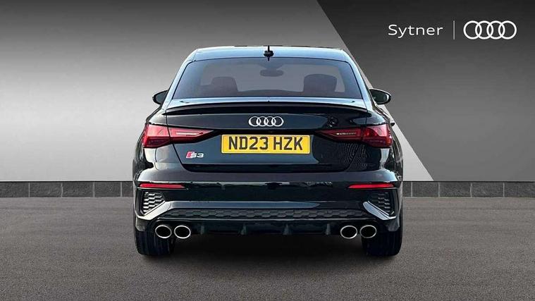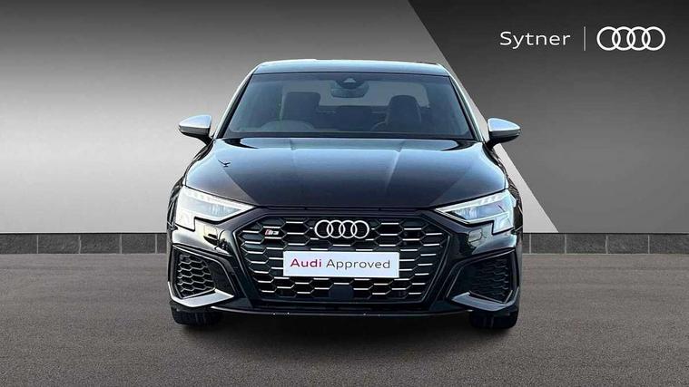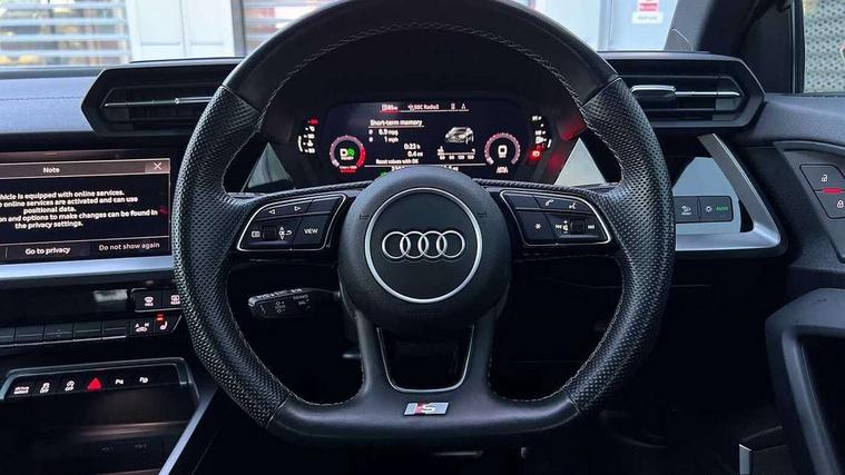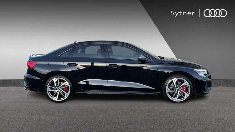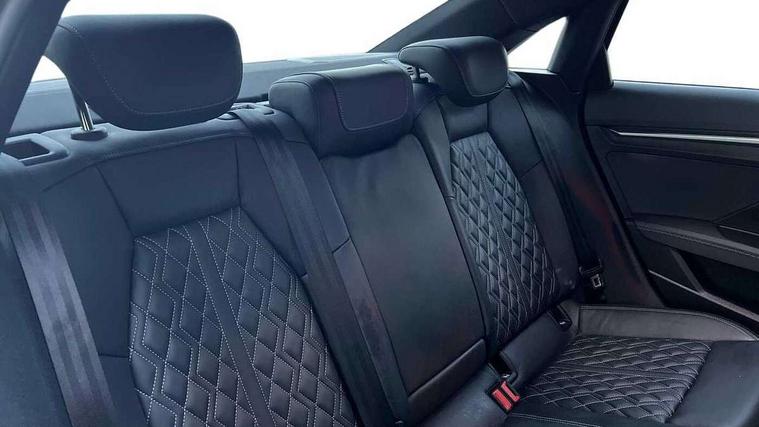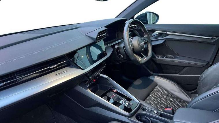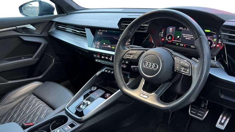 Audi connect emergency call and service, Audi drive select (Auto, Comfort, Dynamic, Efficiency and Individual), Audi smartphone interface, Audi Virtual Cockpit - 10.25" digital and colour instrument cluster, Automatic start/stop system with recuperation, Bluetooth interface, Collision avoidance assistant, Lane departure warning system, MMI Navigation Plus with high resolution 10.1" colour touch screen display, Progressive steering, Service indicator, Voice control system with natural language interaction, Quattro permanent all wheel drive, S sport suspension with spring damper adjustment and lowering by 15mm, 2x USB Type C ports (for charging and data transfer), 6 passive loudspeakers, CD player, DAB Digital radio, 3rd brake light, Acoustic glass windscreen, Audi Beam uses LEDs to project the Audi logo onto the ground as you exit your S3, Auto dimming frameless rear view mirror, Dual branch oval twin tailpipes in chrome plated finish, Electrically adjustable/heated/folding/dimming door mirrors with kerb view includes integrated LED indications + kerb view function for passenger side, Exterior mirror with aluminium look housing, Front electric windows, Headlight washers, Illuminated door sills with aluminium inserts at the front with S logo, LED daytime running lights, LED headlights with LED rear lights and dynamic rear indicators, Light and rain sensors, Model and engine designation badges at rear, Privacy glass - dark tinted rear window, rear door and side windows, Rear boot, Rear electric windows, Rear side wing doors, 12V socket and storage compartment in front centre console, 3 seat bench in 2nd row, 40/20/40 split folding rear seat bench with cupholder, Black cloth headlining, Dual zone electronic climate control, Fine Nappa leather upholstery with front sports seats S embossed logo, Front and rear centre armrest in leather, Front and rear headrests, Front/rear floor mats, Heated front seats, Height and reach adjustable steering wheel, Illuminated vanity mirror, Interior lighting - glove compartment light and right hand side, Luggage compartment floor covering, Manual boot compartment lid, Single front passenger seat, Stainless steel pedals and front footrest in black, Body styling design pack - S3, LED interior lighting pack - A3 Saloon, Storage pack - A3/S3 Saloon, 3x3 point rear seat belts, Driver and front passenger airbag with passenger airbag deactivation, Electronic Stabilisation Control (ESC) including ABS, ASR and EDL, First aid kit with warning triangle and 2 safety vests, Front side airbags with head airbags and interaction airbag, Hill hold assist, Pre-sense front with pedestrian and cyclist detection, Seatbelt monitoring, Tyre pressure loss indicator, Anti theft alarm, Anti-theft wheel bolts, Electronically operated child locks, Immobiliser, Remote control central locking, Aluminium air vent surrounds, Aluminium trim elements, Dark spectrum aluminium inlays, accent surfaces in the dashboard and centre console in platinum grey silk effect paint finish,