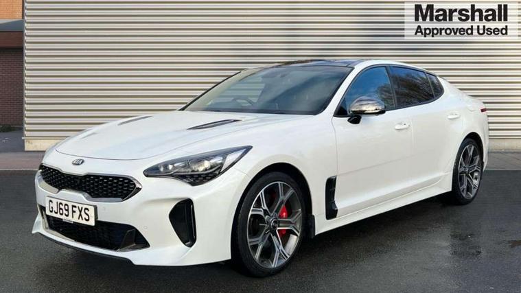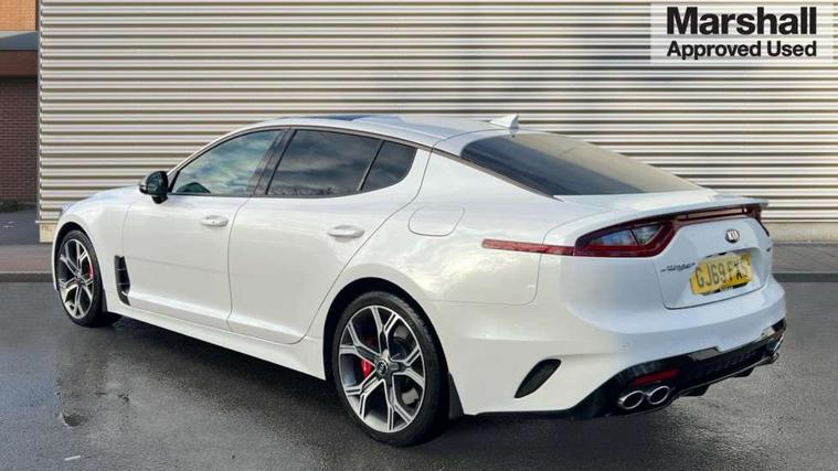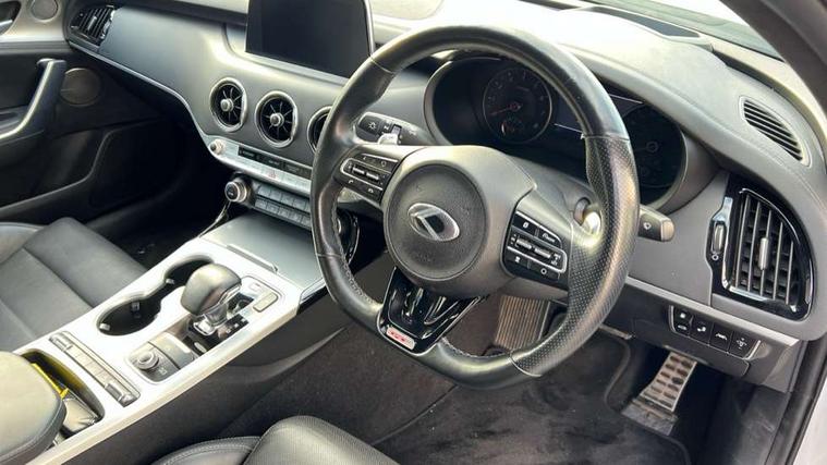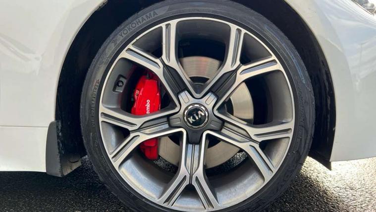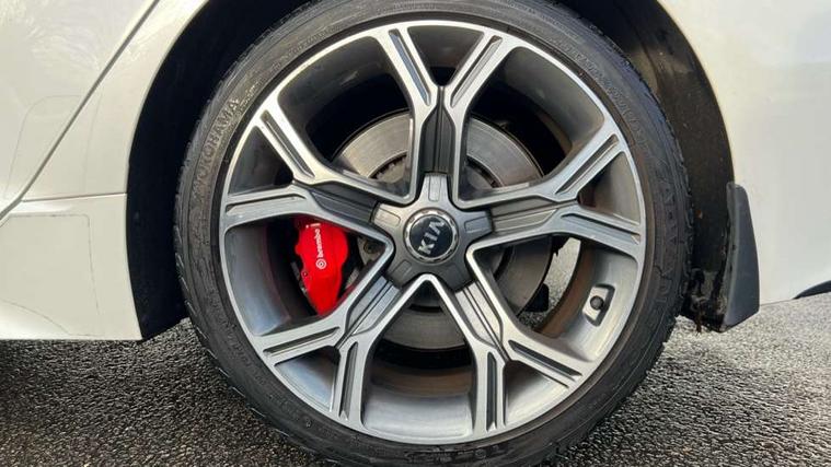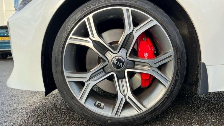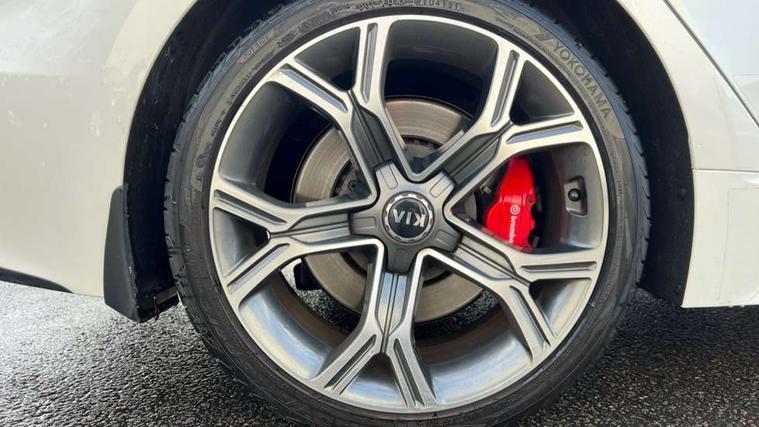 8" touch screen sat nav with TMC, Advanced smart cruise control & speed limiter, Apple car play/Android Auto, Around View Monitor, Blind spot monitoring with rear cross traffic alert, Bluetooth audio streaming with voice recognition, Digital clock, Drive mode selector, Driver attention warning, Electric power steering, Emergency stop signalling system, European mapping upgrade, External temperature gauge, Forward Collision-Avoidance Assist (FCA) - City/Pedestrian, Front and rear parking sensors, Gear selection indicator, Head up Display, Kia connected services, Lane keep assist, Low washer fluid warning light, Memory for cluster display, Memory for Head up Display, One touch facility for sunroof, Power tailgate, Rear parking sensor, Reversing Camera System (integrated into Sat Nav Screen), Roll over sensor, Speed limit information function (SLIF), Supervision cluster with 7" TFT display, Trip computer, Wireless Smartphone charger, Electronic suspension control, Intelligent Stop and Go, Limited slip differential, DAB Radio with MP3, Harman/Kardon Premium sound system with 15 Speakers + subwoofer and amplifier, Rear USB port, Steering wheel mounted controls, USB and auxiliary socket, Auto dimming exterior rear view mirror, Auto dimming rear view mirror, Automatic headlight levelling, Automatic headlights, Black beltline mouldings, Body colour bumpers, Body colour door handles, Body colour side sill mouldings, Chrome door mirrors, Chrome roof line trim, Dark chrome grille surround, Driver's door mirror memory, Driver's side wide angle mirror, Dynamic cornering light, Electric adjustable/heated/folding door mirrors, Exterior grab door handles, Front and rear electric windows, Front drivers side windows/one touch up/down, Front fog lights, Heated rear window, High beam assist, LED daytime running lights, LED Headlights, LED indicators in door mirrors, LED rear lights, Metallic effect stamped grille, Privacy glass, Puddle lights, Quad tailpipes, Rain sensing front wipers, Rear wash/wipe, Shark fin antenna, Tinted glass, UV-reducing solar glass, Visible VIN plate, Welcome home function, Windscreen wiper de-icer, 12V power points in front + rear centre consoles, 3 x passenger assist grips, 4 way electrically adjustable lumbar support for drivers seat aircell, 4 way electrically adjustable lumbar support for front passenger seat, 60/40 split/folding 2nd row of seats, 8 way electric adjustable drivers seat, 8 way electrically adjustable passenger seat with height, reach, till and backrest, Aluminium pedals, Centre cabin LED lights, Centre console storage box, Cupholders in centre console, Door storage trays, Driver seat memory function, Driver/passenger sunvisors with illuminated vanity mirrors, Dual zone automatic air conditioning, Electric tilt/telescopic steering wheel, Extended seat cushion - Driver, Front door courtesy lamps, Front seat and rear pockets, Front/rear centre armrests, Gearshift paddles, Glovebox illumination, Heated front seats, Heated outer rear seats, Heated steering wheel, Height adjustable headrests, ISOFIX top tethers and lower anchor points, Leather and chrome trimmed gearshift, Leather trimmed door armrests, Leather trimmed steering wheel, LED interior illumination, LED map reading lights, Luggage area lamp, Luggage compartment cover, Luggage net with hooks, Nappa leather upholstery, Rear armrests with cupholder, Rear coat hooks, Reclining/sliding front seat, Satin chrome interior door handles, Side bolster support adjustment for driver seat, Stainless Steel Scuff Plates, Suede cloth headlining, Ventilated front seats, Ventilation ducts to rear compartment, 3 point seatbelts on all seats, ABS, Active bonnet, Automatic unlocking of doors in case of impact, Autonomous emergency braking, Brembo brake callipers, Brembo braking system, Curtain airbags, Driver/Front Passenger airbags, Drivers knee airbag, Electronic parking brake, Electronic stability control, Fasten seatbelt reminder, Front passenger airbag deactivation, Height adjustable front seatbelts, Hill start assist control (HAC), Rear door child safety locks, Traction control, Twin front and side airbags, Tyre pressure monitoring system, Alarm system, Deadlocks, Immobiliser, Locking wheel nuts, Smart key entry system, Speed sensitive auto door locking, Aluminium finish to centre console, Leather dashboard, 19" Alloy wheels, Tyre mobility system,