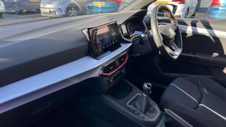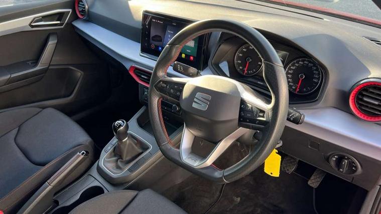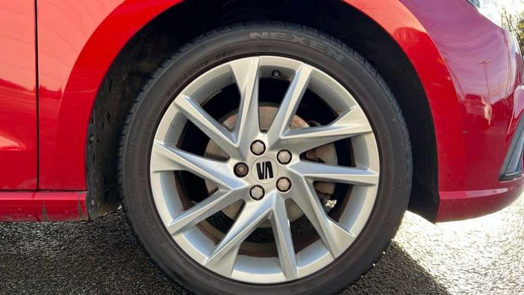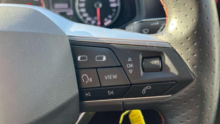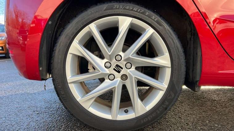 'Lights On' Reminder warning buzzer, 9.2" touchscreen navigation system with type C USB socket, Voice control and DAB/AM/FM radio, Auto start and stop system, Bluetooth audio streaming with handsfree system, Digital clock, E-call, Full link smartphone integration with mirror link, wireless apple carplay, Google android auto + USB Type C cable for apple and android devices, Lane assist, Low fuel warning light, Outside temperature gauge, Power Steering, Seat connect with safety, service, remote and online, SEAT drive profiles and ECO function, SEAT logo boot release, Speed limiter, Trip computer, Sports suspension, Auxiliary input socket, Radio/MP3 player, SD card slot, Steering wheel mounted controls, Anti theft roof antenna, Auto dimming rear view mirror, Automatic rain sensing wipers, Black door mirrors, Body colour bumpers, Body colour door handles, Brilliant black window surrounds, Dark tinted rear windows, Electric adjustable/heated/folding door mirrors, Electric front windows, Electric headlight adjustment, Electric rear windows, Front/rear fog lights, FULL LED automatic headlights with dynamic headlight range control, coming and leaving home, LED daytime running lights, LED tail lights, Rear roof spoiler with FR twin exhausts, Rear side wing doors, Rear wiper, Third brake light, 3 seat bench in 2nd row, 60/40 split folding rear seat, Ambient interior lighting, Chrome detailing and black headlining, Cloth upholstery, Dual zone climate control with combination filter, Front courtesy lights, Front cupholders x 2, Front reading lights, Gear shift indicator, Glovebox, Height adjustable front and rear headrests (five), Height adjustable front seats, Height/reach adjust steering wheel, Illuminated air vent surrounds, Illuminated boot, Instrument lighting with brightness control, Isofix, Leather multifunction flat bottomed sports steering wheel, Passenger sunvisor, Single front passenger seat, Sports seats, Sunvisors with mirror and driver side card holder, 3 point seatbelts on all 3 rear seats, ABS, Active front headrests, Child locks on rear doors, Electronic stability control, Energy recovery system, Front assist forward collision warning and autonomous emergency braking, Front driver and passenger side airbags with curtain airbag and front passenger airbag deactivation, Hill hold control, Multi-Collision braking, Seat belt reminder for front and rear seats, Tiredness recognition system, Tyre pressure monitoring system, Electronic engine immobiliser, Locking wheel bolts, Perimeter alarm and interior monitoring with backup horn and tow away protection, Remote central locking + deadlocks, 17" Alloy wheels in Brilliant silver,
