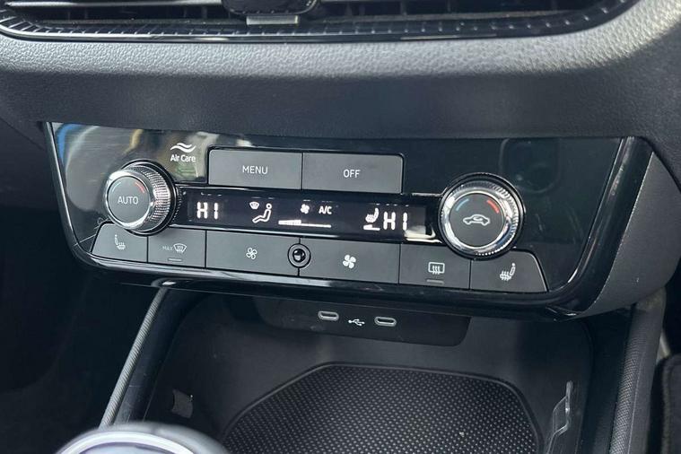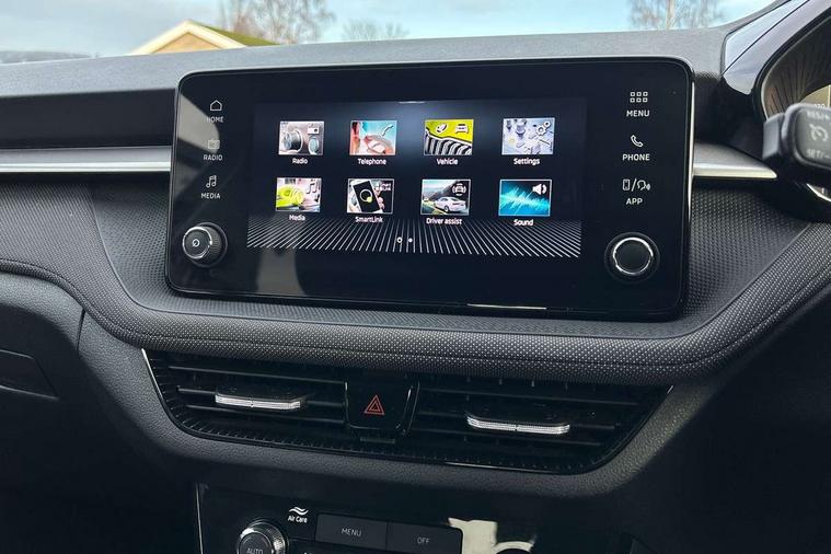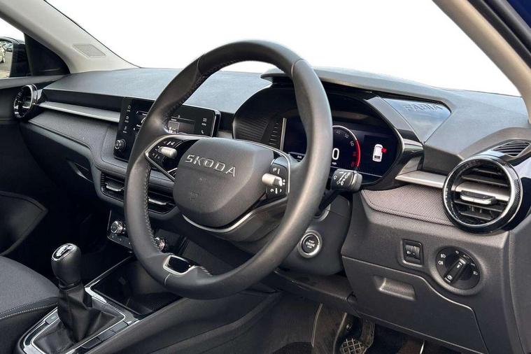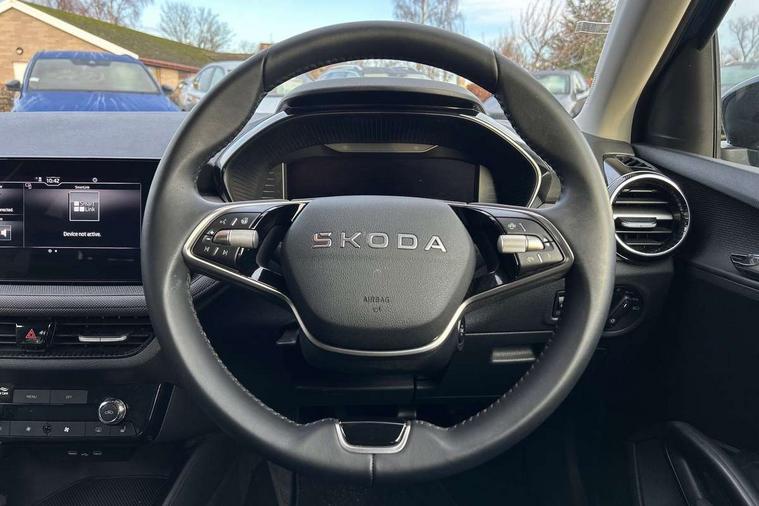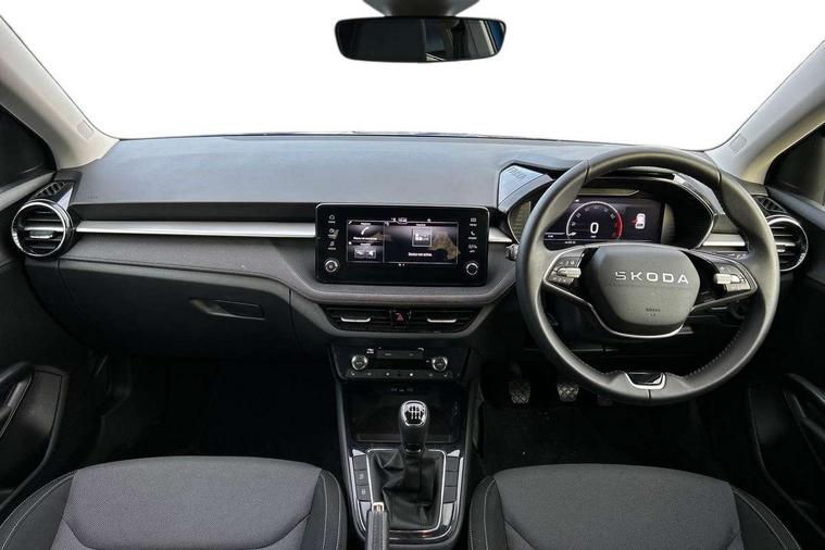 Advanced driver attention and drowsiness monitor, Bluetooth connection, Electromechanical power steering, Exterior temperature gauge, Service interval indicator, Traffic sign recognition, Virtual cockpit with 10.25" colour display, Wireless SmartLink for Apple CarPlay and Android Auto, 6 Speakers (4 in front and 2 in rear), Auxiliary socket for external MP3 player, DAB digital radio reception, Auto dimming rear view mirror, Body coloured bumpers, Door mirror integrated indicators, Front and rear electric windows, Front window wiper intermittent control, Headlight range control - Automatic, Ice scraper in fuel cap, LED 3rd brake light, LED daytime running lights with coming and leaving home feature, LED rear lights, Privacy glass, Rear LED fog light, Rear side wing doors, Rear window wiper with washing nozzles, Roof mounted spoiler, SKODA tailgate lettering in chrome, Unique dark chrome design logo on alloy wheels, 2 reading lights in front and 2 reading lights in rear, 3 rear headrests, Backrest split and folding, Central console with removable cup holder and storage box, Chrome handbrake release button, Dual zone air conditioning with climatronic electronic control, Fabric upholstery, Front centre armrest, Gearshift knob/handle in leather, Grain satin black interior door handles, Hand brake lever handle in leather, Height adjustable front headrests, Height adjustable front seats, Height adjustable steering wheel, ISOFIX and TopTether anchorage points to the outer rear seats, ISOFIX and TopTether on the front passenger seat, Luggage compartment lighting, Manually adjustable lumbar support in front seats, Pollen filter, Rear seat bench unsplit, Single front passenger seat, Skoda lettering on steering wheel, Storm grey headlining, Sun visors with mirror and airbag label on passenger side, Textile floor mats, Ticket holder, Umbrella in drivers door, 3-point height adjustable front seats belts with pretensioner and force limiter, Automatic warning lights in case of crash, Driver and passengers airbag with switch off function, e-Call+, ESC including ABS, MSR, ASR, EDS, HBA and XDS, Front and rear seat belt warning, FRONT ASSIST (AEB City and AEB Inter Urban), Front side airbags, Head airbags, One tone horn, Pedestrian protection, Three rear 3-points safety seat belts with pretensioner and force limiter including stop function for outer rear seat belts, Tyre pressure monitoring system, Anti-theft alarm system including immobiliser, interior monitoring, backup horn, and towing protection, Central locking with radio remote control, interior controls, SAFE function and 2 foldable keys, Black painted air vents, Grain satin black central console cover, Metallic grey upper decorative trim, Satin black door and side trim panel in front, Textile Kota grey lower decorative inserts, Anti-theft wheel bolts protection, Super-low rolling resistance tyres,
