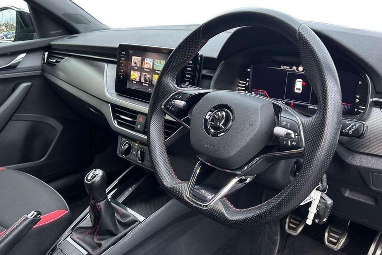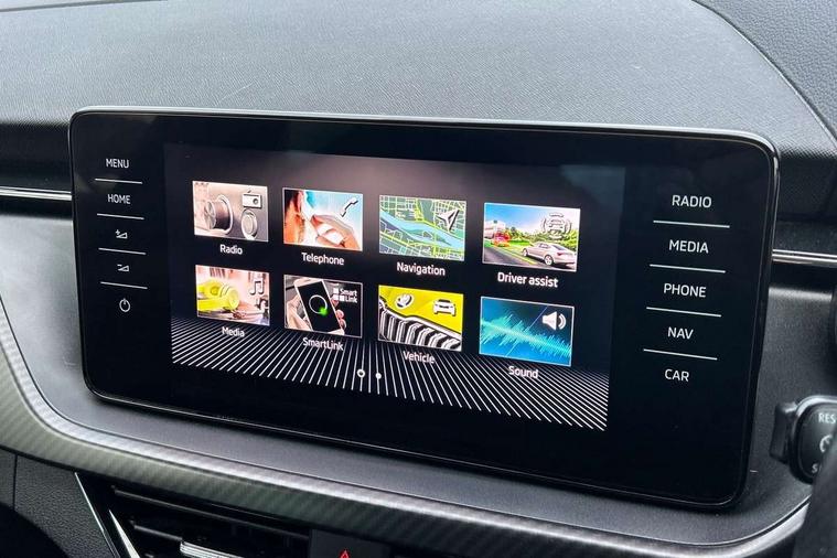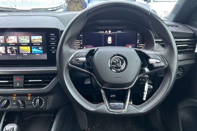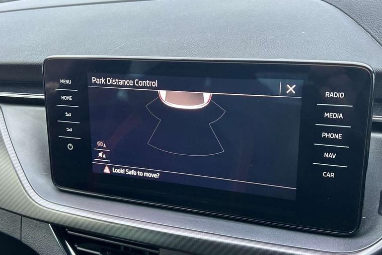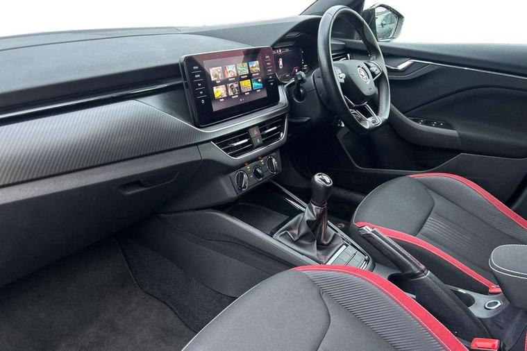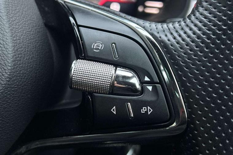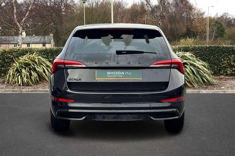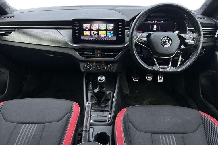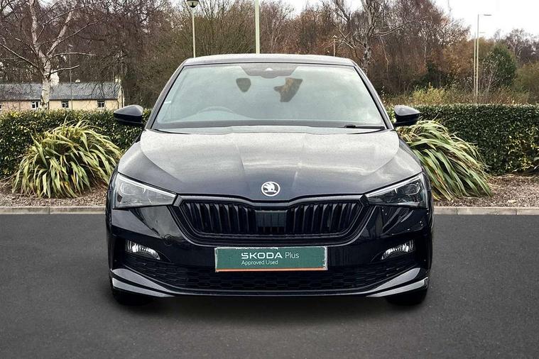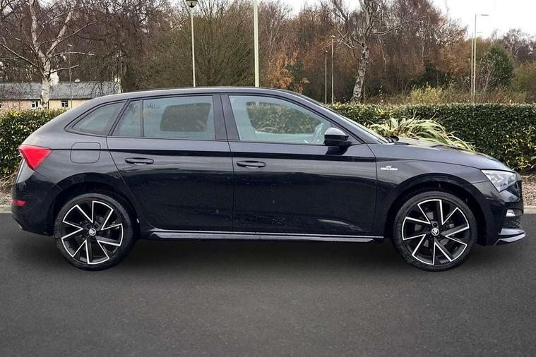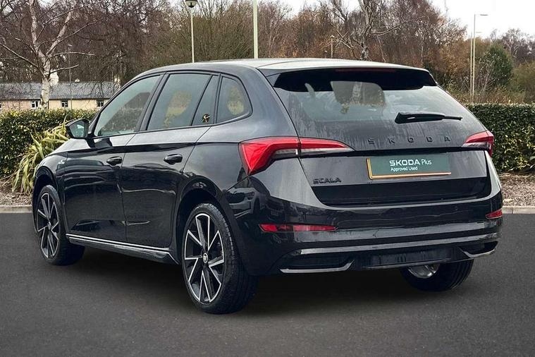 Chrome air vent surrounds, Exterior design pack - Scala, 18" Vega alloy wheels in black, Temporary space saver wheel, Alarm, Anti-theft wheel bolts, Remote central locking with 2 remote folding keys, SAFE function for remote central locking, 2 USB - C ports, 8 loudspeakers, DAB Digital radio, 3x3 point rear seatbelts, Curtain airbags, Emergency call and proactive services, Front head and side airbags, Hill hold control, One tone horn, Passenger airbag switch off function, Seat belt reminder for all seats, Automatic headlamp activation with Coming home and Leaving home feature, Black door mirrors, Black radiator grille, Black rear diffuser, Black sill cover, Body colour door handles, Boot lettering in black, Electric folding door mirrors, Electrically adjustable and heated door mirrors, Front and rear electric windows, Front fog lights, Front sport bumper, LED daytime running lights, Monte carlo plaque, Privacy glass, Skoda across tailgate in black, Tinted windows, 12V Accessory socket in centre console, Aluminium pedals, Black roof lining, Chrome inner door handles, Cloth upholstery, Decor strip on dashboard and door panel, Door sills with lettering, Front gesture control, Front head restraints, Front sport seats, Glasses storage in roof liner, Height adjustable passenger seat, ISOFIX for rear passenger seat, Leather gearknob and handbrake lever, Manual lumbar support for front seats, Reading lights for driver and front passenger, Sun visor with make up mirror for front passenger, Textile floor mats, Third rear headrest, Umbrella, Amundsen satellite navigation with 9.2" glass colour touchscreen with virtual cockpit, web radio, Bluetooth system, Easy light assist, Front assist system, Monte carlo instrument cluster, PAS, Rain and light assist with auto dimming rear view mirror, Rear view camera, Speed limiter,
