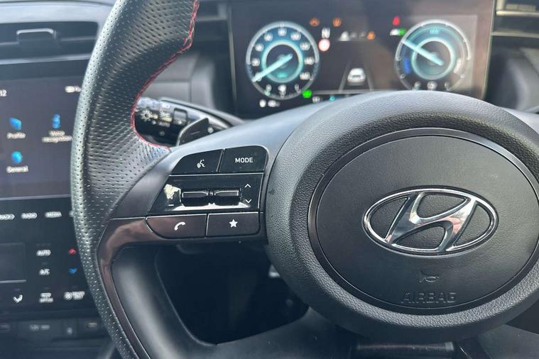 10.25" super vision instrument cluster, 10.25" touchscreen satellite navigation with mapcare and live services, Apple car play/Android Auto, Bluetooth system, Digital clock, Drive mode selector, Driver attention warning, E-call, Emergency stop signalling system, Front and rear parking sensors, Intelligent speed limit assist, Lane follow assist, Lane keep assist, PAS, Rev counter, Reversing camera, Roll over sensor, Tailgate open warning light, Trip computer, Trip odometer, Voice recognition, Water temperature gauge, Windscreen washer fluid sensor and warning indicator, Wireless phone charging pad, 2 front and 2 rear speakers with 2 tweeters, DAB Digital radio, Steering wheel mounted audio/phone controls, USB connections in front and rear, Adjustable intermittent front windscreen wipers with aero wiper blade, Auto dimming rear view mirror, Automatic defog system, Automatic headlights with dusk sensor, Automatic windscreen wipers with rain sensor, Black headlamp bezels, Body colour bumpers, Body colour door mirrors with integrated indicators, Body colour exterior door handles, Body coloured wheel arches, Dark chrome effect radiator grille, Electrically adjustable, heated and power folding door mirrors, Follow me home headlights, Front and rear electric windows with anti-trap mechanism and one touch control, Front fog lights, Gloss black door frame moulding, High beam assist, High level third brake light, LED daytime running lights, LED rear lights, MFR - LED headlight with static bending light, N Line body coloured side mouldings, N Line design front grille, N Line Exclusive front and rear bumpers, N Line rear spoiler with fins, Positioning Lights - LED, Privacy glass - Rear windows and tailgate, Rear wash/wipe with intermittent wipe setting, Roof rails, Silver front and rear skid plate, Sports twin tip exhaust and diffuser, Tinted glass with windscreen shade band, Trailer stability assist, 12V power outlets in front console and luggage compartment, 40/20/40 split folding rear seat, Adjustable head restraints (Up and down), Alloy pedals, Ambient lighting, Black headliner, Cupholders in centre and rear console, Cupholders in rear armrest, Door courtesy lights, Driver and passenger sunvisors with illuminated LED vanity mirrors, Driver's seat electric lumbar support, Driver's seat manual height adjust, Dual zone climate control, Front and rear door pockets, Front armrest with storage box, Front door pocket bottle holders, Front passenger seat lumbar adjustment, Heated front seats, Height/reach adjustable steering column, Illuminated/air conditioned glove compartment, ISOFIX child seat anchorage points attached on outer rear seats, Leather wrapped steering wheel, Leather/suede upholstery, Luggage area underfloor compartment, Luggage compartment lighting, Luggage cover, Luggage hooks, Manual height adjustable front passenger seat, Map and reading lights, N Line logo on steering wheel, Retractable load cover, Sunglasses holder, 3x3 point rear seatbelts, Active bonnet, Airbag - Front, front side, curtain and centre front airbags, Anti-lock brake system (ABS), Autonomous emergency braking, Brake assist function, Childproof rear door locks, Downhill brake control, Electric parking brake with auto hold function, Electronic stability control, Front and rear seatbelt reminder, Front passenger airbag deactivation switch, Front seatbelt pretensioners, Hill start assist control (HAC), Multi-Collision braking, Outer rear seatbelt height adjustment, Seatbelt height adjustment for front seats, Traction control, Tyre pressure monitoring system with individual tyre pressure display - TPMS, Vehicle stability management, Alarm, Deadlocks, Immobiliser, Locking wheel nuts, Remote control central locking, Smart key with keyless entry and engine start/stop button, Speed sensitive auto door locking, 19" Alloy wheels, Tyre repair kit,