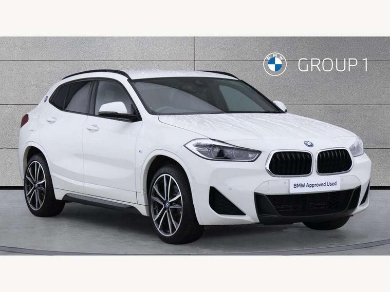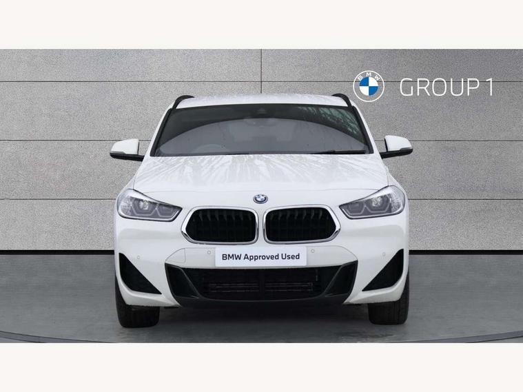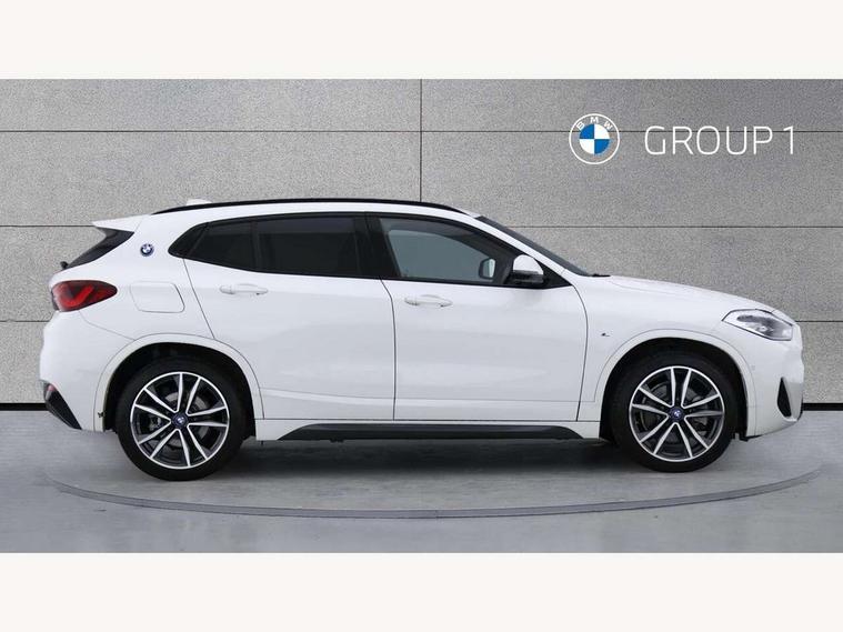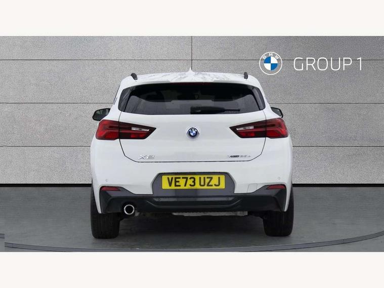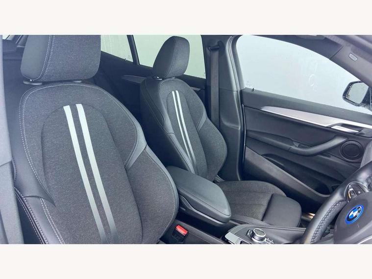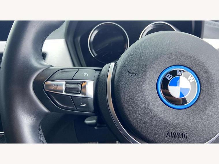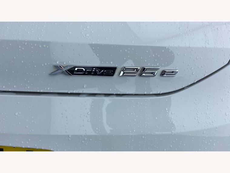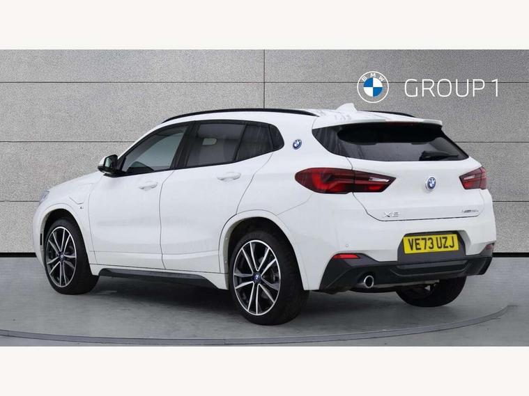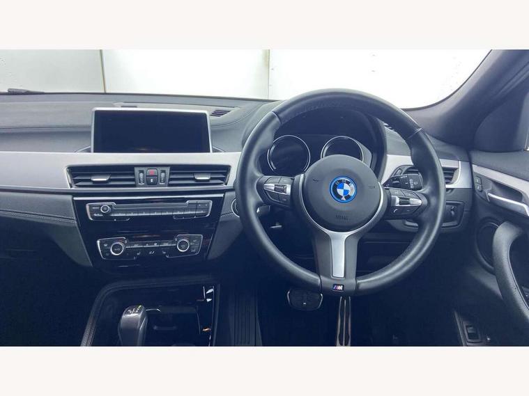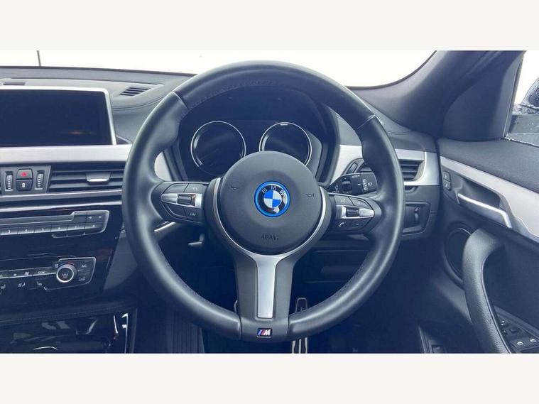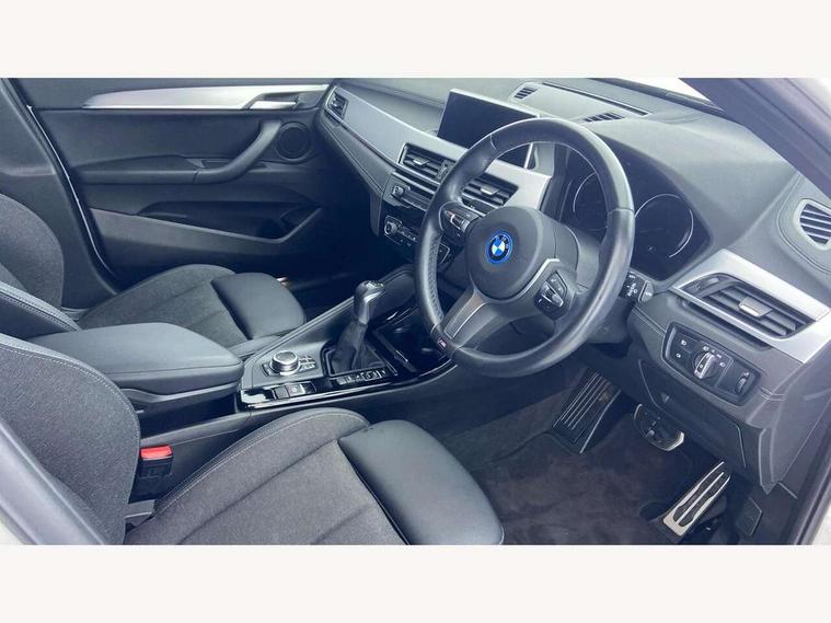 Active Guard incl approach control warning with city brake function and person warning with city brake function, Apple CarPlay preparation, Automatic powered electric bootlid, BMW ConnectedDrive online services, BMW Navigation system with 8.8" monitor, BMW Online services, BMW Teleservices, Brake pad wear indicator in front and rear, Check Control warning system for monitoring of lights and door/luggage compartment open warning, Connected eDrive Services, eDrive button activates auto eDrive, max eDrive and save battery modes, eDrive specific displays in instrument cluster and CID, Electric Power Steering (EPS) with Servotronic, Electro hydraulically controlled multi plate clutch in rear axle, Energy efficient operating strategy, Front axle single joint with specific axle kinematics to minimise drive influences on steering + provide increased rigidity agile driving behaviour, Instrument cluster with black optic and 5.7" colour display + speedometer + tachometer + fuel gauge + instant fuel economy, Integrated owners handbook, Lights on warning by audio warning signal when ignition is switched off, On board computer - average speed+fuel consumption, service interval, clock/date, odometer/trip meter, outside temperature display and ice warning, Operation by iDrive with direct selection buttons and 8 programmable buttons, Optimum shift indicator, Park assist system, Personal Profile, Real time traffic information, TMC for lifetime of vehicle, Variable and stepless distribution of drive torque between front and rear axle, 12V compressor with integrated sealant injection bottle and hose, 2.4kW AC charging with 5m cable, AC Fast Charging, Aluminium lightweight construction including crankcase, Anti roll bar front and rear, Automatic transmission, Balancer shaft, Double VANOS, Drive performance control with ECO PRO comfort + sport mode, eDrive exterior sound, Electric engine installed under rear seats driving the rear wheels, Electronic differential lock, High precision injection, Lithium-ion high voltage battery (10.0 kWh) fitted under rear seats, Performance Control, Transmission of power to rear axle via front axle differential and two-part cardan shaft, Twin tube gas filled shock absorbers with degressive characteristic curve, xDrive electric drive, after activation of the electric motor and common drive via all four wheels, 6 Speaker Loudspeaker system, Bluetooth audio streaming, BMW professional radio, DAB Digital radio, Steering wheel mounted audio/telephone controls, Adjustable headlights, Aero curtain, Automatic windscreen wipers and automatic headlight, Automatically dimming rear view mirror, BMW badge on bonnet, tailgate with integrated tailgate release and C pillars, Body colour door handles, Body colour mirror caps, Body colour roof trims, Chrome kidney grille with black vertical slats, Clear lenses direction indicator lights, Dark shadow front air intakes, Daytime running lights, Differentiation of xEV Vehicles - Blue ring around BMW roundel on wheel hub/tailgate/bonnet/c-pillar/steering wheel and side panel inscription, Direction indicator side lights integrated in exterior mirrors using LED technology, Door mirror integrated indicators, Dynamic brake lights, Electric folding exterior mirrors with anti-dazzle, Electrically adjustable and heated door mirrors glass aspheric on driver's side and convex on passenger side, Engine designation on electric bootlid - right, Fingertip control / anti-trap function on electric window, Front and rear bumper system, Front and rear electric windows, Green tinted heat protection glazing, Heated windscreen washer jets, High gloss black front side air intake with matt black insert, High gloss black in window frame, recess covers and B-Pillar trim, High gloss shadowline in window frame, recess covers, mirror frame and B-Pillar/C- pillar trim, High level third brake light, M logo designation in side chrome, M Sport spoiler, Model designation in left tailgate, Rear fog lights, Rear side wing doors, Rear tail lights with LED technology and 3D design, Rear window aerial, Rear window wiper with wash/wipe function, Reversing light in rear light cluster, Shark fin antenna, Single exhaust tailpipes with chrome finishers 90mm in left, Visible VIN plate, Welcome lighting, 2 cupholders in front centre console, 3 Spoke M sport nappa leather multifunction steering wheel, 40:20:40 manually split folding rear seat with two tilt positions for backrest, Anthracite headlining, Armrest in centre section of rear seat backrest and folding, Automatic two zone climate control air conditioning, Child seat ISOFIX attachment for two outer rear seats and front passenger seat with anchorage points, Conditioned based service, Contrast stitching on centre console and mid section of dashboard to match upholstery seam, Driver and front passenger seat heating, Driver/passenger sunvisors with ticket holders, Floor mats with black surround and M flag detail on front mats, Front and rear door armrests, Front armrest, Front axle always driven, Front door sill finishers with M designation, Front head restraints, Front sports seats, Illuminated charging socket with visual display of charge status, Interior light in front centre interior mirrors and rear centre auto interior light activation when door is opened when ignition switched off, Luggage compartment lighting, Luggage compartment loading edge with stainless steel insert, Luggage compartment with underfloor storage and four lashing eyes, Pre-conditioning of battery for optimum operating temperature, Pre-conditioning of interior via BMW Remote app or setting time within iDrive menu, Rake/reach adjustable steering wheel, Single front passenger seat, Three rear headrests, Additional interior lighting pack - X2, Extended storage pack - X2, M Sport aerodynamic pack - X2, 3 point seatbelts on all seats, front pyrotechnic belt tensioners, stopper and belt force limiters, rear coded belt buckles, Airbags - Front driver and passenger, front 