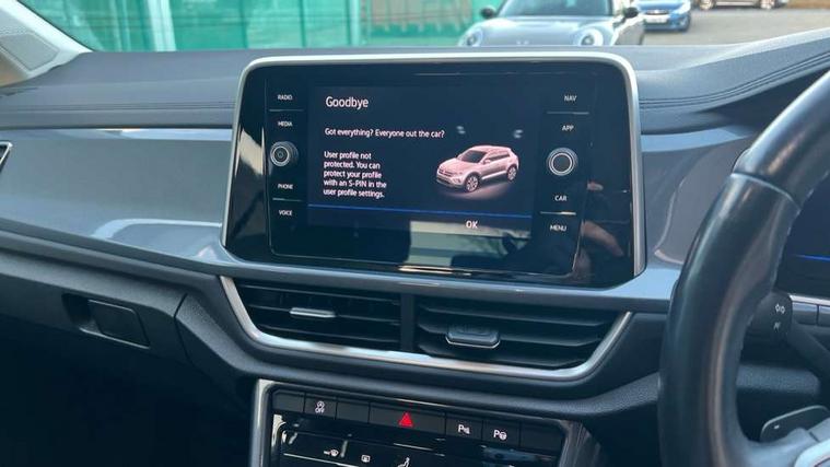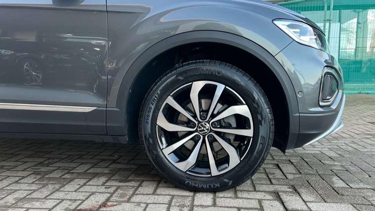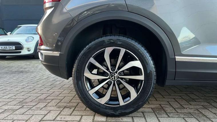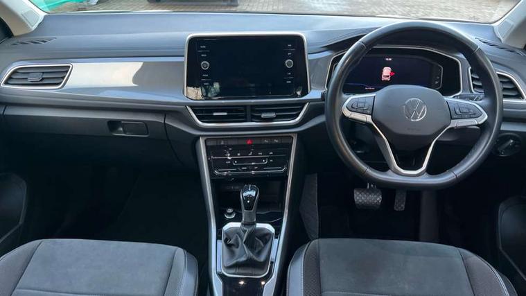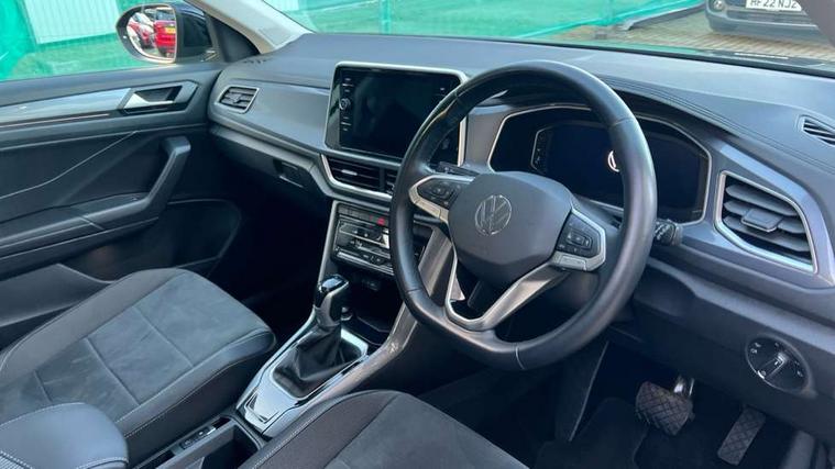 10.25" Digital cockpit pro, Bluetooth mobile phone interface, Driver alert system with fatigue detection, Driver tips and journey analysis, Emergency call service, Lane keeping system Lane Assist, Modified key software - reduce switch off time for key status change to Long no motion, Online services, Park assist including front and rear parking sensors, Service interval indicator, Tailgate/trunk lid release from outside, Think blue trainer driver tips and journey analysis, Warning sound and light for front seatbelts unfastened, Wireless app connect, Battery regeneration during braking, Start/stop function with battery regeneration, Diversity antenna for FM reception, Front and rear 6 speakers, Music playback - MP3, WMA and AAC files, Premium USB cable in choice of either Apple or Android smartphone compatibility, SD card slot, Simultaneous pairing of 2 compatible mobile devices, Title and cover art display, We Connect and We Connect Plus functionality, 3rd brake light, Auto dimming interior rear view mirror, Automatic hazard lights activation under emergency braking, Automatic headlight control with LED separate daytime running lights with coming/leaving home function, Body colour sports bumpers with silver metallic underbody fascia, Dynamic headlight range control with self adjusting whilst driving, Extended roof spoiler, Exterior mirrors aspherical on driver side, convex on front passenger side, External USB type C socket and charging sockets, Front windscreen wiper with intermittent wipe and 4 position delay, Heated rear window, LED Plus headlamps, LED rear combination lamps, LED rear number plate lights, LED tail lamp rear comination lamps, Light mode for poor weather, rain, fog or snow, Power windows with comfort operation and circuit breaker, Rain sensor, Rear exhaust tailpipe, Rear fog light on one side and reversing lights on both sides, Rear side wing doors, Rear wash/wipe with intermittent wipe setting, Remote electrically foldable door mirrors, puddle lights and reverse activated passenger's door mirror, 12V power socket in centre console, 3 rear head restraints, 3 seat bench in 2nd row, 4 load lashing points in luggage compartment, Air care climatronic air conditoning system with active combination filter and 2-zone temperature control, Chrome plated radiator grille inserts, air vent surrounds and light switch surrounds, Door and side trim panel with leatherette insert, Drawer under drivers seat, Front + rear carpet mats, Front centre armrest, Front comfort sports seats, Front cupholders x 2, Front footwell illumination, Instrument lighting, white adjustable panel illumination, Interior ambient lighting and surround lighting, Interior light delay, Isofix child seat preparation, Leather gearshift handle, LED interior light with switch off delay/dimmer and 2 front/rear LED reading lights, Load-through provision with cup holder when folded down ('Unsplit rear seat bench, split folding backrest, with centre armrest), Luggage compartment lighting, Non-folding front passenger seat backrest, Single front passenger seat, Storage compartment in left and right luggage area, Storage compartment in rear doors, Storage compartments in driver and front passenger doors, Sunvisors with illuminated vanity mirrors, Variable boot floor, height adjustable and removable, Driver assistance pack without proactive passenger protection - T-Roc, 3 point height adj front seatbelts + pretensioners, 3 point seatbelts in outer rear with ECE label, ABS, Child locks on rear doors, Driver and front passenger airbag with front passenger airbag deactivation, Driver and front passenger safety-optimised head restraints, Drivers seatbelt reminder, Electronic parking brake, Electronic Stability Control (ESC) inc EDL (Electronic Differential Lock) and ASR (Traction Control), Front and rear passengers curtain airbag system including front side airbags, Front assist with city emergency braking and pedestrian monitoring, Front seat side impact airbags, Predictive pedestrian protection, Rear disc brakes, Single tone horn, Tyre pressure loss indicator, Volkswagen roadside assistance, Alarm with interior protection, Anti-theft alarm system with interior monitoring, backup horn, and towing protection, Remote central locking with SAFELOCK, radio remote control with 2 remote control folding keys, Trims for alloy wheels,