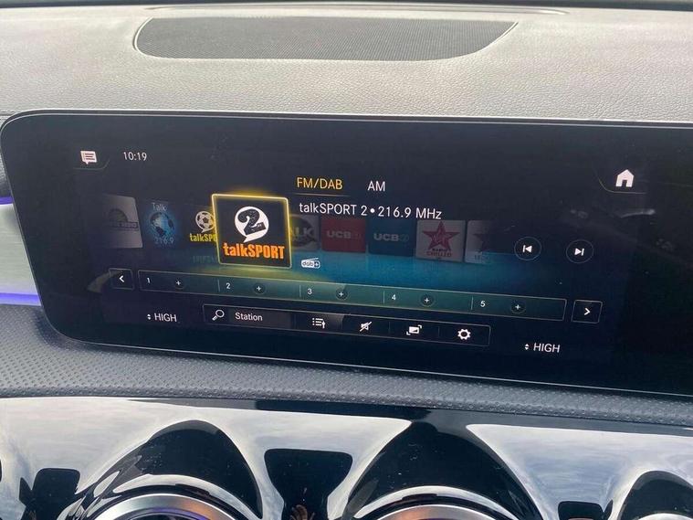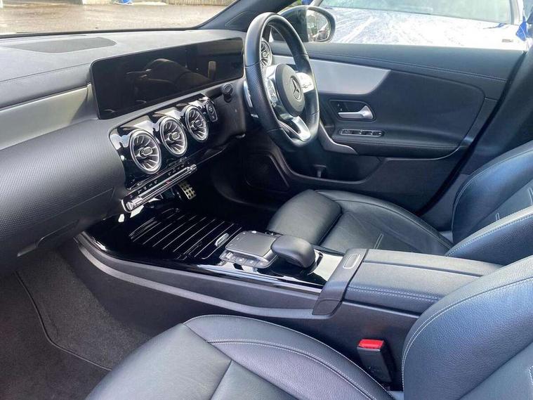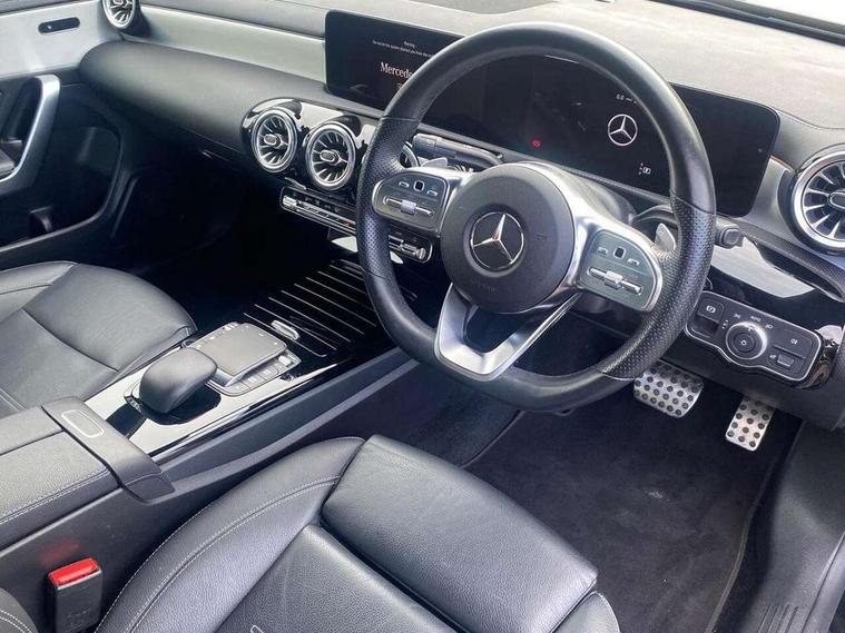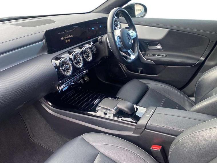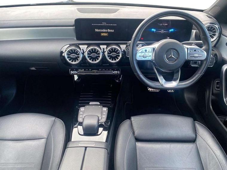 10.25 inch Instrument display with digital cockpit, 10.25 inch touchscreen central media display, Active lane keeping assist, Attention assist - Monitors steering behaviour and long journey fatigue, Bluetooth connection, Car wash mode, Cruise control with limiter, Direct steer system with speed sensitive power steering, DYNAMIC SELECT with a choice of driving modes (ECO, Comfort, Sport and Individual), ECO start/stop function, Fluid level warning indicator for fuel, oil, coolant and washer fluid, Hard-disk navigation, Hey Mercedes Voice activation, Lamp failure indicator, Mercedes me connect including emergency call system, accident recovery, breakdown and maintenance management, Mercedes me remote services, Outside temperature gauge, Owners manual and service booklet in English, Pre-installation of private car share, Preinstallation for Mercedes Benz link, Radio aerial integrated into front and rear windshields, Service indicator (ASSYST), Smartphone integration with Apple CarPlay and Android auto, Speed limit assist, Trip computer in multifunction display with current consumption indicator, Lowered comfort suspension, Rear axle multi-link, DAB digital radio tuner, MBUX multimedia system, Mid-range sound system, USB (type C) ports (2) in stowage compartment and 1 in front of centre console, Adaptive brake lights, AMG body styling with AMG front apron and rear apron and visible exhaust tailpipe in chrome trim elements, AMG bodystyling side skirts, Body colour bumpers, Body colour door handles, Chrome beltline strips, Diamond radiator grille pins in chrome, Electric windows, Electrically adjustable and heated door mirrors with integrated LED indicators, Exhaust system with 2 Visible tailpipe trim elements and rear apron with trim in chrome, Headlamp assist automatic headlamp activation, Heated glass rear windscreen + timer control, High level LED third brake light, Interior mirror with black reading lamps and frameless, LED high performance headlamps with integrated LED daytime running lights, LED tail lamp, Privacy glass with dark tinting on rear side windows and rear window, Rain sensing windscreen wipers with two sensitivity settings, Rear boot, Rear fog lamp, Rear side wing doors, Variable front intermittent wipers, Window line trim strip in chrome, 3 seat bench in 2nd row, 3 spoke flattened bottom nappa leather multifunction steering wheel with perforated leather in grip area, 40:20:40 split folding rear seat backrests, Air conditioning - Two zone thermotronic luxury automatic climate control with display, Air vents with surround in silver chrome, Artico man-made leather upholstery, Automatic child seat recognition sensor, Black roof lining, Brushed stainless steel sports pedals with rubber studs, Floor mats with stitched AMG lettering, Front centre armrest with stowage, Galvanished gear shift paddles on steering wheel, Heated front seats, Illuminated front door sills with changeable cover, Illuminated glove compartment stowage, Interior lighting - 64 colour Ambient lighting, Luggage net on driver/front passenger seat backrest, Manually adjustable front seats, Manually height and reach adjustable steering column, Rear armrest with two integral cup holders for drinks, Rear head restraints, Single front passenger seat, Sport seats with fixed head restraints, Stowage compartment in centre console with retractable cover, Sunvisors with illuminated vanity mirrors, Touchpad on center console, Twin front cupholders, Two outer rear seat isofix and top tether child seat fixing points, Keyless go comfort pack - CLA, Light and sight pack - CLA, Mirror pack - CLA, Night package - CLA, Parking package - CLA, Seat comfort pack - CLA, Active bonnet pedestrain safety measure which detects an impact and raises bonnet by 65mm, Active brake assist includes forward collision warning system with autonomous braking, Adaptive brake assist with hold function and hill start assist, Anti lock braking system (ABS) with brake assist, Black seat belts, Bonnet with power domes, Brake pad wear warning indicator, Childproof locks manually operated for rear doors and electrically operated for rear power windows, Crash responsive emergency lighting, Driver and front passenger head and sidebags, Driver and front passenger windowbags, Drivers knee airbag, Dual stage driver and front passenger airbags, Electric parking brake, Electronic stability programme with acceleration skid control, ESP curve dynamic assist, Front and rear seatbelt reminder, Front passenger seat occupancy sensor, Three point rear seat belts, Tyre pressure monitoring system, Warning triangle and first aid kit, Guard 360 degree guard vehicle protection system with immobiliser and interior protection, Remote central locking and crash sensor with emergency opening function, Light aluminium with longitudinal grain interior trim, 18" AMG 5 twin spoke light alloy wheels painted in black with high sheen finish, Summer tyres, Tirefit tyre sealant kit,