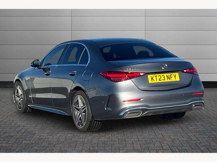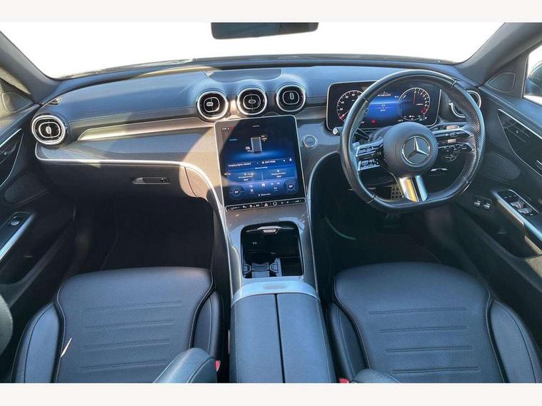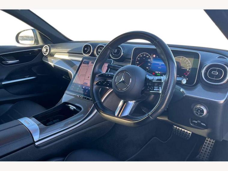 11.9" high resolution multimedia colour display, 12.3" digital instrument cluster display, Acoustic ambient protection, Active blind spot assist, Active brake assist plus, Active lane keeping assist, AMG DYNAMIC SELECT with a choice of driving modes (Slippery, Comfort, Sport, Sport+, Individual), Attention assist, Cruise control with speedtronic variable speed limiter, E-call, Extended MBUX functions, Finger print sensor, Fluorescent jacket for driver, MBUX navigation premium, MBUX voice control activated by keywords "Hey Mercedes", Mercedes connect me, Mercedes me remote services, Outside temperature gauge, Pre-installation for digital key transfer, Remote boot release, Service indicator (ASSYST), Smartphone integration, Speed limit assist, Sports direct steer speed sensitive steering, Status display for rear seat belts in instrument cluster, Traffic sign assist, Wireless charging system for mobile devices, 11 kW AC onboard charger, 50l fuel tank with increased capacity, 5m charging cable for household socket (mode 2), 5m charging cable for wall box/public charging stations(mode 3), 66l fuel tank with increased capacity, 9G TRONIC 9 speed automatic transmission, Agility control sports suspension and lowered by 15 mm, Petrol Particulate Filter, Sporty engine sound system, DAB Digital radio, MBUX multimedia system, Adaptive brake lights, Adaptive high beam assist, AMG body styling front apron, rear apron and side skirts, AMG front bumper with sporty air intakes and chrome elements, AMG rear bumper with high gloss chrome elements, AMG side skirts in vehicle colour, B-pillar trim in glossy black, Body coloured bumpers, Body coloured door mirrors, Chrome beltline trim, Daytime running lights, Electric windows with one touch opening/closing and obstruction sensors, Electrically adjustable and heated door mirrors, Green tinted glass, Heat insulating dark tinted glass, Illuminated front door sill panels, LED high performance headlamps, LED Indicators, LED tail lights, LED third brake light, Powerdomes on bonnet, Privacy glass, Radiator diamond grille with integrated Mercedes Benz star and louvre silver with chrome pins, Radio aerial integrated into rear window, Rain sensor with automatic windscreen wiper activation, Rear boot, Rear side wing doors, Side windows surround in polished aluminium, Two visible exhaust pipes integrated into rear bumper, 3 seat bench in 2nd row, 3 spoke flattened bottom AMG multifunction steering wheel in black nappa leather with chrome inserts and perforated leather in grip area, 40:20:40 split folding rear bench seat, AMG sports seats, Artico man-made leather upholstery, Audio and onboard settings control on multifunction steering wheel, Auto Mercedes-Benz child seat recognition sensor, Black air vents with silver chrome elements, Black floor mats with AMG lettering, Black roof liner, Door trim elements high gloss black with silver chrome surroundings and switches, Double cupholder in centre console, Folding rear seat backrest, Front and rear head restraints, Front centre armrest with storage compartment, Front door sills with Mercedes Benz lettering, Gearshift paddles on steering wheel, Heated front seats, Illuminated glove compartment stowage, Interior lighting - 64 colour Ambient lighting, Manually height and reach adjustable steering column, Overhead control unit in high gloss black, Rear top tether child seat ISOFIX attachment, Single front passenger seat, Sports pedals with stainless steel surfaces and rubber studs, Sunvisors with illuminated vanity mirrors, THERMATIC 2 zone automatic climate control, Interior lighting package - C Class, Memory package - C Class, Mirror pack - C Class, Parking package with reversing camera - C Class, Seat comfort pack - C Class, Stowage space pack - C Class, USB package - C Class, USB package plus - C Class, 3 rear 3 point seatbelts, Active bonnet pedestrian safety measure which detects an impact and raises bonnet, Adaptive brake system with HOLD function and brake drying in the wet, Anti-lock braking system (ABS), Black seat belts, Brake calipers with Mercedes-Benz lettering + perforated front brake discs, Child proof door locks, Drivers knee airbag, Drivers pelvis airbag, Dual stage driver/passenger airbags, Electric parking brake, Electronic Stability Programme (ESP), Front centre airbag between driver and front passenger seats, Front side airbags, Larger brake discs on front axle, Rear seatbelt warning indicator, Sports braking system, Tyre pressure monitoring system, Warning triangle and first aid kit, Window airbags for driver, front passenger and rear passenger, Central locking with interior switch, automatic locking and crash sensor with emergency opening function, Chrome surround in electric key, Keyless Go, URBAN GUARD vehicle protection (Thatcham Category 1) consisting of break-in, anti-theft alarm system (ATA), interior monitoring and tow-away protection, Artico man-made leather dashboard with contrast stitching, Centre console trim in metal weave, 18" AMG 5 spoke design aerodynamically optimised alloy wheels painted in tantalite grey with high sheen finish, Summer tyres, TIREFIT with tyre inflation compressor,