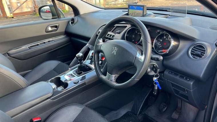 Cruise control + speed limiter, Digital clock, Front parking aid with gap measurement, Peugeot Connect colour satellite navigation + bluetooth, Rear parking aid, Reversing camera, Speed sensitive power steering, Trip computer, Diesel particulate filter, RD45 stereo radio + MP3 CD Player, Speed sensitive stereo volume, Steering column mounted multifunction controls, USB port, Body colour door mirrors and handles, Body coloured bumpers with chrome inserts, Electric front windows, Electric rear windows, Front fog lights, LED daytime running lights, LED rear lights, Panoramic opening glass roof with electric blind, Rear wiper, Split tailgate, Tinted rear windows, 2 Isofix seat anchors, 3 x 12V power sockets, 60/40 split folding rear seat back and squab, Adaptable boot storage, Aluminium door sill trims, Centre console storage, Cupholders - 2 in rear centre armrest, Digital air con with climate control, Driver's lumbar support, Flat folding rear seats, Fold flat front passenger seat with picnic table, Fold flat front seats, Front headrests, Heating/air conditioning outlet in rear, Height adjustable driver/front passenger seats, Instrument panel light dimmer, Leather steering wheel, Manual height/reach adjust steering wheel, Rear centre armrest/ski flap, Rear headrests, Rear passenger footwell storage, Rear sunblind, Reclining front seats, Second glovebox behind steering wheel, Variable boot floor, Retrovision pack - 3008, Visibility pack - 3008, 3 point seatbelts on all rear seats, ABS + EBD + EBA, Driver SMART airbag, Electronic parking brake, ESP with ASR, Front and rear curtain airbags, Front and rear pre-tensioning and force limiting seatbelts, Front passenger SMART airbag with deactivate switch, Hill start assist, Side airbags x 2, Tyre pressure sensor, Automatic door lock/re-lock after 30 seconds, Central locking button on dash, Deadlocks, Locking wheel bolts, Remote control central locking with two plip keys, Rolling code transponder immobiliser, Thatcham cat 1 ultrasonic alarm, Black instrument panel with white needles and white backlighting,