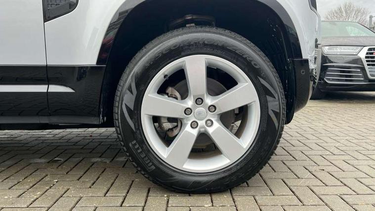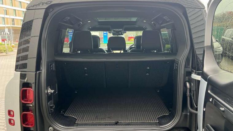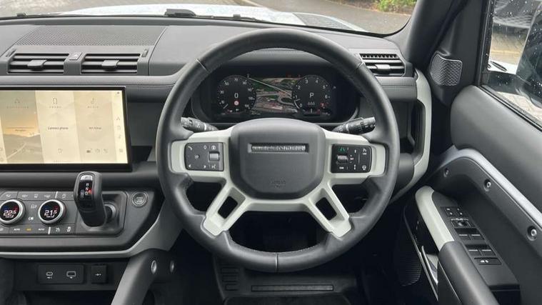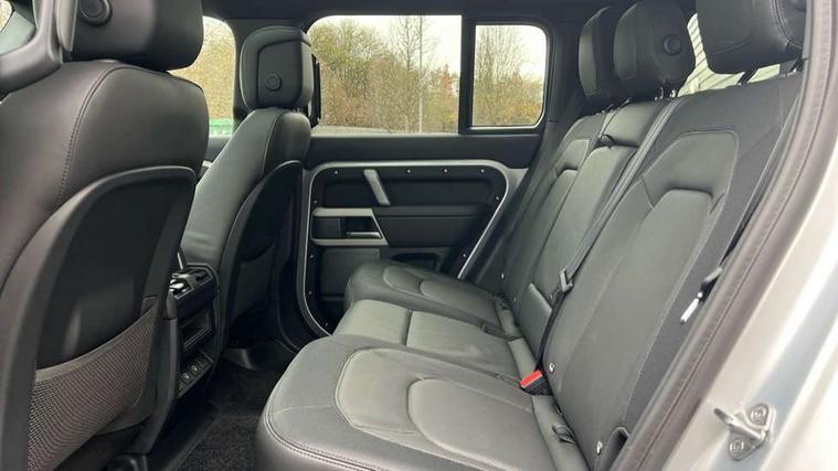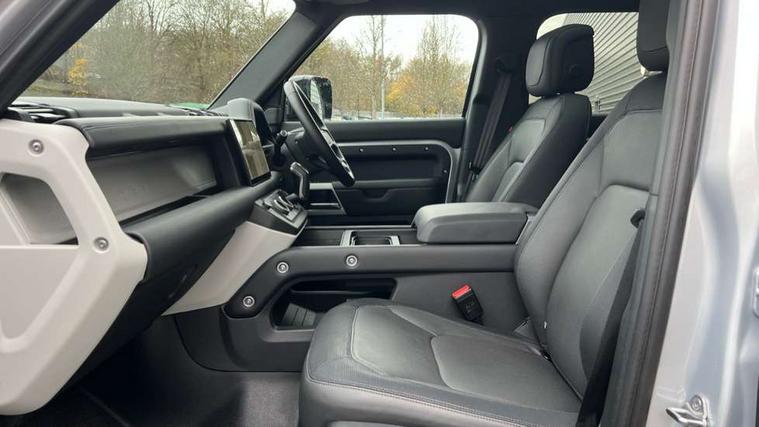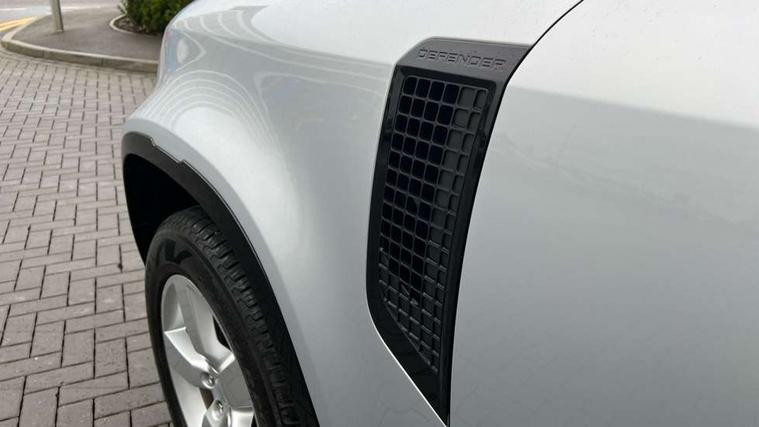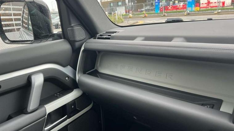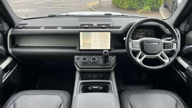 360 degree parking aid, 3D Surround Camera with 360 View, 180 Rear View, Front Traffic Detection, Forward Vehicle Guidance, Tow Hitch Assist and clear sight Ground View, Adaptive cruise control, Android Auto, Apple CarPlay, Assisted tailgate with soft close, Blind spot assist, Bluetooth system, Brake pad wear indicator, Clear exit monitor, Click and go integrated base unit, Connected navigation pro, Driver condition monitor, Electric power assisted steering (EPAS), Interactive driver display, Lane keep assist, Push button start, Rear collision monitor, Rear traffic monitor, Traffic sign recognition with adaptive speed limiter, Trip computer, Wade Sensing, DAB Radio (Digital Audio Broadcasting), Pivi pro connected, Auto dimming interior rear view mirror, Automatic headlight levelling, Automatic headlights, Black exposed rear recovery eyes, Centre high mounted stop light, Electric heated/power fold door mirrors with approach lights and auto dimming driver side, Electric windows with one touch open/close and anti-trap, Follow me home lighting, Front fog lights, Heated rear window with timer, Heated windscreen, LED tail lights, Privacy glass, Puddle lights, Rain sensing windscreen wipers, Rear fog lights, Rear side wing doors, Rear wiper, Trailer stability assist, X-Dynamic badge, 12V power socket in loadspace, 14 way heated and cooled electric adjustable memory front seats with 4 way manual headrests, 3 seat bench in 2nd row, Carpet mats, Configurable cabin lighting, Durable rubber cabin flooring, Durable rubber loadspace flooring, Electric reach + rake adjustable steering column, Extended leather upgrade, Footwell lights, Front passenger isofix child seat attachment, Heated steering wheel, Leather steering wheel, Loadspace cover, Loadspace Hook, Multifunction steering wheel, Overhead stowage for sunglasses, Premium cabin lighting, Rear headrests, Rear ISOFIX, Rear reading lights, Single front passenger seat, Storage glovebox, Sunvisors with illuminated vanity mirrors, Windsor leather and Robustek upholstery, Online pack with data plan - Defender, X-Dynamic exterior pack - Defender, 5 x 3 point seatbelts, ABS, Brake hold function, Cornering brake control (CBC), Customer configurable autolock, Driver and passenger airbags, DSC - Dynamic Stability Control, EBD - Electronic brakeforce distribution, Electric parking brake (EPB), Emergency brake assist, Emergency braking, ESP + traction control, Front airbags with passenger seat occupant detector, HDC - Hill descent control, Hill launch assist, Low traction launch, Power operated child locks, Remote for (e-Call, Optimised assistance call, InControl app, Climate, beep and flash and door), RSC - Roll stability control, Seat belt reminder, TPMS (Tyre pressure monitoring system), Alarm, Immobiliser, Intrusion sensor, Keyless entry, Locking wheel nuts,
