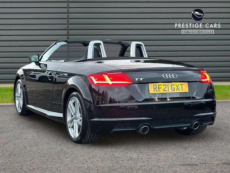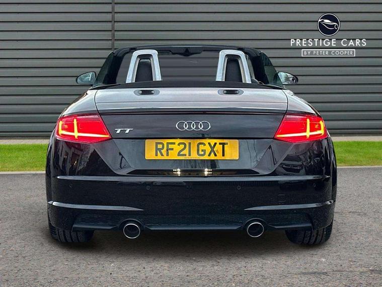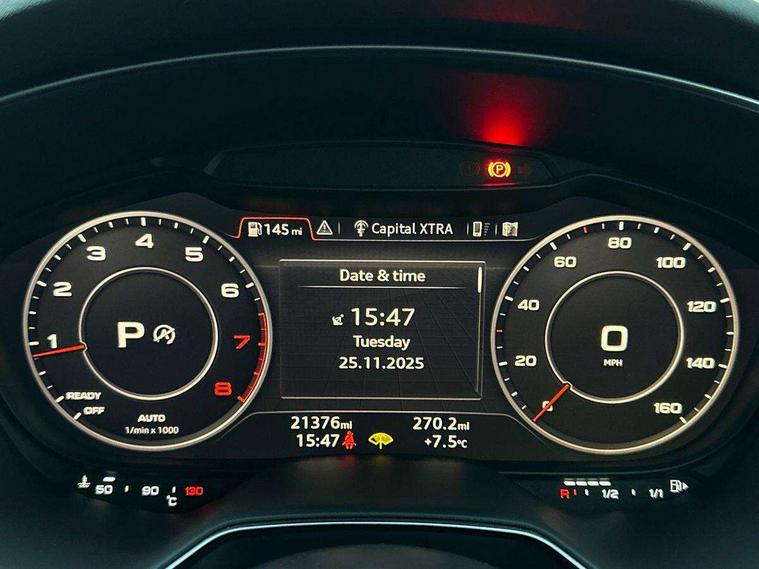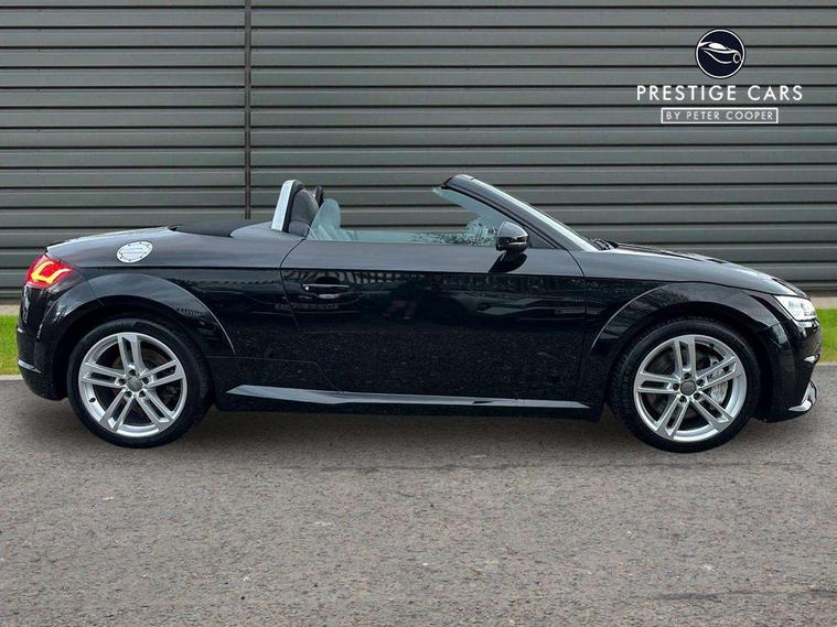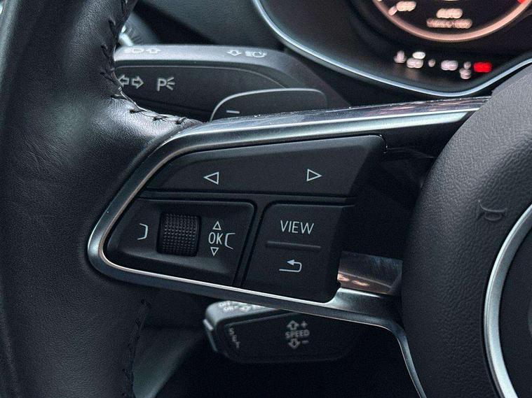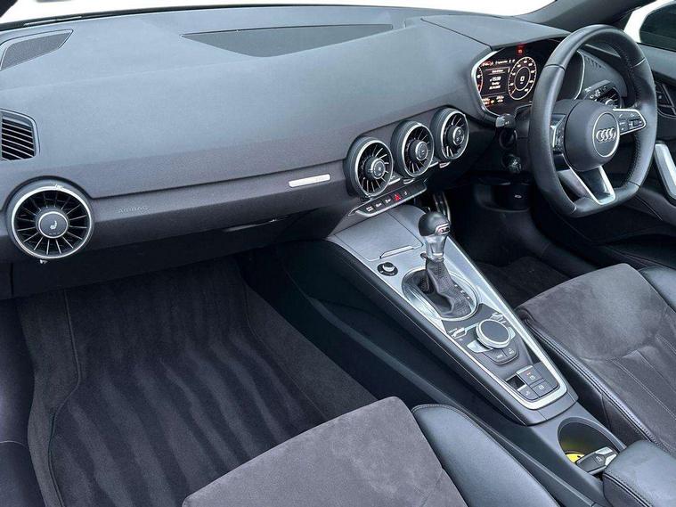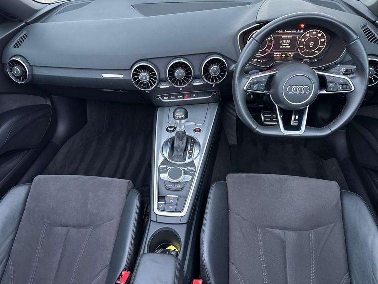 Audi drive select with 4 Pre configured modes, Audi smartphone interface, Audi virtual cockpit - 12.3" high-resolution LCD display with fully customisable instrument cluster, Cruise control + speed limiter, MMI touch panel, Mobile phone preparation with bluetooth interface, Progressive power assisted steering, Seat belt microphone, Service interval indicator, Start/Stop system with energy recuperation, TP memo, Sports suspension, AM/FM radio, Bluetooth audio streaming, DAB Digital radio, MMI Radio with CD player and SD/XC card slot, Auto dimming rear view mirror, Body colour bumpers, Body colour electrically adjustable and heated door mirrors with built in LED side indicators, Electric folding door mirrors, Electric front windows, Front fog lights, Fully automatic acoustic hood, Green tinted heat insulating glass, Light and rain sensors, Retractable rear spoiler, Sunband for windscreen, Xenon headlights with LED daytime running lights with automatic headline range control + LED rear lights, brake lights and rear indicators, 12V socket, 3 spoke flat bottomed high multi-function leather sport steering wheel with gearshift paddles, Alcantara/Leather upholstery includes seat centre panels, door trim inserts in black Alcantara with side bolsters, head restraints in black leather, Aluminium door sill trims, Front centre armrest, Front sports seats, Heated front seats, Height adjustable driver's seat, Height adjustable front head restraints, Height/reach adjust steering wheel, ISOFIX child seat mounting for front passenger seat with airbag deactivation, Tool kit, Non smoking pack - TT/TT RS, 3 point front seat belts, ABS, ASR traction control, Curtain airbags, Driver and front passenger airbag with front passenger airbag deactivation, EDL traction control, Electromechanical parking brake, ESP, First aid kit, Front side airbags, Hill hold assist, Roll over bars, Seatbelt warning, Tyre pressure loss indicator, Warning triangle, Anti theft alarm, Anti theft wheel bolts, Immobiliser, Keyless Go, Remote central locking, Aluminium design inlays, Tyre repair kit,