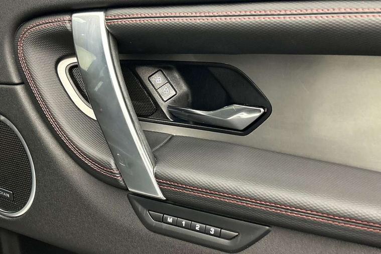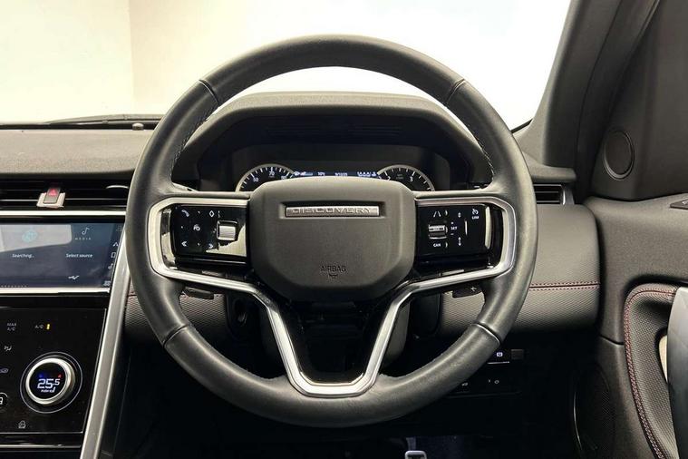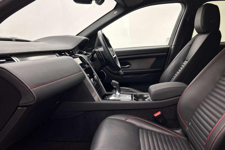 10" touch screen, Adaptive cruise control, Android Auto, Apple CarPlay, Blind spot assist, Clear exit monitor, Driver condition monitor, eCall emergency call system, Front and rear parking aid, InControl remote premium, Lane keep assist, Locking fuel flap, PAS, Pivi Pro connected navigation system with upgraded Infotainment, Powered tailgate/boot lid, Push button start, Rear collision monitor, Rear traffic monitor, Service interval indicator, Traffic sign recognition with adaptive speed limiter, Trip computer, Wade Sensing, All terrain progress control, Coil suspension system, Diesel particulate filter, Dynamic stability control, Terrain Response 2, Bluetooth connectivity including audio streaming, Digital Audio Broadcast radio-DAB, Steering wheel mounted audio controls, 3rd brake light, Automatic headlight levelling, Automatic headlights, Electric front/rear windows, Electric heated/power fold door mirrors with approach lights and auto dimming driver side, Fixed panoramic sunroof with powered sunblind, Front and rear recovery eyes, Heated rear window, Heated windscreen including heated washer jets, No badges, Privacy glass, R Dynamic badge, Rain sensing windscreen wipers, Rear fog lights, Rear side wing doors, Rear wing door, Rear wiper, 5 seats, Bright metal pedals, Centre console with armrest, Footwell lights, Front and rear grab handles, Front passenger isofix child seat attachment, Loadspace cover, Loadspace light, Overhead lighting console, Overhead stowage for sunglasses, Rear headrests, Satin chrome gearshift paddles, Sunvisors with illuminated vanity mirrors, Tilt/reach adjustable steering wheel, Black exterior pack - Discovery sport R-Dynamic SE/HSE, Online pack with data plan - Discovery, 3 point seatbelts on all seats, ABS, Brake hold function, Child locks on rear doors, Collision mitigation braking system, Cornering brake control (CBC), Driver/Front Passenger airbags, Drivers knee airbag, Electronic brake force distribution, Electronic parking brake, Emergency brake assist, ESP + traction control, Hill descent control, Hill launch assist, Pedestrian airbag system, Rear seat ISOFIX, Roll stability control, Side and curtain airbags for front and 2nd row seats, Trailer stability control, Tyre pressure monitoring system, Battery Back Up System (BBUS) with tilt sensor, Global lock and unlock switch on driver door, Intrusion sensor, Keyless entry, Locking wheel nuts, Centre stack rails in noble chrome,