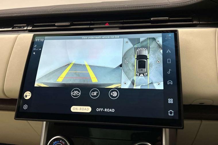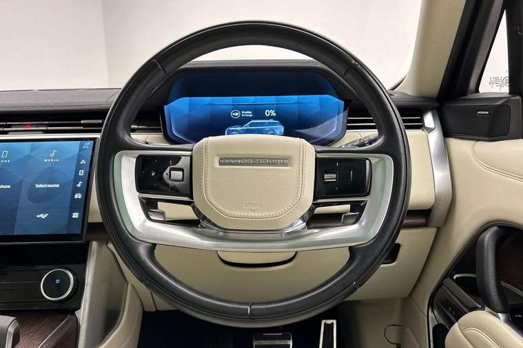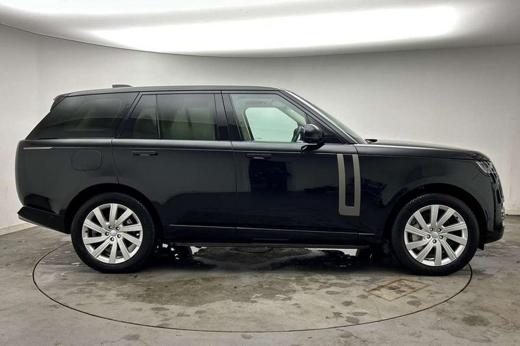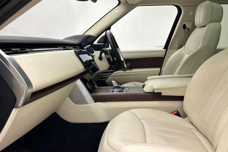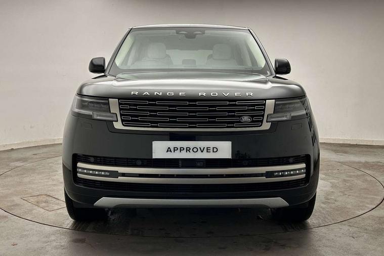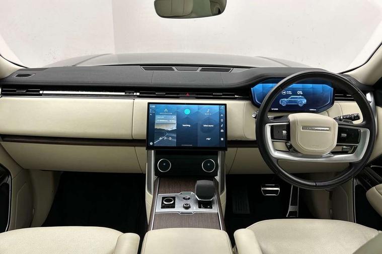 13.1" Touchscreen, 3D surround camera inc frwd traffic detection, vehicle clearance guidance, 3D view, clearsight ground view, manoevure light, 360 parking aid, wade sensing, Adaptive cruise control with steering assist, All Terrain Info Centre, All wheel steering, Android Auto, Apple car play, Blind spot assist, Bluetooth connectivity streaming, Driver condition response, Eco mode, Electric power assisted steering (EPAS), Emergency call service, Front and rear parking aid, Interactive driver display, Lane keep assist, Powered gesture tailgate/boot lid, Rear collision monitor, Rear traffic monitor, Remote, Traffic sign recognition with adaptive speed limiter, Wi-Fi Enabled with data plan, Wireless device charging with phone signal booster, 7 kW onboard charger, 8 speed automatic transmission, Active damper technology system, Adaptive dynamics, All terrain progress control, All Wheel Drive (AWD), Automatic access height, Home charging cable 5m Mode 2 including plugs, Public charging cable 5m Mode 2 including plugs, Terrain Response 2 Auto, Twin speed transfer box, Digital Audio Broadcast radio-DAB, Pivi pro including smart settings, Connected navigation pro, nuance speech, USB socket, Acoustic laminated windscreen, Animated directional indicators, Automatic headlights, Automatic levelling headlights, Centre high mounted stop light, Electric windows with one touch open/close and anti trap, Flush deployable exterior door handles, Front and rear recovery eyes, Front fog lights, Headlamp power wash, Heated rear window, Heated washer jets, LED tail lights, Power fold, auto-dimming, heated door mirrors with approach lights, Rain sensing windscreen wipers, Range rover badge, Rear boot, Rear fog lights, Rear side wing doors, Rear wash/wipe, Side repeater indicators in mirror, Trailer stability assist, Winter wiper park position, 12V power sockets, 3 seat bench in 2nd row, Air quality sensor, Bright metal pedals, Cabin lighting, Customer configurable single point entry, Driver and passenger front seat armrests, Easy boot loading, Ebony Carpet, Front and rear cupholders, Front and rear grab handles, Front head restraints, Gearshift paddles, Heated steering wheel, Hook in load space, Loadspace light, Luggage tie down in loadspace, Multifunction steering wheel, Rear centre armrest, Rear head restraints, Rear ISOFIX, Single front passenger seat, Twin blade sunvisors with Illuminated vanity mirrors, Upper and lower glovebox, Online pack with data plan - Range Rover, 3x3 point rear seat belts, Anti-lock braking system (ABS), Brake hold function, Cornering brake control (CBC), Customer configurable autolock, DSC - Dynamic Stability Control, Electronic brake force distribution, Electronic parking brake, Electronic traction control, Emergency brake assist, Emergency braking, Front airbags with passenger seat occupant detector, Front side airbags, Hill descent control, Hill launch assist, Low traction launch, Occupant protection assist, Power operated child locks, Roll stability control, Tyre pressure monitoring system (TPMS), Immobiliser, Intrusion sensor and alarm, Keyless entry, Locking wheel nuts, Remote central locking, Noble chrome controls,