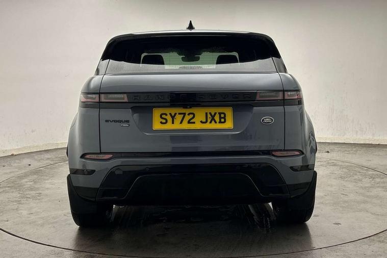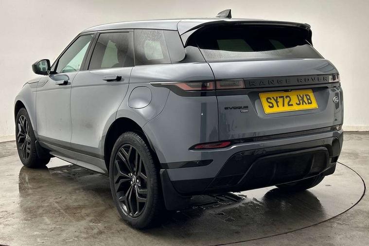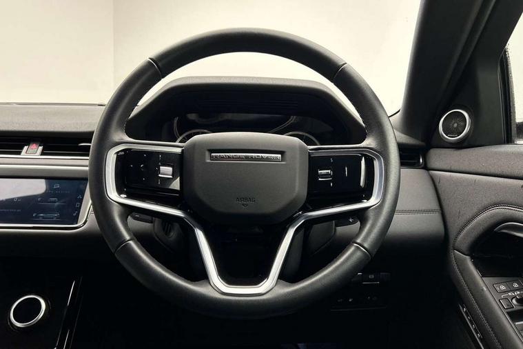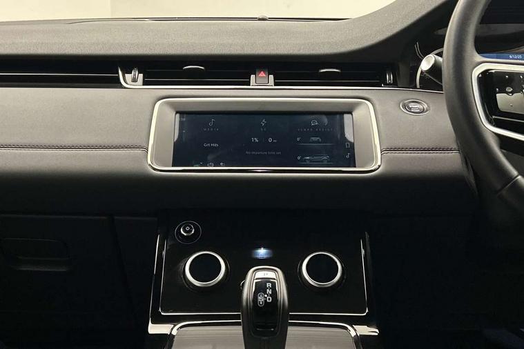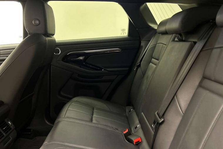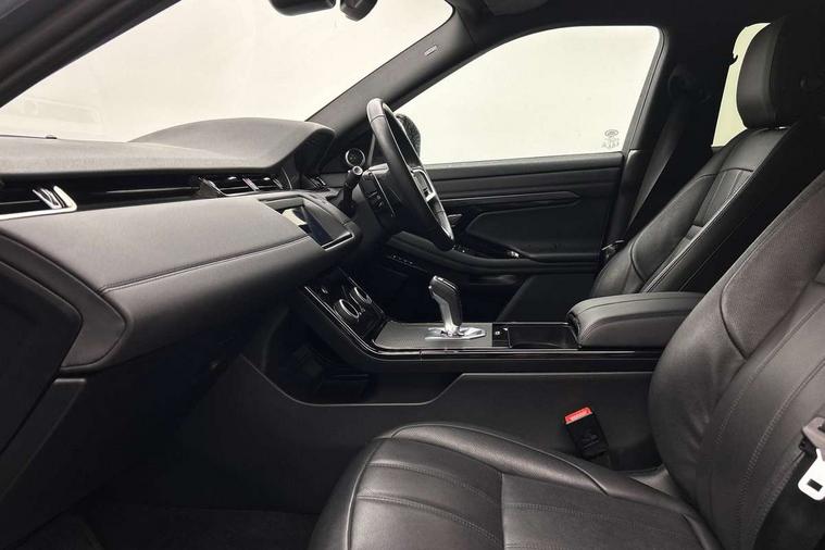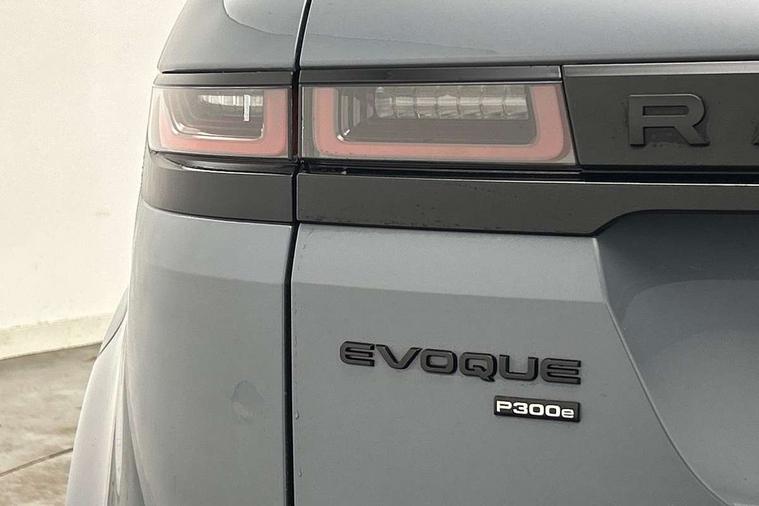 Adaptive cruise control, Android Auto, Apple car play, Blind spot assist, Bluetooth connectivity, Brake pad wear indicator warning light, Driver condition monitor, eCall emergency system, Electronic power assisted steering (EPAS), Front and rear parking aid, InControl remote, Land Rover InControl apps, Lane keep assist, Pivi pro connected includes upgraded infotainment, connected navigation pro, Nuance speech licence, Push button starter, Rear collision monitor, Rear traffic monitor, Traffic sign recognition with adaptive speed limiter, Voice control system, 7 kW onboard charger, All terrain progress control, Electric rear axle drive, Home charging cable, Large fuel tank, Passive suspension, Public charging cable, Terrain Response 2 Auto, Digital Audio Broadcast radio-DAB, Steering wheel mounted controls, Auto headlights, Automatic headlight levelling, Electric windows with one touch open/close and anti trap, Evoque and R-Dynamic badge, Flush deployable exterior door handles, Heated rear window with timer, Heated washer jets, Heated windscreen, P300e badge, Power fold, auto-dimming, heated door mirrors with approach lights and auto dimming driver side, Rain sensing windscreen wipers, Rear fog lights, Rear side wing doors, Rear wiper, Tailgate spoiler, Third brake light, 40:20:40 split folding rear seats with centre headrest and armrest, Ambient interior lighting, Bright metal pedals, Isofix system on outer rear seats, Overhead lighting console, Overhead stowage for sunglasses, Passive front head restraints, Rear air vents, Rear centre headrest, Rear head restraints, Satin chrome gearshift paddles, Single passenger seat, Sunvisors with illuminated vanity mirrors, Twin sliding front centre armrest, 3 rear 3 point seatbelts, Anti-lock braking system (ABS), Customer configurable autolock, DSC - Dynamic Stability Control, Electronic brake force distribution, Electronic parking brake, Electronic traction control, Emergency braking, Front and rear seatbelt reminder, Hill descent control, Hill launch assist, Low traction launch, Power operated child locks, Roll stability control, Six airbags - Driver and passenger airbags/driver knee airbag/front side airbag and curtain airbags, Torque vectoring brake, Tyre pressure monitoring system, Alarm, Immobiliser, Intrusion sensor, Keyless entry, Locking wheel nuts,