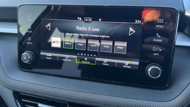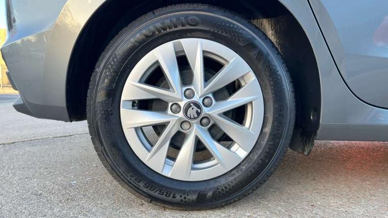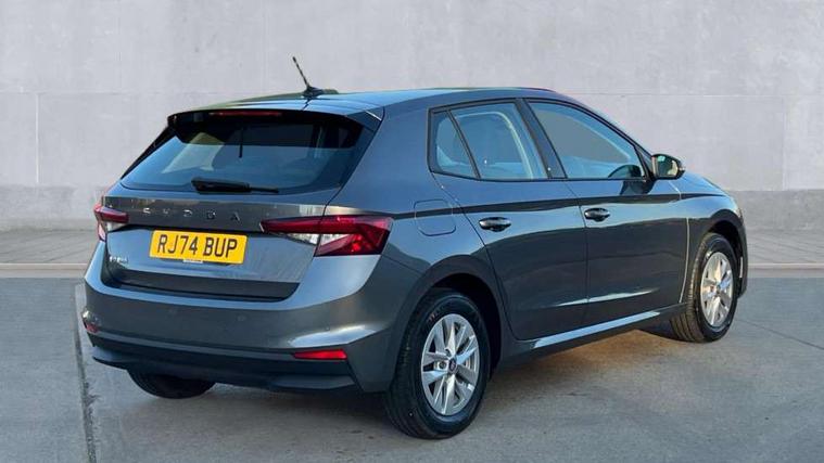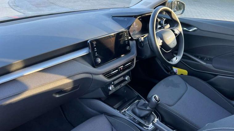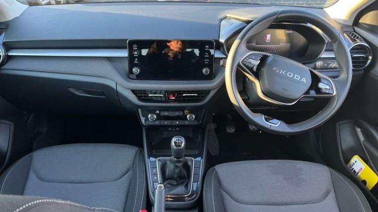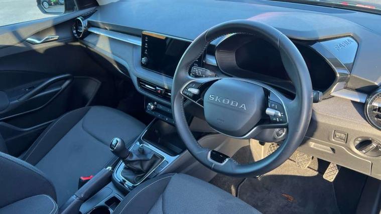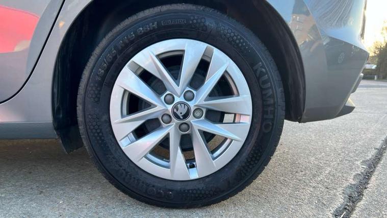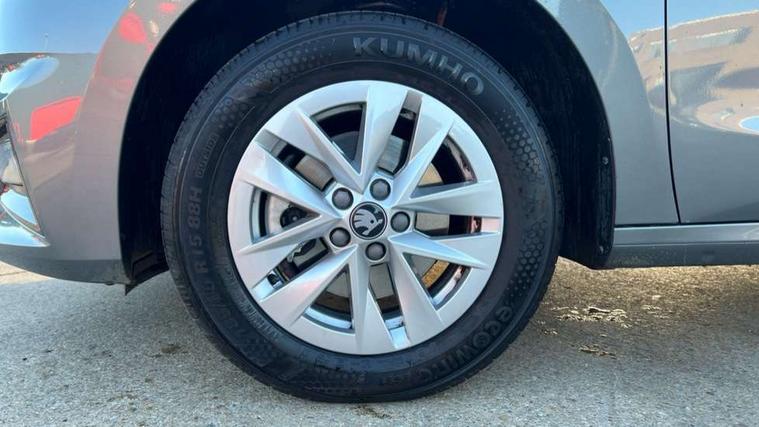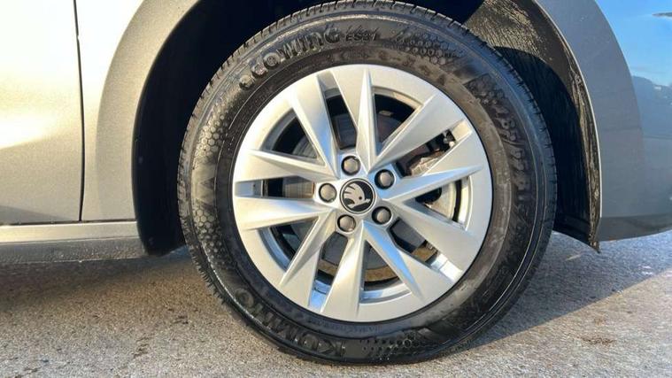 8" Digital instrument display, Advanced driver attention and drowsiness monitor, Bluetooth connection, Electromechanical power steering, Exterior temperature gauge, Service interval indicator, Traffic sign recognition, Wireless SmartLink for Apple CarPlay and Android Auto, 6 Speakers (4 in front and 2 in rear), 8.25" Skoda infotainment touchscreen display, Auxiliary socket for external MP3 player, DAB digital radio reception, Auto dimming rear view mirror, Body colour door mirrors, Body coloured bumpers, Door mirror integrated indicators, Front and rear electric windows, Front window wiper intermittent control, Headlight range control - Automatic, Ice scraper in fuel cap, LED 3rd brake light, LED daytime running lights with coming and leaving home feature, LED rear lights, Rear LED fog light, Rear side wing doors, Rear window wiper with washing nozzles, Roof mounted spoiler, SKODA tailgate lettering in chrome, Unique dark chrome design logo on alloy wheels, 2 reading lights in front and 2 reading lights in rear, 3 rear headrests, Backrest split and folding, Central console with removable cup holder and storage box, Chrome handbrake release button, Dual zone air conditioning with climatronic electronic control, Fabric upholstery, Front centre armrest, Gearshift knob/handle in leather, Grain satin black interior door handles, Hand brake lever handle in leather, Height adjustable front headrests, Height adjustable front seats, Height adjustable steering wheel, ISOFIX and TopTether anchorage points to the outer rear seats, ISOFIX and TopTether on the front passenger seat, Luggage compartment lighting, Manually adjustable lumbar support in front seats, Pollen filter, Rear seat bench unsplit, Single front passenger seat, Skoda lettering on steering wheel, Storm grey headlining, Sun visors with mirror and airbag label on passenger side, Textile floor mats, Ticket holder, Umbrella in drivers door, 3-point height adjustable front seats belts with pretensioner and force limiter, Automatic warning lights in case of crash, Driver and passengers airbag with switch off function, e-Call+, ESC including ABS, MSR, ASR, EDS, HBA and XDS, Front and rear seat belt warning, FRONT ASSIST (AEB City and AEB Inter Urban), Front side airbags, Head airbags, One tone horn, Pedestrian protection, Three rear 3-points safety seat belts with pretensioner and force limiter including stop function for outer rear seat belts, Tyre pressure monitoring system, Anti-theft alarm system including immobiliser, interior monitoring, backup horn, and towing protection, Central locking with radio remote control, interior controls, SAFE function and 2 foldable keys, Black painted air vents, Grain satin black central console cover, Metallic grey upper decorative trim, Satin black door and side trim panel in front, Textile Kota grey lower decorative inserts, Anti-theft wheel bolts protection, Super-low rolling resistance tyres,