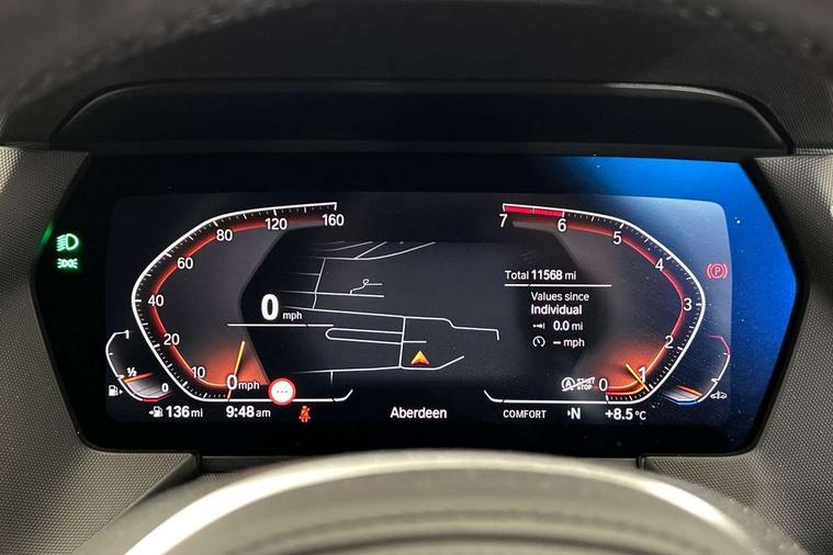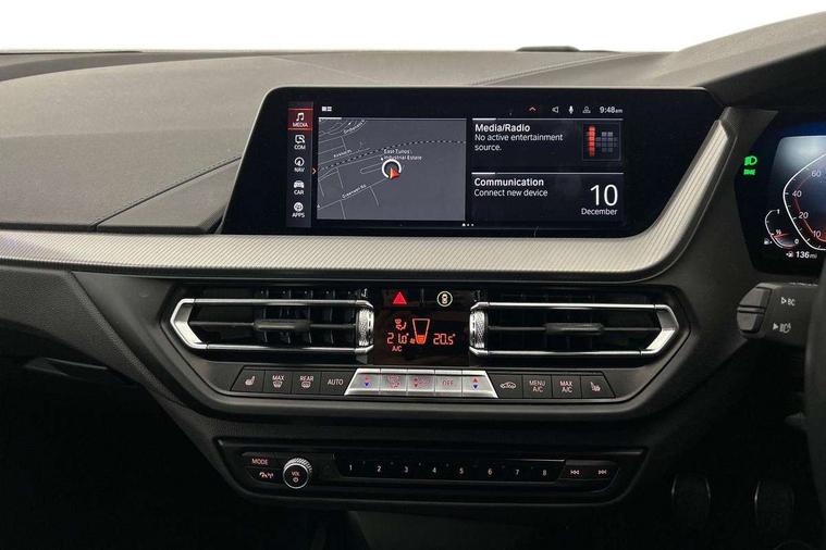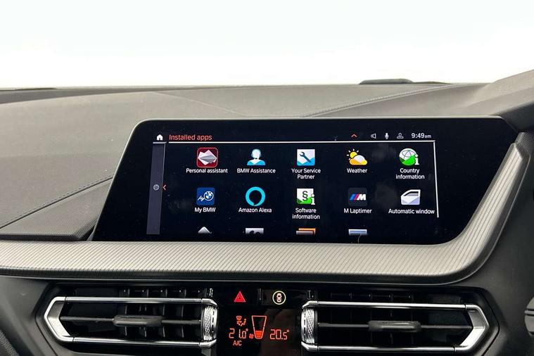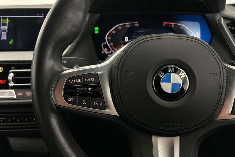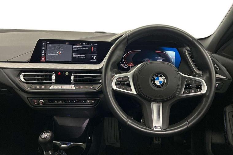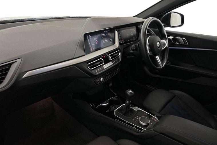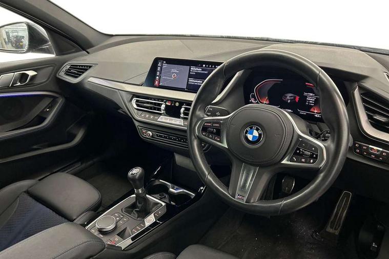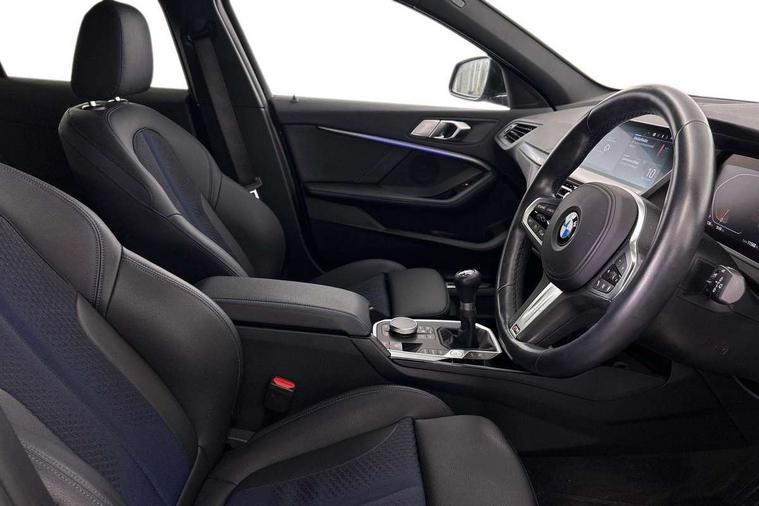 Active guard plus, Attentiveness assist, BMW ConnectedDrive online services, BMW Teleservices, Check Control warning system for monitoring of lights and door/luggage compartment open warning, Cruise control with brake assist, Eco pro mode, Front axle single joint with specific axle kinematics to minimise drive influences on steering + provide increased rigidity agile driving behaviour, Integrated owners handbook, Lane departure warning system, Oil sensor for level and grade, On board computer, Optimum shift indicator, Personal Profile, Pull away assistant, Rigidly mounted rear subframe - Multi link construction with separate spring / damper configuration and excellent driving characteristics, Speed limit Info including no-overtaking indicator, Speed limiter, Aluminium lightweight construction, Anti roll bar front and rear, Balancer shaft, Double VANOS twin scroll turbocharging system, Drive Performance Control, Electronic differential lock, High precision injection, M sport suspension, Petrol Particulate Filter, Twin tube gas filled shock absorbers with degressive characteristic curve, VALVETRONIC engine management, DAB Digital radio, Auto dimming rear view mirror, Automatic headlight beam throw control, Automatic windscreen wipers and automatic headlight, Body colour door handles, Body colour mirror caps, Body colour roof trims, Chrome 'M' logo side designation, Chrome exhaust twin tailpipes round 90mm in left, Chrome kidney grille frame with Satin Aluminium struts, Direction indicator side lights in exterior mirrors, Fading support, Folding side mirrors with auto dimming/folding wing mirrors with auto dimming, Follow me home headlights, Front and rear bumper system with replaceable deformation elements, Front and rear electric windows with open and close fingertip control, anti trap facility and comfort closing, Front door sill finishers in black plastic with M designation in metallic look, Green tinted heat protection glazing, Heated, electrically adjustable exterior mirror aspheric on driver side, convex on passenger side, High gloss shadowline window frame, Recess cover mirror frames and B/C pillar embelisher trim, High level third brake light, Integrated front windscreen with washer jets, LED daytime running lights, LED eyebrow turn indicators, LED front fog lights, LED Headlights, Lightweight engineering, Matt black air guide grilles, Matt black wheel arch trim, Model designation on electric bootlid, Nearside reverse light in rear light cluster, Preparation for high beam assistant, Rear fog lights, Rear side wing doors, Rear window wiper, Shark fin antenna, Trailer stabilisation logic, Visible VIN plate, Welcome lighting, 12V power socket in front centre console with blanking plug, 3 rear seat head restraints, 3 seat bench in 2nd row, 3 spoke sports leather steering wheel in black leather with black stitching and decorative finisher in pearl chrome, specific M badge + leather knob, Anthracite headlining, Black boot net with lashing eyes, Cargo function on 2nd seat row, Child seat ISOFIX attachment for two outer rear seats and front passenger seat with anchorage points, Conditioned based service, Driver and front passenger seat heating, Folding rear clothes hook, Four grab handles integrated in roof lining, Front and rear door pockets with bottle holders, Front and rear side armrest integrated into door trim, Front armrest, Front sports seats, Gearshift lever with M designation, Glove compartment, Height adjustable front head restraints, Luggage compartment for bag hooks on left and right, foldable luggage compartment liner and four lashing eyelets, Manual adjust steering wheel, Multi-function controls for steering wheel, Single front passenger seat, Storage compartment in centre console, Sun visors with vanity mirrors and insert tab, Two front centre console cupholders, Two zone automatic air conditioning, Velour floor mats, Additional interior lighting pack - 1 Series, BMW live cockpit professional pack- 1 Series, Connected pack professional - 1 Series, Interior lights pack - 1 Series, M Sport exterior styling aerodynamics pack - 1 Series, 2 tone horn, 3 point seatbelts on all seats, front pyrotechnic belt tensioners, stopper and belt force limiters, rear coded belt buckles, Airbags - Front driver/passenger, front and rear curtain head protection, front side, manual deactivation of front passenger airbag, Anti lock braking system (ABS) with brake assist, BMW emergency call, Brake drying, Braking readiness, Child proof locking system in rear door, City braking function, Comfort modes, Cornering brake control, Crash sensor activating central locking release, hazard warning lights, fuel cut off, interior lighting + activation of safety battery terminal clamp, Driver and front passenger seat belt security check, Dynamic stability control + (DSC+), Dynamic Traction Control - DTC, Electrically operated hand brake, Front and rear disc brakes, Seatbelt warning, Side impact protection, Tyre pressure monitoring system, Warning triangle and first aid kit, Central locking switch for all doors, fuel filler cap and luggage compartment, Deadlocking function system to all doors, Drive away locking system on all doors and luggage compartment with de-activated in iDrive settings, Locking wheel bolts, Remote control with integrated key with High-gloss Black inlay and M designation and 1 button for open/ close lock, window, open luggage compartment, Start/stop button illuminated in centre console with keyless engine start and auto start stop deactivation button, Thatcham Cat.1 alarm and immobiliser, Wheel slip limitation close to the actuator (ARB), Contrast stitching on instrument panel, Electrically powered 12V compressor, Reduced rolling resistance tyres,