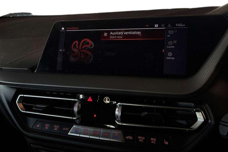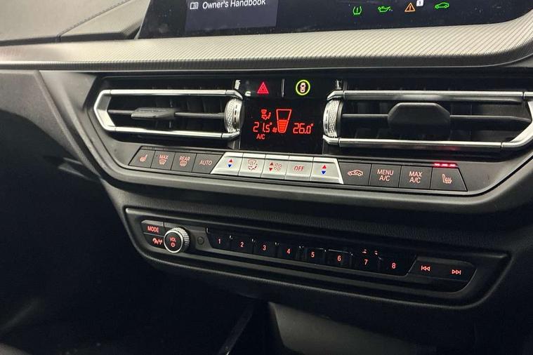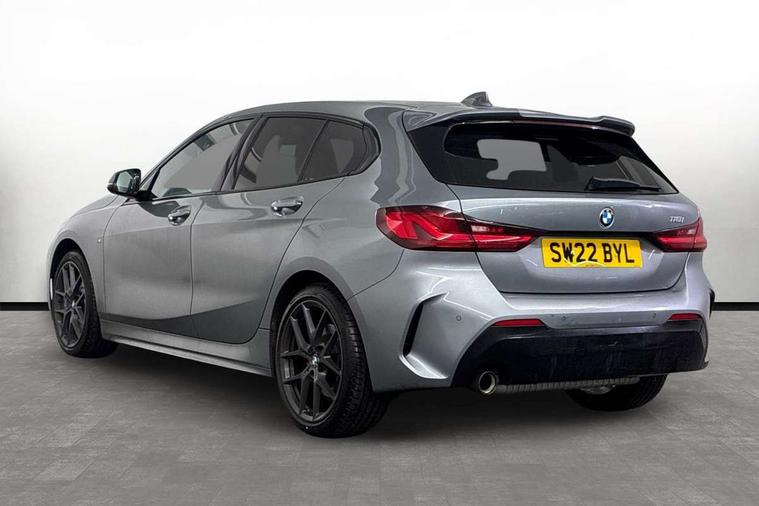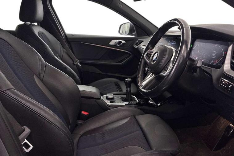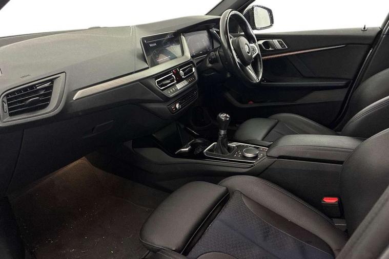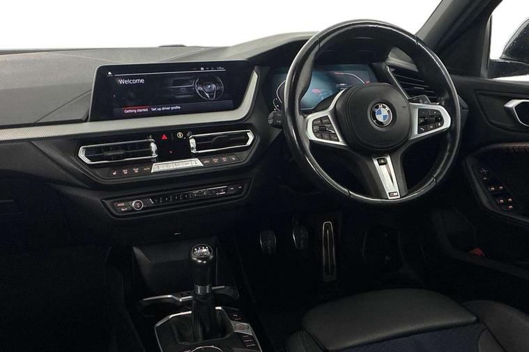 Active guard plus, Attentiveness assist, BMW ConnectedDrive online services, BMW Teleservices, Check Control warning system for monitoring of lights and door/luggage compartment open warning, Cruise control with brake assist, Eco pro mode, Front axle single joint with specific axle kinematics to minimise drive influences on steering + provide increased rigidity agile driving behaviour, Integrated owners handbook, Lane departure warning system, Oil sensor for level and grade, On board computer, Optimum shift indicator, Personal Profile, Pull away assistant, Rigidly mounted rear subframe - Multi link construction with separate spring / damper configuration and excellent driving characteristics, Speed limit Info including no-overtaking indicator, Speed limiter, Aluminium lightweight construction, Anti roll bar front and rear, Balancer shaft, Double VANOS twin scroll turbocharging system, Drive Performance Control, Electronic differential lock, High precision injection, M sport suspension, Petrol Particulate Filter, Twin tube gas filled shock absorbers with degressive characteristic curve, VALVETRONIC engine management, DAB Digital radio, Auto dimming rear view mirror, Automatic headlight beam throw control, Automatic windscreen wipers and automatic headlight, Body colour door handles, Body colour mirror caps, Body colour roof trims, Chrome 'M' logo side designation, Chrome exhaust twin tailpipes round 90mm in left, Chrome kidney grille frame with Satin Aluminium struts, Direction indicator side lights in exterior mirrors, Fading support, Folding side mirrors with auto dimming/folding wing mirrors with auto dimming, Follow me home headlights, Front and rear bumper system with replaceable deformation elements, Front and rear electric windows with open and close fingertip control, anti trap facility and comfort closing, Front door sill finishers in black plastic with M designation in metallic look, Green tinted heat protection glazing, Heated, electrically adjustable exterior mirror aspheric on driver side, convex on passenger side, High gloss shadowline window frame, Recess cover mirror frames and B/C pillar embelisher trim, High level third brake light, Integrated front windscreen with washer jets, LED daytime running lights, LED eyebrow turn indicators, LED front fog lights, Lightweight engineering, Matt black air guide grilles, Matt black wheel arch trim, Model designation on electric bootlid, Nearside reverse light in rear light cluster, Preparation for high beam assistant, Rear fog lights, Rear side wing doors, Rear window wiper, Shark fin antenna, Trailer stabilisation logic, Visible VIN plate, Welcome lighting, 12V power socket in front centre console with blanking plug, 3 rear seat head restraints, 3 seat bench in 2nd row, 3 spoke sports leather steering wheel in black leather with black stitching and decorative finisher in pearl chrome, specific M badge + leather knob, Ambient interior lighting, Anthracite headlining, Black boot net with lashing eyes, Cargo function on 2nd seat row, Child seat ISOFIX attachment for two outer rear seats and front passenger seat with anchorage points, Conditioned based service, Driver and front passenger seat heating, Folding rear clothes hook, Four grab handles integrated in roof lining, Front and rear door pockets with bottle holders, Front and rear side armrest integrated into door trim, Front armrest, Front sports seats, Gearshift lever with M designation, Glove compartment, Height adjustable front head restraints, Luggage compartment for bag hooks on left and right, foldable luggage compartment liner and four lashing eyelets, Manual adjust steering wheel, Multi-function controls for steering wheel, Single front passenger seat, Storage compartment in centre console, Sun visors with vanity mirrors and insert tab, Two front centre console cupholders, Two zone automatic air conditioning, Velour floor mats, Additional interior lighting pack - 1 Series, BMW live cockpit professional pack- 1 Series, Connected pack professional - 1 Series, Interior lights pack - 1 Series, M Sport exterior styling aerodynamics pack - 1 Series, 2 tone horn, 3 point seatbelts on all seats, front pyrotechnic belt tensioners, stopper and belt force limiters, rear coded belt buckles, Airbags - Front driver/passenger, front and rear curtain head protection, front side, manual deactivation of front passenger airbag, Anti lock braking system (ABS) with brake assist, BMW emergency call, Brake drying, Braking readiness, Child proof locking system in rear door, City braking function, Comfort modes, Cornering brake control, Crash sensor activating central locking release, hazard warning lights, fuel cut off, interior lighting + activation of safety battery terminal clamp, Driver and front passenger seat belt security check, Dynamic stability control + (DSC+), Dynamic Traction Control - DTC, Electrically operated hand brake, Front and rear disc brakes, Seatbelt warning, Side impact protection, Tyre pressure monitoring system, Warning triangle and first aid kit, Central locking switch for all doors, fuel filler cap and luggage compartment, Deadlocking function system to all doors, Drive away locking system on all doors and luggage compartment with de-activated in iDrive settings, Locking wheel bolts, Remote control with integrated key with High-gloss Black inlay and M designation and 1 button for open/ close lock, window, open luggage compartment, Start/stop button illuminated in centre console with keyless engine start and auto start stop deactivation button, Thatcham Cat.1 alarm and immobiliser, Wheel slip limitation close to the actuator (ARB), Contrast stitching on instrument panel, Electrically powered 12V compressor, Reduced rolling resistance tyres,