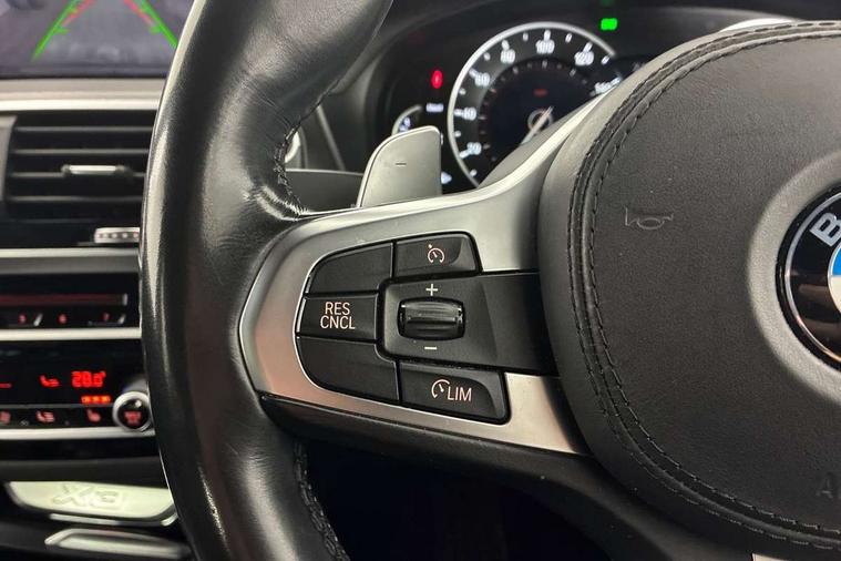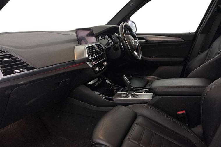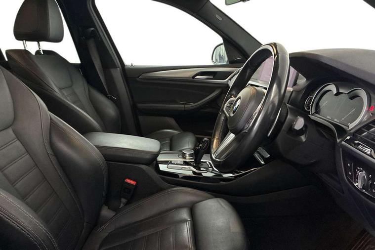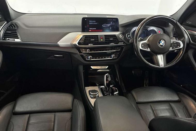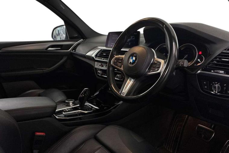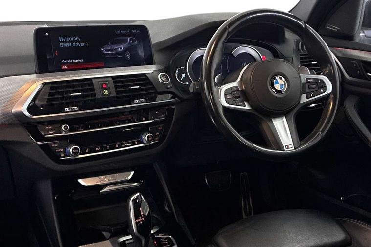 Active Guard incl speed limiting and lane departure functions with auto steering, and front collision warning with brake intervention, Attentiveness assist, Automatic tailgate operation, BMW Live Cockpit Professional sat nav system including 10.25" high resolution display and Intelligent Voice Assistant, BMW Online services, BMW Teleservices, Brake pad wear indicator in front and rear, Check Control warning system for monitoring of lights and door/luggage compartment open warning, Control display - 6.5" colour display screen, Electric Power Steering (EPS) with Servotronic, Front/rear Parking distance control, iDrive Controller with 8 favourite buttons, Lights on warning by audio warning signal when ignition is switched off, Navigation system - BMW Professional multimedia with Hard disc drive (HDD) and 10.25" touch display, Oil sensor for level and grade, warning by check control system, On board computer - average speed+fuel consumption, service interval, clock/date, odometer/trip meter, outside temperature display and ice warning, Optimum shift indicator, Personal Profile - automatic lock when driving away selectable, Real time traffic information, Semi digital instrument cluster, Stop/start system, Automatic transmission with gearshift paddles, Diesel particulate filter, Incorrect fuelling protection, Larger capacity fuel tank, Multi-link rear suspension, Performance Control, Auxiliary socket for external MP3 player, BMW professional radio/CD/MP3, DAB Digital radio, Acoustic glazing, Black finish on B pillars, Body colour door handles, Body colour electric adjust heated aspherical door mirrors, Body colour roof mouldings, Body coloured bumpers, Chrome kidney grille with high gloss black vertical slats, Direction indicator, side repeaters, integrated in exterior mirrors, Dual chrome exhaust, Dynamic brake lights, Exterior mirrors - electrically folding with anti-dazzle, Fingertip control / anti-trap function on electric window, Follow me home headlights, Front and rear bumper system with replaceable deformation elements, Front and rear electric windows, Green tinted heat insulating glass, Heated windscreen washer jets, Height adjustable headlamps, High gloss black door sill finishers, High gloss black shadow line roof rails, High gloss shadowline exterior trim in decorative moulding side frame/recess cover/guide rail/B, C pillars/mirror frame and triangle with mirror base, High level 3rd brake light incorporating LED Technology, Interior rear view electrochromatic mirror with automatic anti dazzle function, LED front fog lights, LED tail lights, Lightweight engineering, M aerodynamic bodystyling, Model designation, Rain sensor including auto headlights activation, Rear wiper, Shark fin antenna, Visible VIN plate, Welcome lighting, Windscreen wipers with adjustable interval, 12V socket in centre console and luggage area, 3 rear headrests, 3 zone automatic air conditioning, 4 lashing points to secure luggage, Ambient lighting, Anthracite headlining, Anthracite Velour floor mats, Driver/passenger sunvisors with ticket holders + illuminated vanity mirrors, Foldable boot floor with storage compartment, Four grab handles integrated in roof lining, Front and rear bottle holders integrated into door trim storage compartments, Front and rear side armrests integrated into door trim, Front centre armrest with storage compartment, Front footwell lights, Front sports seats, Front/rear courtesy lights with soft on/off dimming, Front/rear reading lights, Height adjustable front/rear head restraints, Isofix rear child seat preparation, Leather gear knob, Luggage area underfloor compartment, Luggage compartment lighting, M Sport multifunction leather steering wheel, Parcel shelf removeable and storable under boot floor, Reach and rake adjustable steering column, Rear centre armrest with 2 cupholders, Rear seat centre armrest with two cupholders, Removable / retractable luggage cover, Slope adjustable rear seats, Storage compartment in rear centre console and front/rear door trims, Through loading system with 40/20/40 split folding rear seat, Toolkit located in luggage compartment, Two front cupholders with removable oddments tray/lid, Vernasca leather upholstery, Connected pack professional - X3, ABS/EBD, ADB - Automatic Differential Brake, Automatic Stability Control (ASC), Battery safety cut-off, BMW emergency call, Brake assist, Brake assist function, Brake drying, Brake energy regeneration, Braking pre-tensioning, Child locks on rear doors, Cornering brake control (CBC), Crash Sensor - activation of central locking release, hazard warning light and interior lighting, Deactivation of fuel pump in the event of a crash, Driver and front passenger front and side airbags with passenger deactivation and ITS front and rear head airbags, DSC+, Dynamic brake control, Dynamic Traction Control - DTC, Electromechanical parking brake, Front seat belts warning, Hill descent control, Hill start assist, Seatbelt security check for front seats, Side impact protection, Three point seatbelts to all seats with front and outer rear pyrotechnic belt tensioners and seat belt force limiters, Two tone horn, Tyre pressure monitoring system, Ventilated front and rear disc brakes, Warning triangle and first aid kit, Central locking switch for all doors, fuel filler cap and luggage compartment, Electronic engine immobiliser, Locking wheel nuts, Remote control including two integrated key - one button for open/close all lockable content, windows and separate button for open luggage compartment, Remote control Thatcham category 1 alarm, Start/stop button with Comfort Go keyless engine start and auto Start/stop deactivation button, Low rolling resistance tyres,