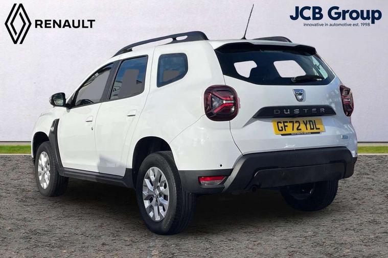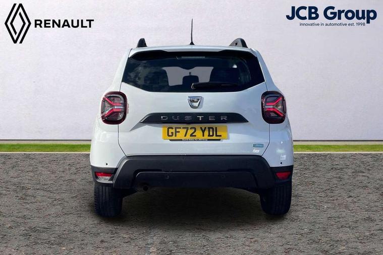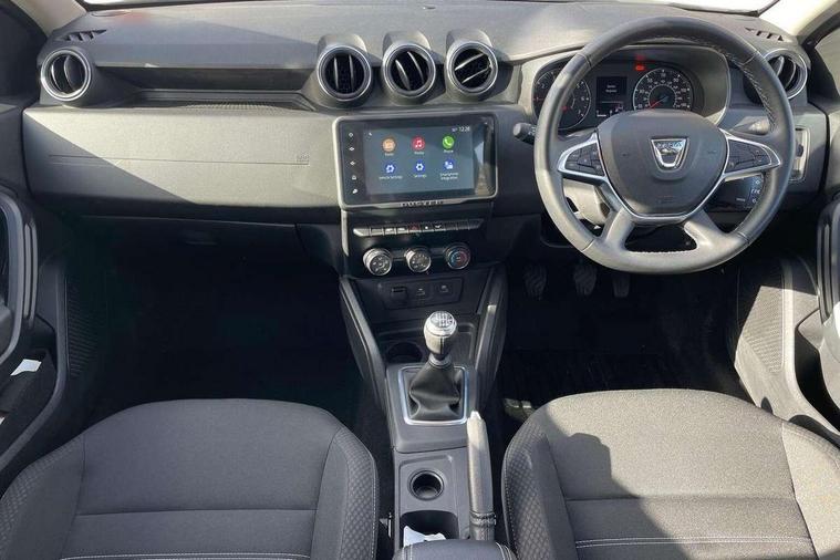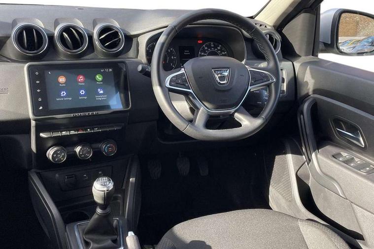 4x4 monitor with altimeter, Compass functional at 0km/h, Cruise control and speed limiter, Dacia instrument cluster, eCall emergency system, Eco mode, Electric power assisted steering, On board computer, odometer, trip computer, average fuel consumption, average speed, service indicator, outside temperature gauge, Rear parking sensors and reverse camera, Rev counter, Stop/start system, 8" Media display with smartphone replication, 2 usb sockets and 6 speakers, Dacia plug and radio/MP3/USB/bluetooth/DAB/steering wheel control, 3 speed windscreen wipers, Black door mirrors, Black longitudinal roof bars with Duster inscription, Black side sills, Black/satin chrome tailgate trim with Duster inscription in black background and lettering, Body coloured door handles, Chrome front grille with hot stamping, Chrome logo surround on steering wheel, Dusk sensor, Electric adjustable/heated door mirrors, Electric front windows, Electric rear windows, Front and rear body coloured bumpers, Front door sill protection strip, Front fog lights, Heated rear window, High level third rear brake light, LED automatically switched on - In main headlights, LED daytime running lights, Rain sensor, Rear side wing doors, Rear spoiler, Rear wash/wipe, Tinted windows, Underbody protection skid plates, Y shaped LED headlights with rear LED lights, 3 rear height adjustable headrests, 3 seat bench in 2nd row, 60/40 split folding rear seat, Backlighted steering wheel buttons, Boot light, Driver seat lumbar adjustment, Fabric decorative insert on door panels, Fabric upholstery, Front head restraints, Front passenger reading light, Gear shift indicator, Glovebox light, Height adjustable driver seat, Height adjustable front and rear headrests, Height and depth adjustable steering wheel, High centre console with driver armrest, Isofix points for child seats in both outer rear seats, Manual air conditioning, Map pocket on front seat backs, Passenger sunvisor with vanity mirror, Rear passenger reading light, Satin chrome interior door handles, Satin chrome lower steering wheel insert, Single front passenger seat, Soft feel leather steering wheel, 3x3 point rear seatbelts, ABS and Emergency brake assist, ASR traction control with Electronic stability control, Child locks on rear doors, Door open visual and audible warning, Driver airbag, Driver and passenger seatbelt not fastened - visual and audible warning, EBD - Electronic brakeforce distribution, Front passenger airbag, Front passenger airbag deactivation, Front seatbelt pretensioners, Front side airbags, Height adjustable front seatbelts, Hill start assist, Tyre pressure monitor, Remote central locking, Thatcham approved engine immobiliser, Dark carbon central console surround, Matt black central console fascia, Piano black decorative insert on door panels, Satin chrome air vent surround, 16" alloy wheels, Tyre inflation kit,