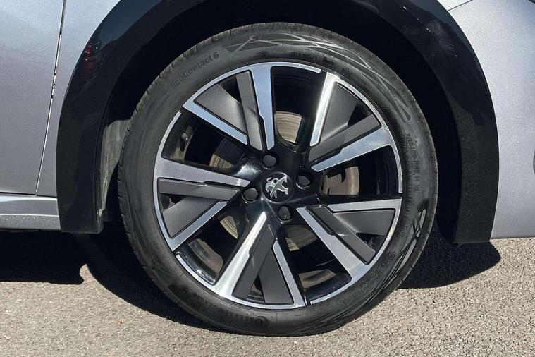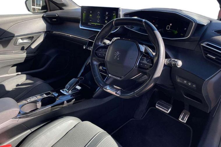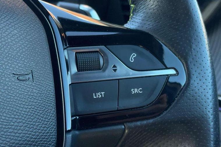 Bluetooth telephone facility, Driver attention warning, Exterior temperature indicator with ice warning, Front and rear parking sensors, Mirror screen with mirror link, apple carplay and android auto, Multi function trip computer, PEUGEOT i-Cockpit with compact steering wheel, PEUGEOT i-Cockpit with configurable 3D headup instrument panel, PEUGEOT SOS and assistance, Push button start, Smart phone docking station, Smartphone charging plate, Speed limit recognition and recommendation, Visio Park 1 with 180 degree Colour reversing camera, 2 front USB socket with USB-C, 2x USB sockets in rear, 6 speakers radio with mp3 compatible, DAB Digital radio, Voice recognition for radio, navigation and telephony features, 2 X Rear number plate lights, Automatic hazard light activation upon heavy brake application, Automatic lights, Automatic windscreen wipers, Body coloured exterior door handles, Dark tinted rear side and tailgate windows, Diamond Black roof, Electric front windows + one touch + anti-pinch, Electric rear windows with one touch/anti-pinch, Electrically adjustable, heated and power folding door mirrors, Extended diamond black rear spoiler, Follow me home headlights, Frameless electrochrome interior rear view mirror, Front windscreen wiper with magic wash cleaning system, Full LED headlights with smartbeam assist, Gloss black finish on B pillar, Gloss black rear cluster connecting strip, Gloss black wheel arch extensions, Gloss black window surround, GT Line model designation badging on C pillar, GT Line model designation badging on tailgate, Headlights left on audible warning, LED daytime running lights with 3 claw headlight with distinctive tooth design, LED side indicator lights integrated into door mirrors, Model designation badges front and rear, Nera black door mirror shells, Radiator grille - Dark chrome chequered and gloss black edge trim, Rear bumper with gloss black finish, Rear full LED 3D peugeot signature claw effect lights with daylight function, Rear lower bumper diffuser effect trim in gloss black, Rear reversing lights, Rear windscreen wiper triggered automatically in reverse gear, Stainless steel door sill scuff plates, Tailgate with heated rear windscreen and wiper blade, Twin chrome exhaust tailpipes, 1/3 to 2/3 split folding rear seats, 12V socket, 8 Colour personalisable ambient lighting, Aluminium pedals and foot rest, Automatic gear lever in full grain leather and satin chrome, Driver and front passenger seat manual adjustment in longitudinal and back rest angle, Driver and front passenger seat mechanical height adjustment, Driver and front passenger sport seats, Dual zone electronic climate control, Electric power steering with reach and rake adjustable steering column, Front and rear carpet mats in black with lime green stitch detail, Front centre armrest with storage compartment, Front LED interior light with 2 reading spotlights and rear interior light with timer, High centre console with 2 cup holders, ISOFIX child seat mounting points on passenger seat, Lime green contrast stitching to armrest, front centre console, door panels and dashboard facia, Map pockets on the backs of the front seats, Mistral full grain perforated leather steering wheel with aikinite stitch detail and satin chrome 'GT' emblem, Piano keys gloss black plated toggle switches to access main functions of the vehicle, Roof lining - Mistral black, Seatbelt unfastened on the move audible and visual alert for front and rear seats, 2x 2nd row ISOFIX child seat mountings, 3 point seatbelts on all rear seats, ABS (Anti-lock Braking System) with EBD (Electronic Brakeforce Distribution) and EBA (Emergency Braking Assistance), Active safety brake with night function/cyclists/pedestrians, Child locking functionality on rear doors, Driver and passenger airbags with Passenger airbag deactivation system, Driver/front passenger side airbags, Electric parking brake, ESP with Hill Assist, Front and rear curtain airbags, Front and rear disc brakes, Front optimised safety headrests and 3 x rear retractable headrests with height adjustable, Front three point retractable seatbelts with force limiters, Tyre pressure sensor, Automatic door locking when moving off, Deadlock, Electronic code immobiliser, Thatcham Cat.1 alarm, Carbon effect Dashboard, front and rear door panel finish, 17" Camden diamond cut two tone alloy wheels, Space saver spare wheel,