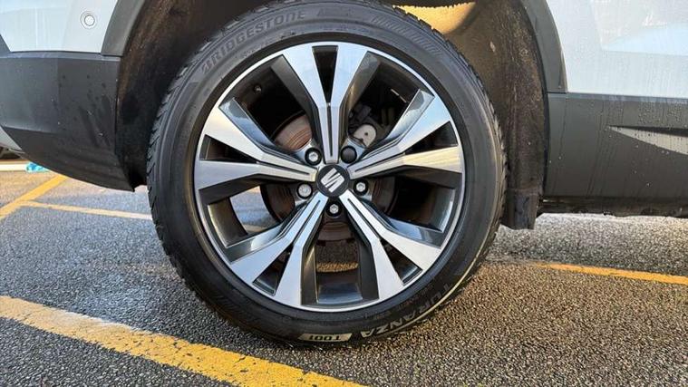 8" Digital cockpit, Colour multi-function on board computer display, Cruise control system with speed limiter, E-call, Outside temperature gauge, PAS, SEAT drive profile with driving experience button - Normal, Sport, Eco and Individual mode, gearshift, steering and throttle response, Self parking functionality (includes front and rear parking sensors), Start/stop system, Tailgate, Trip computer, wired and wireless full link smartphone integration, Wireless phone charger, Steering wheel mounted audio/phone controls, Black wheel arch surrounds, Body colour bumpers, Chrome front grille frame, Chrome roof rails, Chrome side window trim, Daytime running lights, Door mirrors with welcome light silhouette, Dynamic headlight range control with self adjusting whilst driving, Electric adjustable/heated/folding door mirrors, Front and rear electric windows, Full LED headlamps with lens and LED front fog lamps with cornering function, LED 3rd brake light, LED rear tail lights, Rear exhaust tailpipe, Rear fog lights, Rear side wing doors, Rear wash/wipe, Variable front intermittent wipers, 12V socket in front, 3 seat bench in 2nd row, 60/40 split folding rear seat, Cloth upholstery with front comfort seats, Drawer under right front seat, Dual zone climate control, Front and rear head restraints, Front centre armrest, Front seat back storage pockets, Height adjustable driver and passenger seat with lumbar adjustment, ISOFIX points in outer rear seats with top tether anchorage points, Leather sports steering wheel and gear knob, Rear armrest and easy back seat release mechanism from boot, Single front passenger seat, Steering wheel mounted gearshift paddles, Convenience pack - Ateca, Interior lighting pack - Ateca, Navigation system pack with DAB - Ateca, Safety and driving pack with attention and drowsiness assist - Ateca, 3x3 point rear seatbelts, ABS, Traction control system (TCS), Electronic stability control (ESC) and Electronic differential lock system (XDS), Airbags - Driver and front passenger airbag with deactivation, front side, two curtain and driver's knee airbags, Electric parking brake with auto hold function, Front and rear seatbelt reminder, Front assist with autonomous emergency braking, Hill hold control, Manual rear child locks, Single tone horn, Tiredness recognition system, Tyre pressure monitoring system, Alarm, Keyless entry, Locking wheel bolts, Remote central locking, Chrome interior detailing, 18" Performance machined alloy wheels 36/2 in nuclear grey,